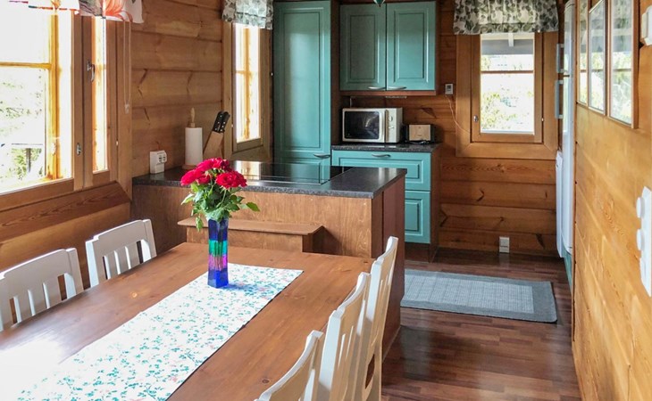 Additional information: Final cleaning is included in reservations which are made after 1.2.2024. Excellent view down to Vuosselinjärvi -lake.