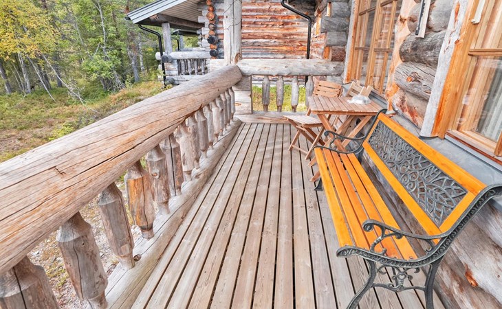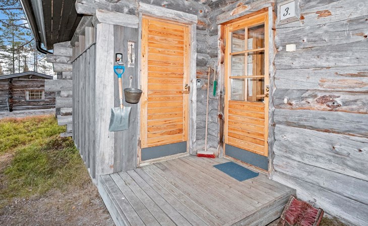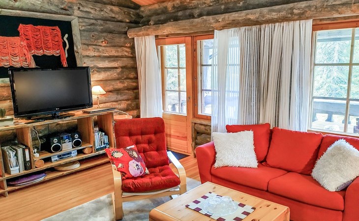 Pets allowed at extra fee (fee per reservation). Log apartment situated near Hotel Royal Ruka. Other cottages in the area. Nearest ski lifts Masto I and Masto II (Eastern Ruka).