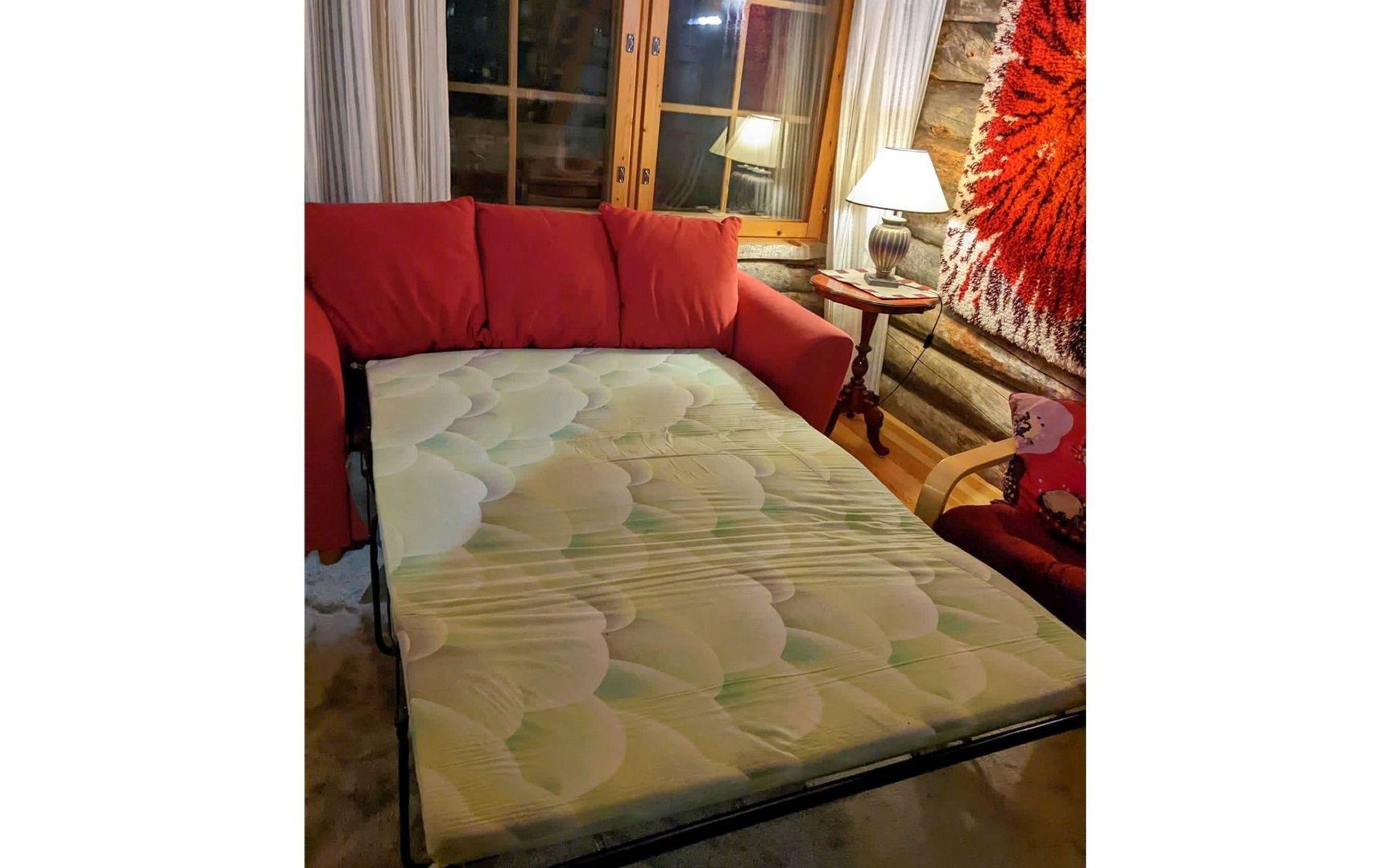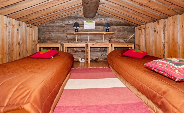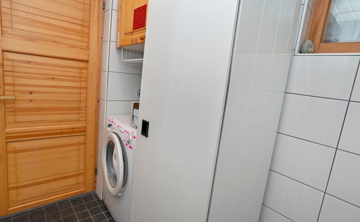 Apartment in a row house. Living room with sofa bed 114 x 176 cm, kitchen, 2 bedrooms; one with 2 single beds attached together (separate mattress toppers), one bedroom with 2 single beds. Loft is not suitable for sleeping (steep stairs to the loft), 42" TV in living room, sauna (electric stove) and bathroom.
