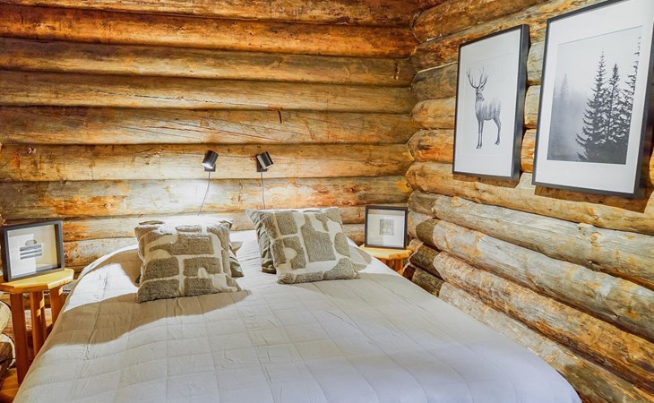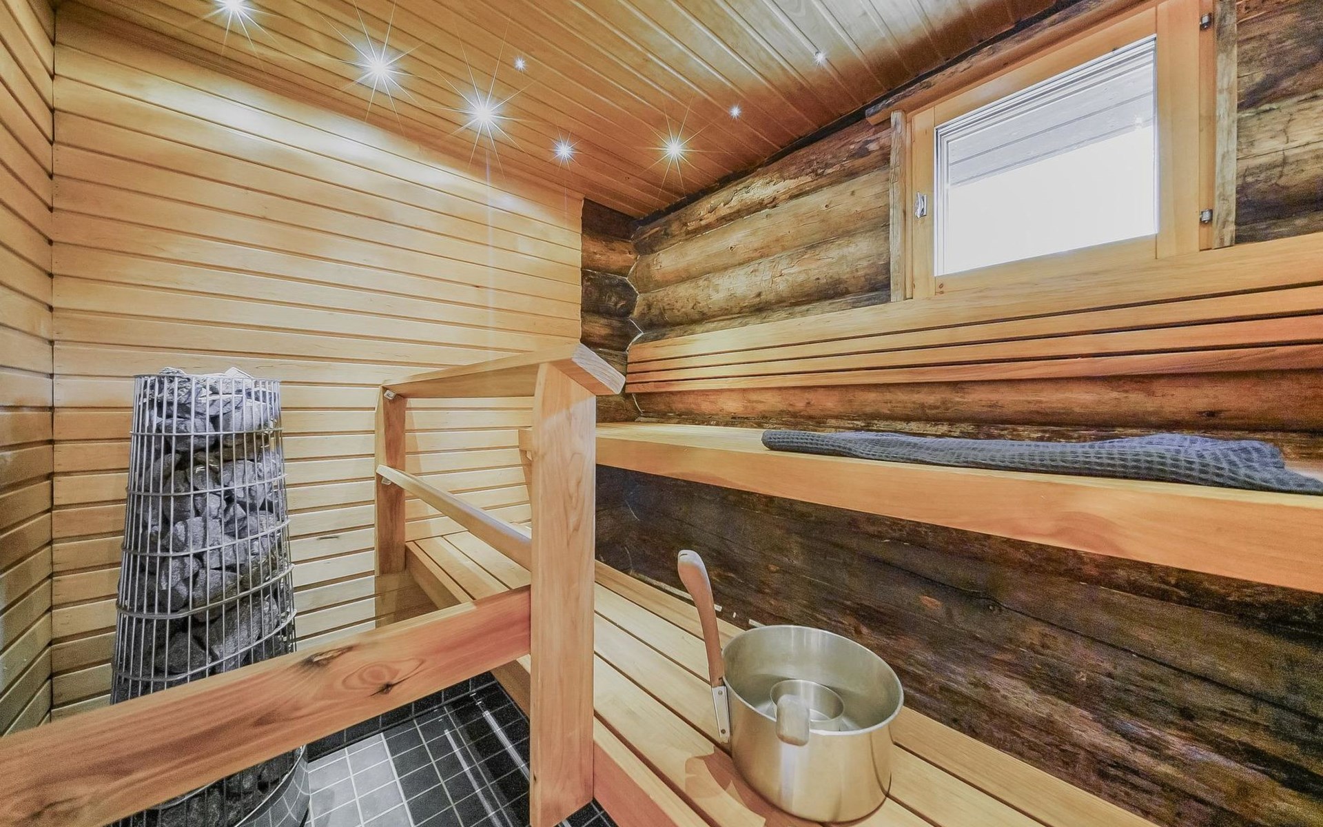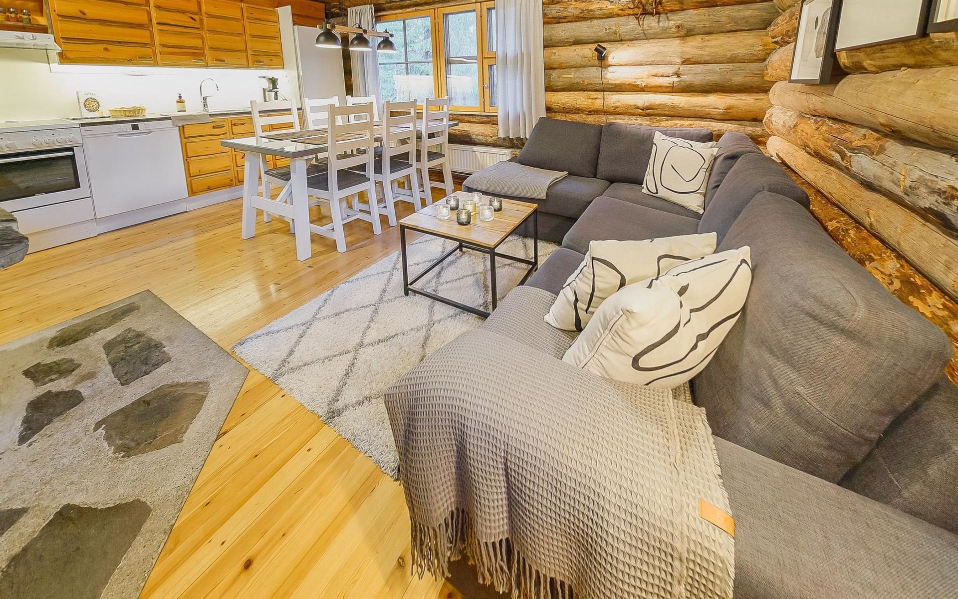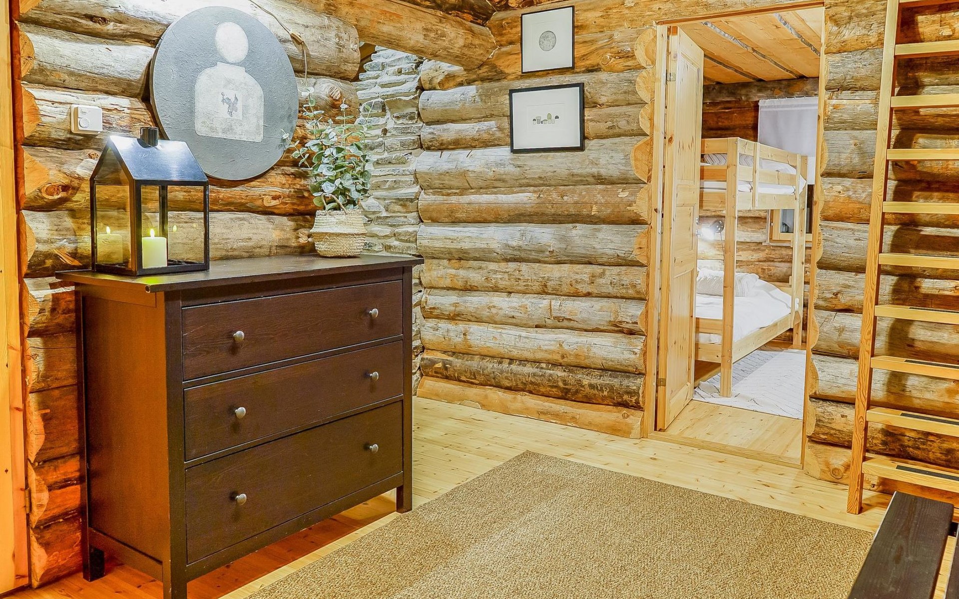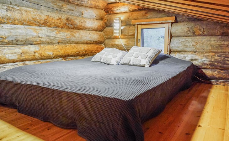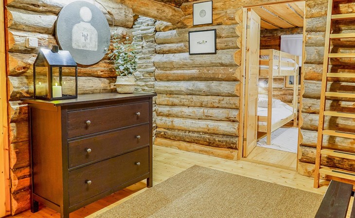 25 km to the north from Kuusamo, Ruka village 3 km. Lake Kesäjärvi 20 m. Apartment in semidetached kelo log house, built in 1991. Bedroom 1: 2 beds, bedroom 2: spreadable sofa bed (140 cm) and bunk bed, living room: spreadable sofa bed, shallow loft (7 m², steep stairs to the loft): 4 mattresses with topper of double bed, living room/kitchen, electric sauna.