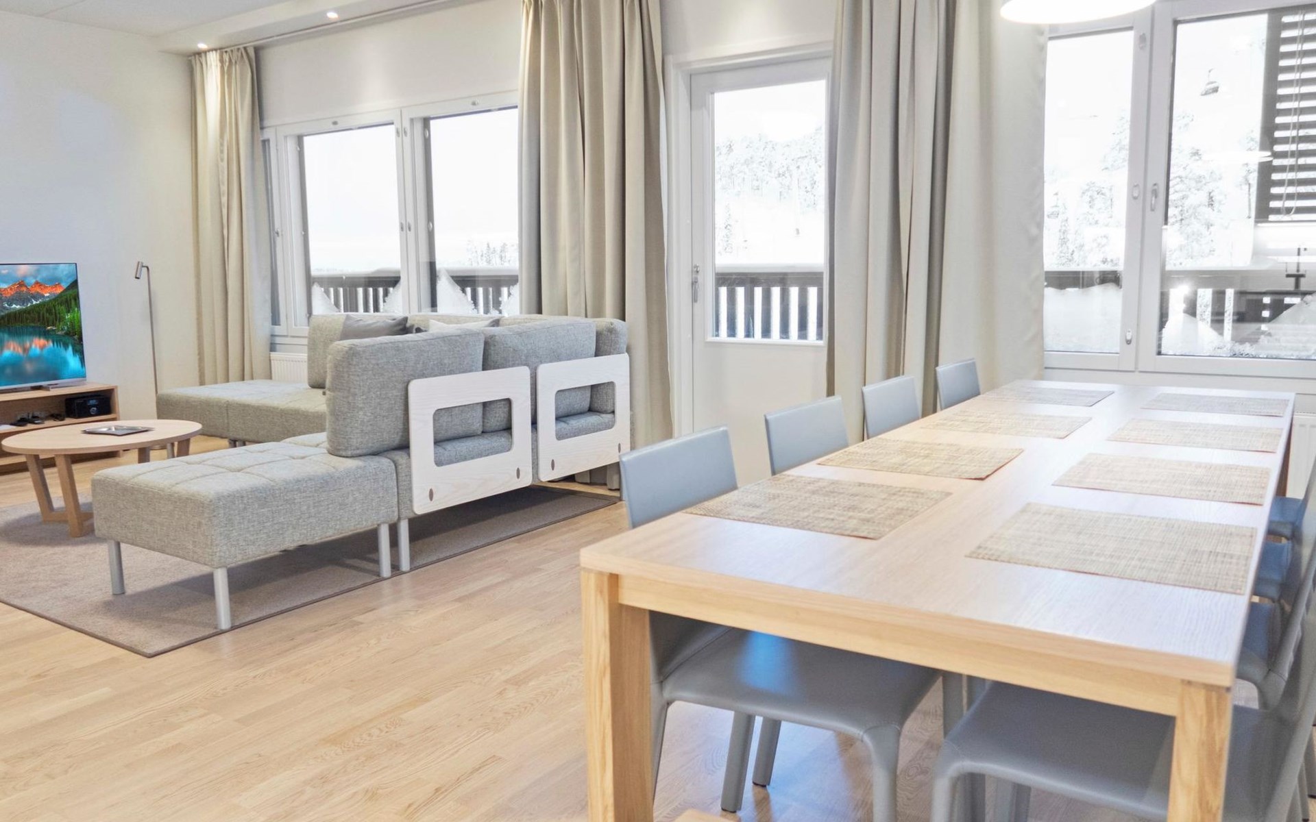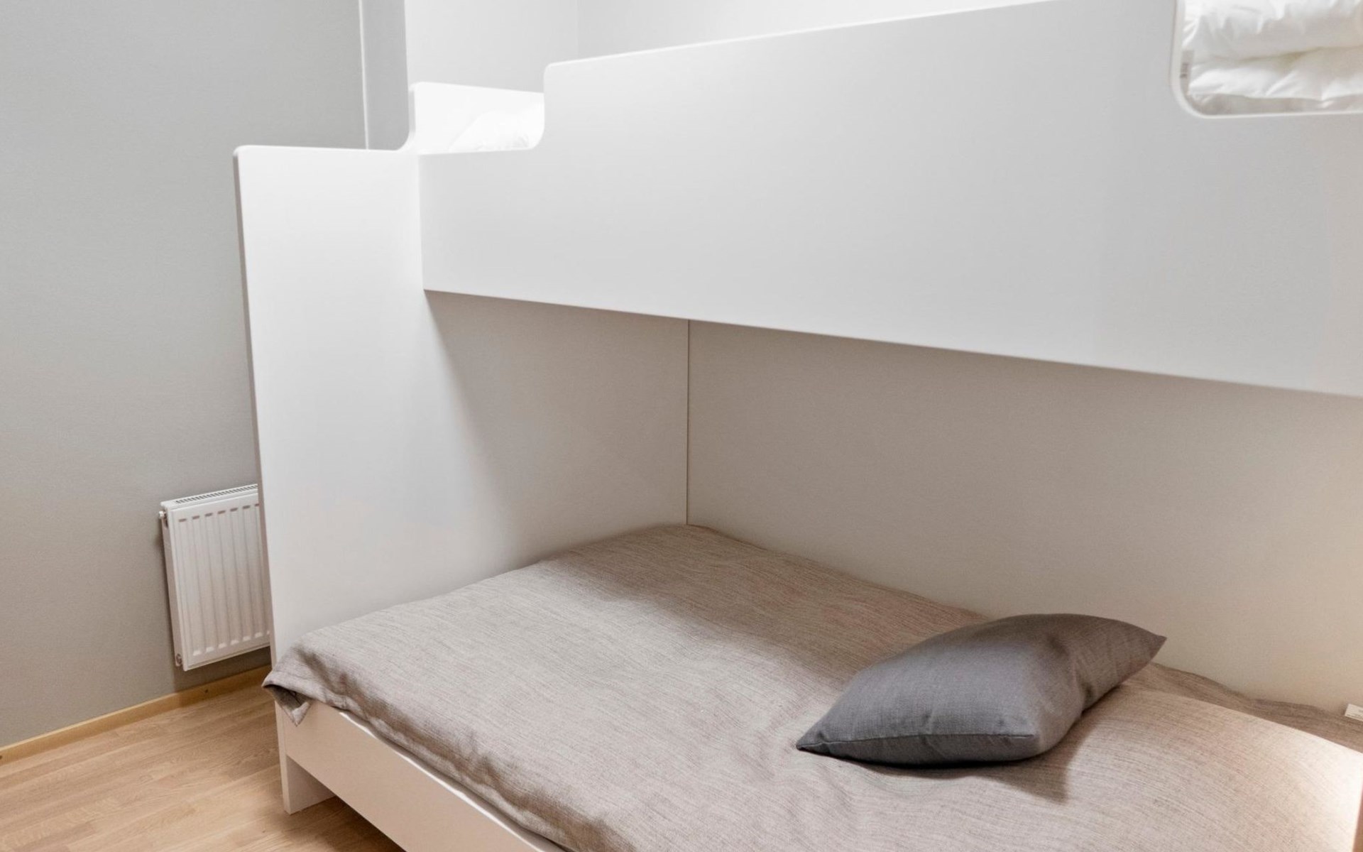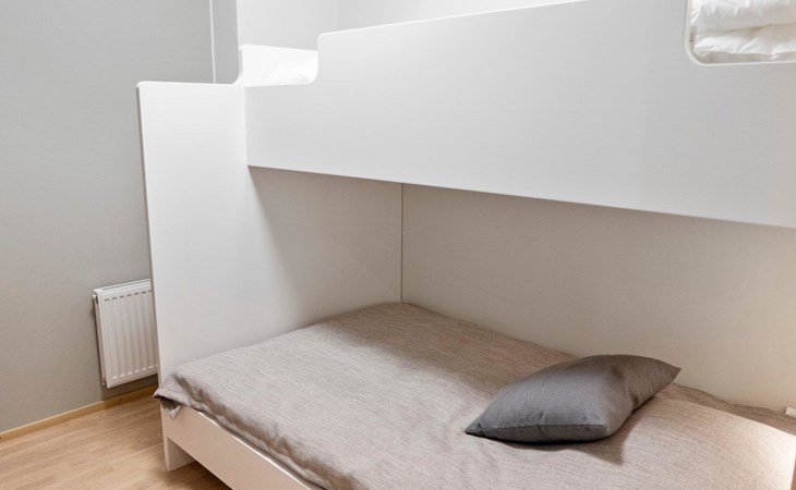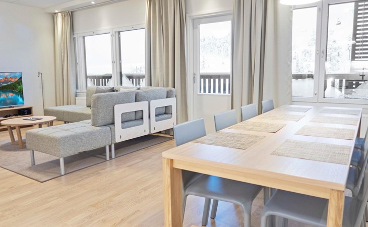 Large, high-quality and stylish apartment in Ruka village (West Ruka), completed in December 2021. The apartment is located in the Ruka Ski Chalets III building, which is in the heart of Ruka ski resort. All amenities are within walking distance. There is a parking area in the backyard of the building. The two bedrooms have two separate beds. One bedroom has bunk bed, lower bed is 140 cm wide. In addition, spreadable sofa bed for two in the living room. Pets allowed from 27.3.2024.