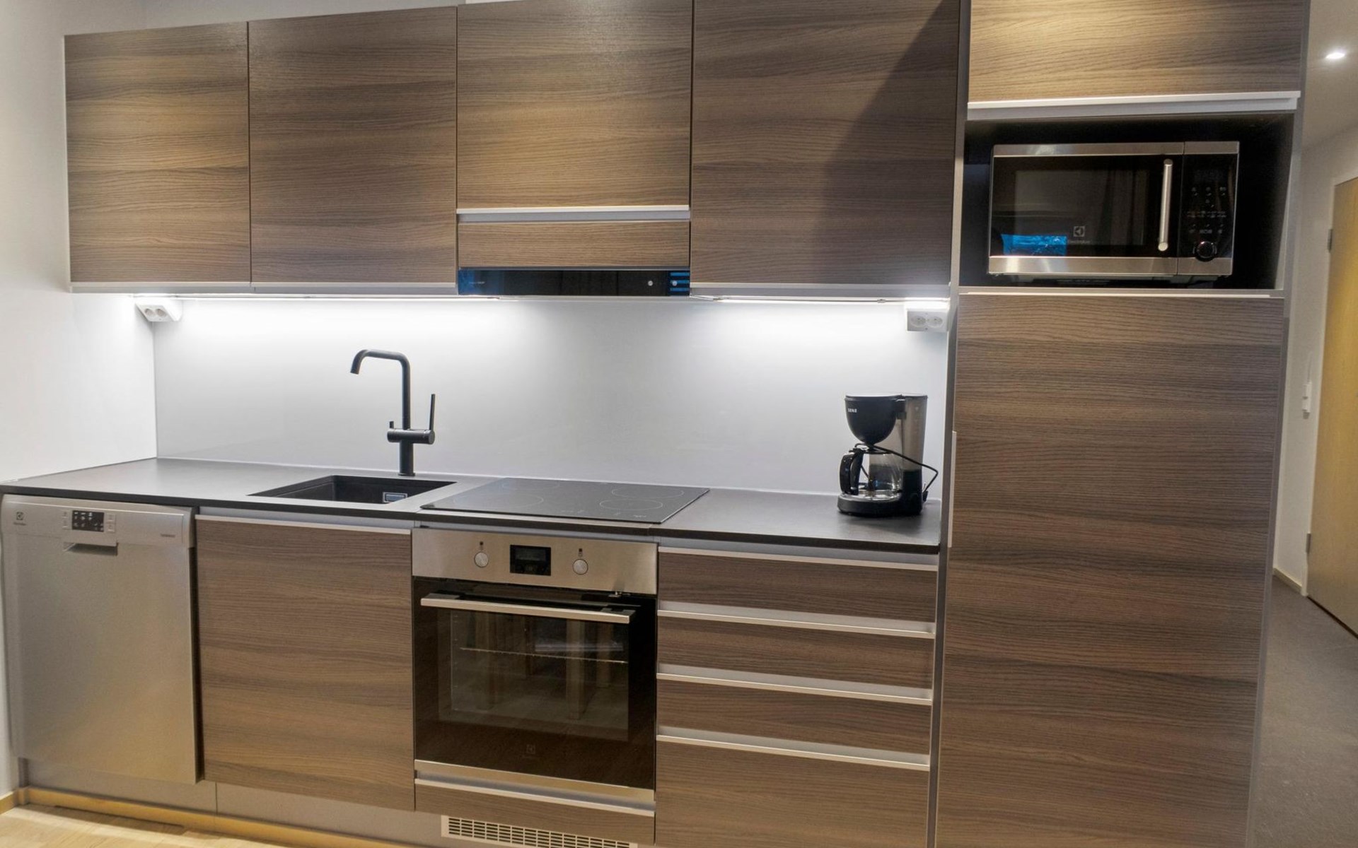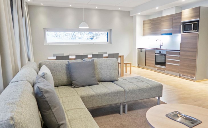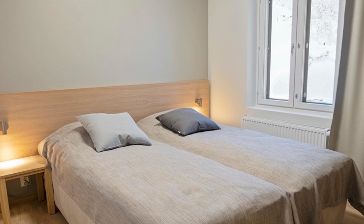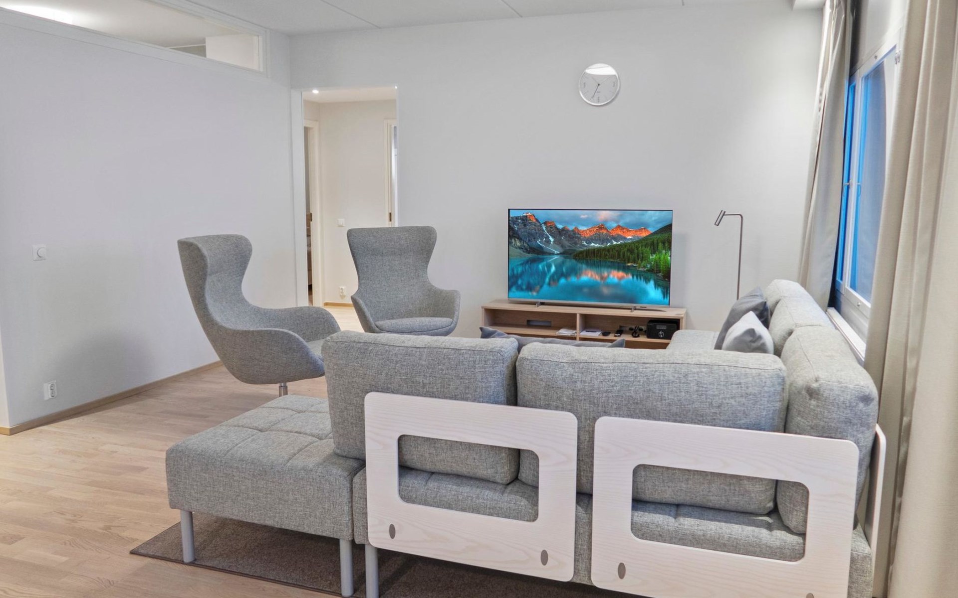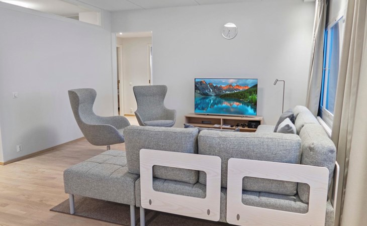 Large, high-quality and stylish apartment in Ruka village (West Ruka), completed in December 2021. The apartment is located in the Ruka Ski Chalets III building, which is in the heart of Ruka ski resort. All amenities are within walking distance. There is a parking area in the backyard of the building. The two bedrooms have two separate beds. One bedroom has bunk bed, lower bed is 140 cm wide. In addition, spreadable sofa bed for two in the living room. Pets allowed from 27.3.2024.