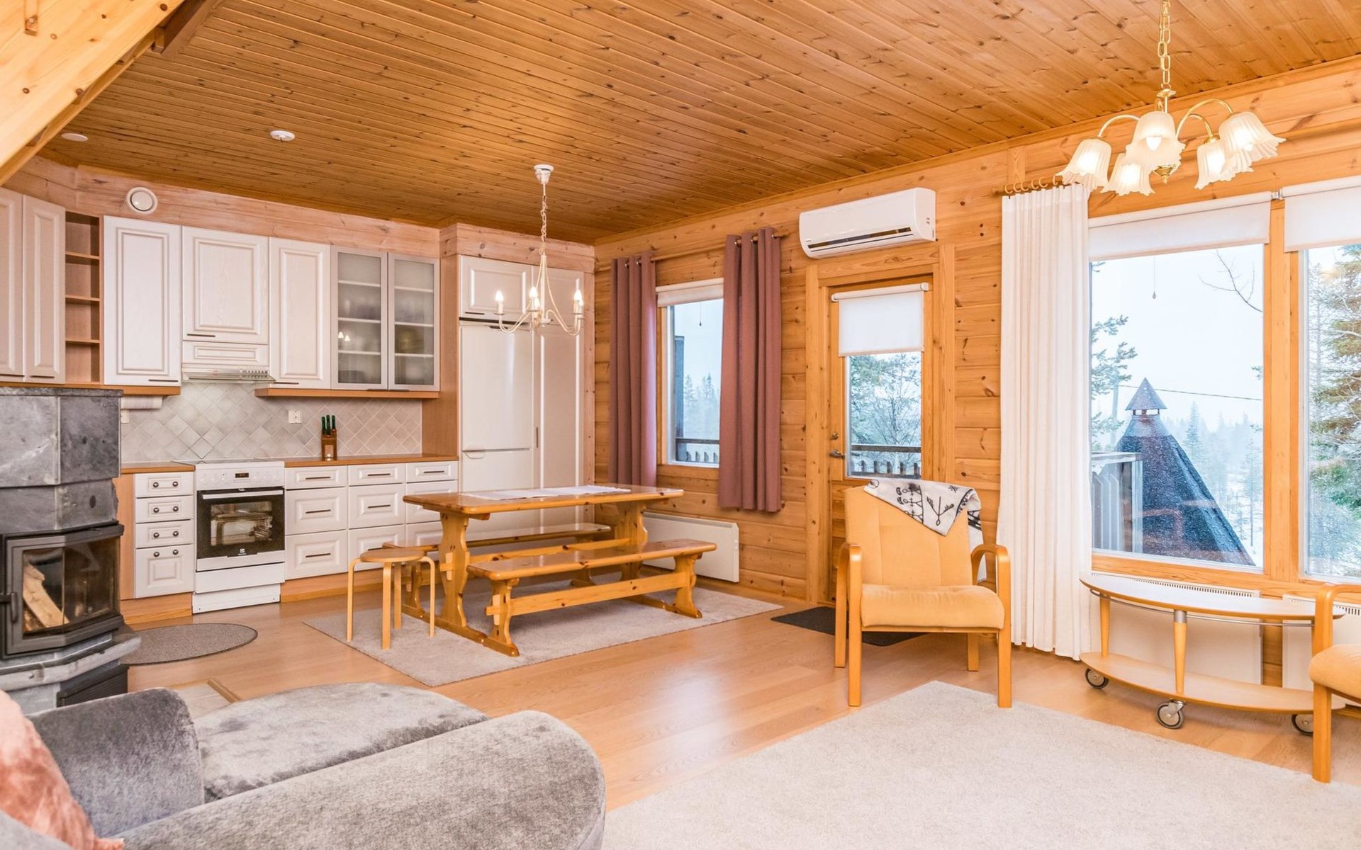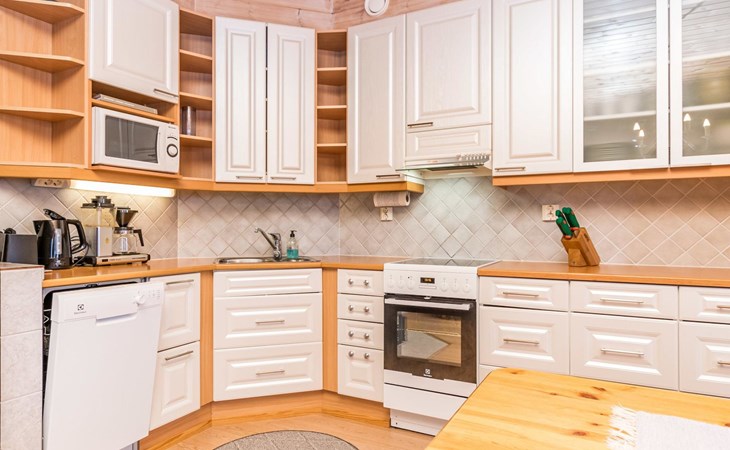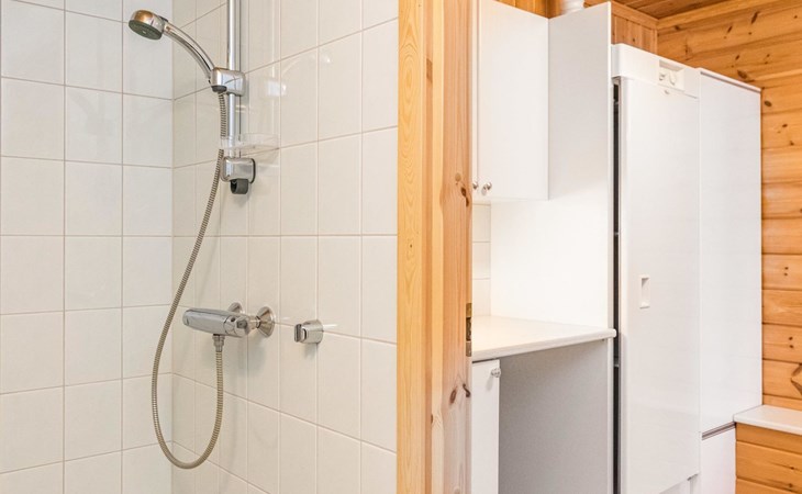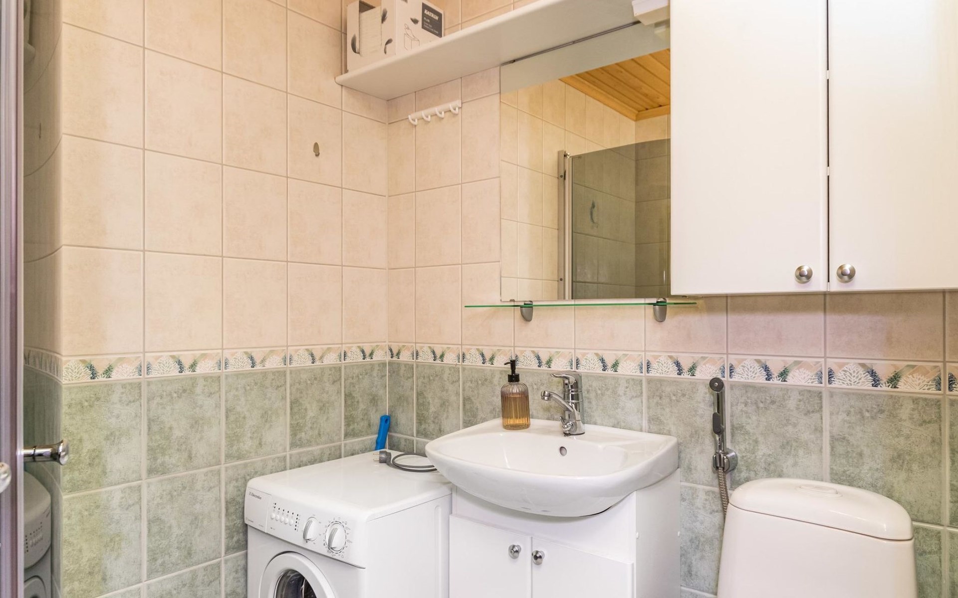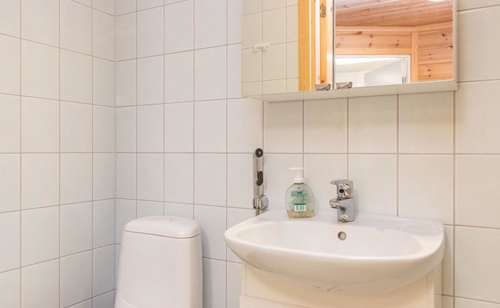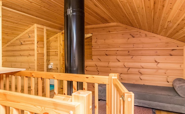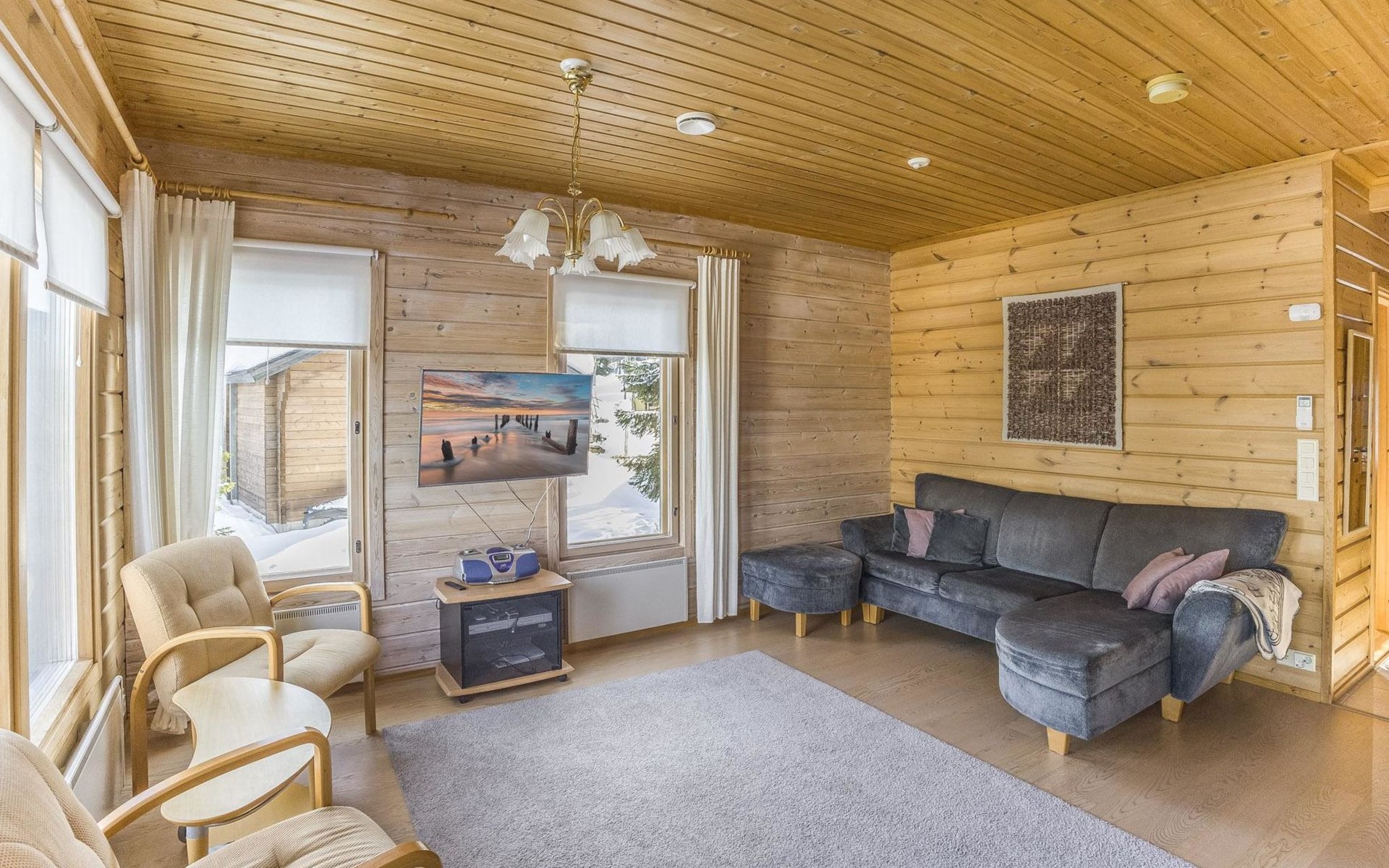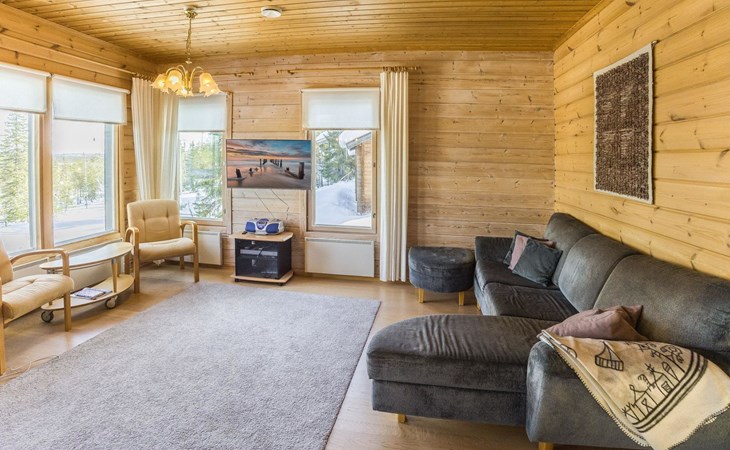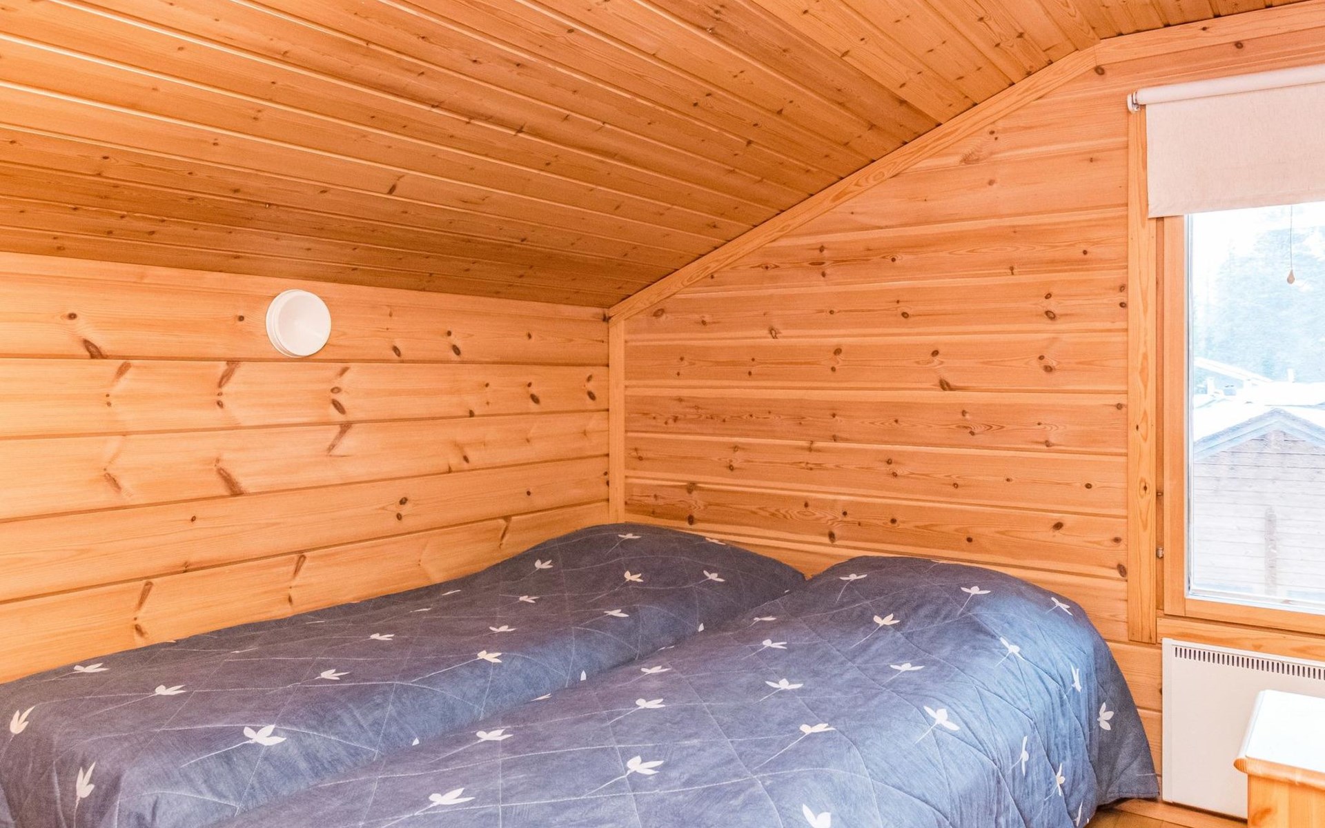 A semi-detached house built with love in 2002. Master bedroom with double bed downstairs. Bedrooms 2 and 3 upstairs, each with two beds. There is a bed in the upstairs hall and an additional sofabed/mattress. The room height upstairs is partly lower than normal. Open kitchen, living room, pantry, washroom, two toilets, electric sauna. Note: the refrigerator includes a freezer compartment.