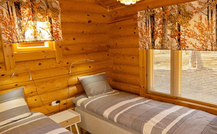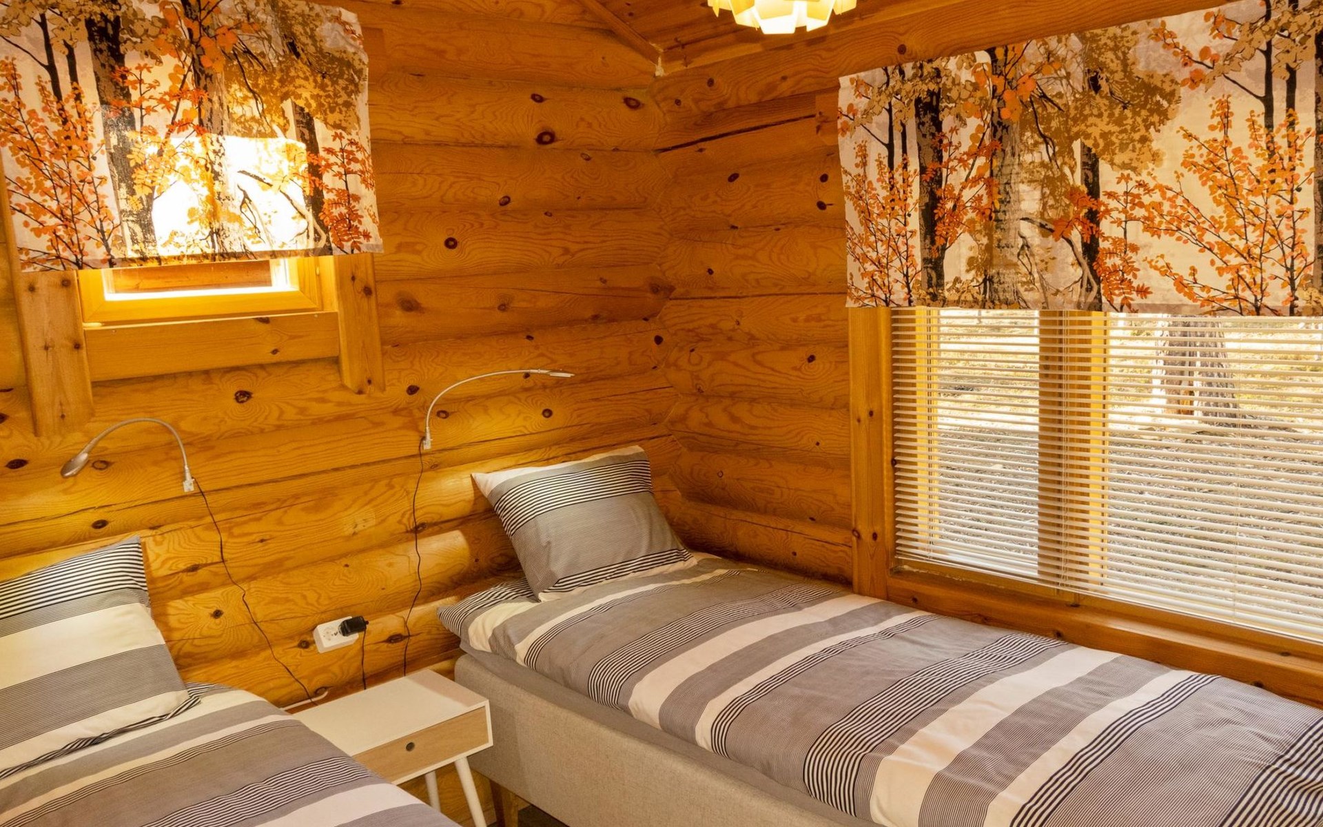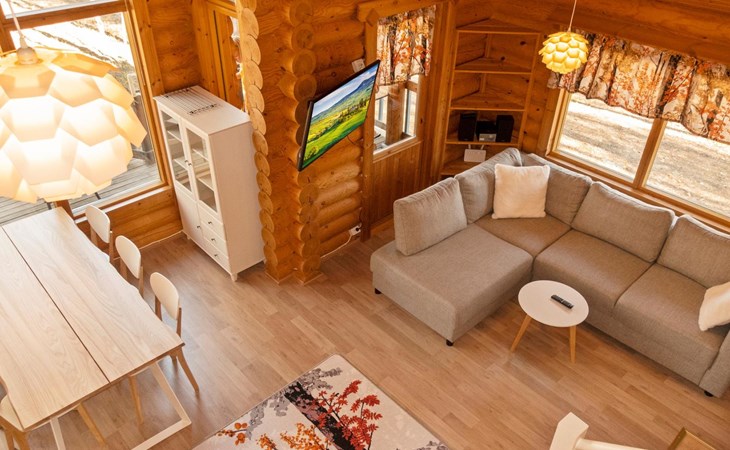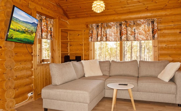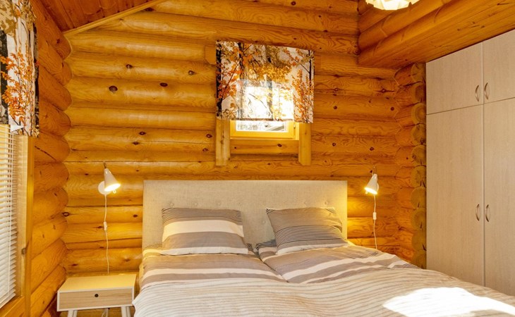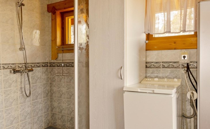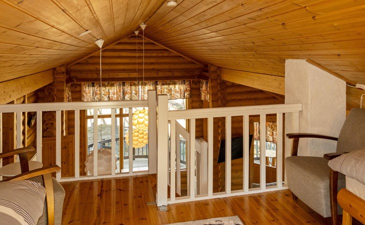 Cabin is built in 2002 and renovated in 2019. Living room/kitchen, two bedrooms, both with two beds, two beds in the loft, sauna, washroom, separate WC and terrace.