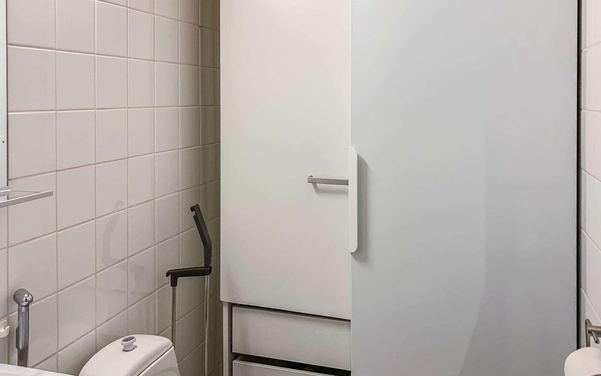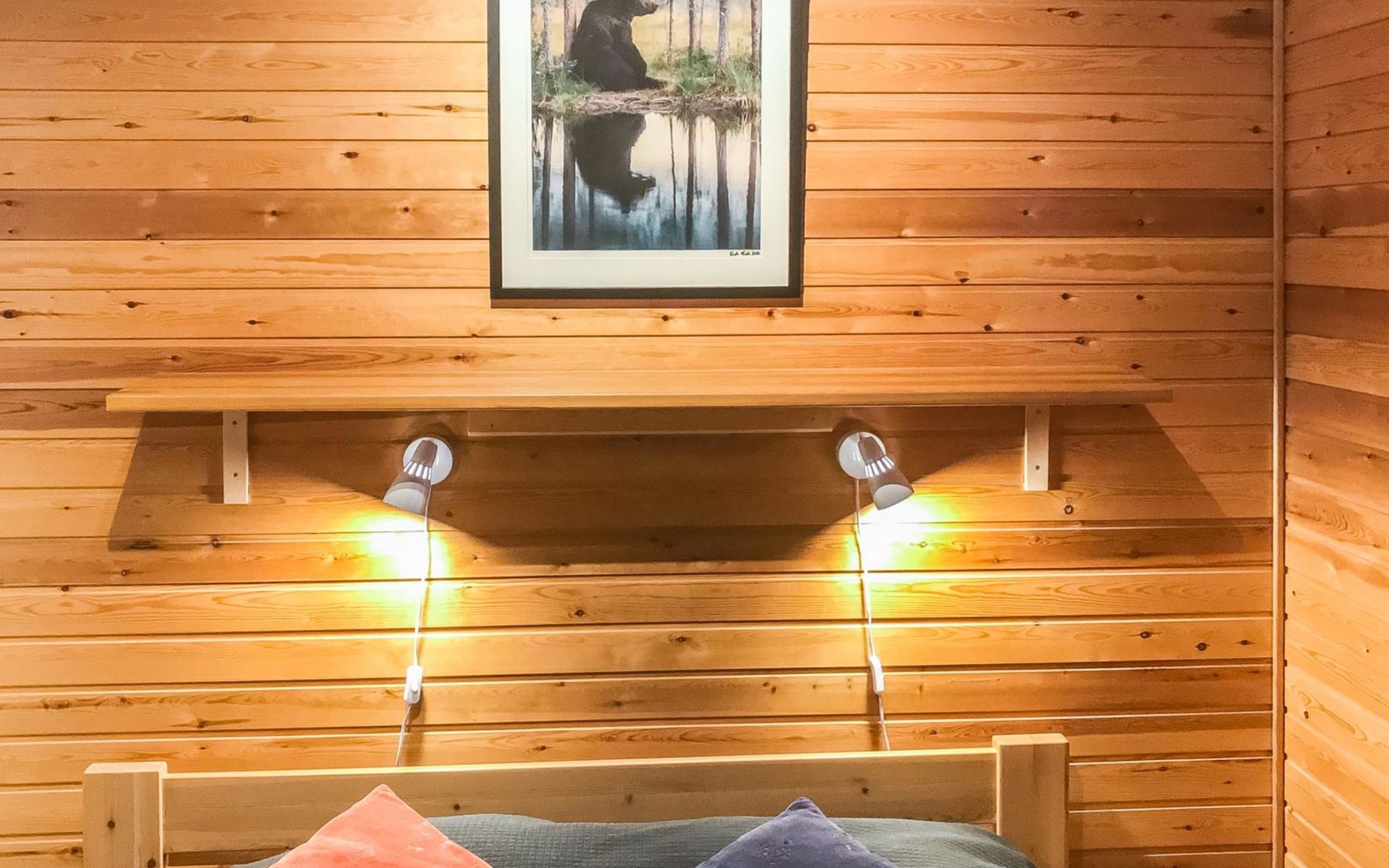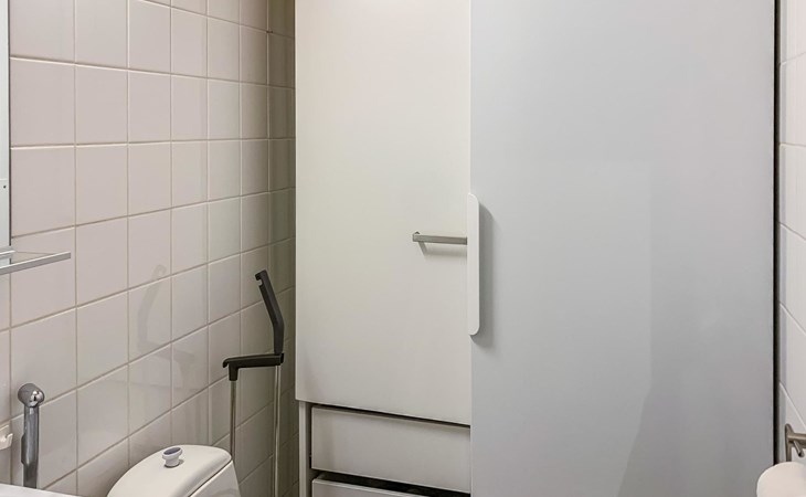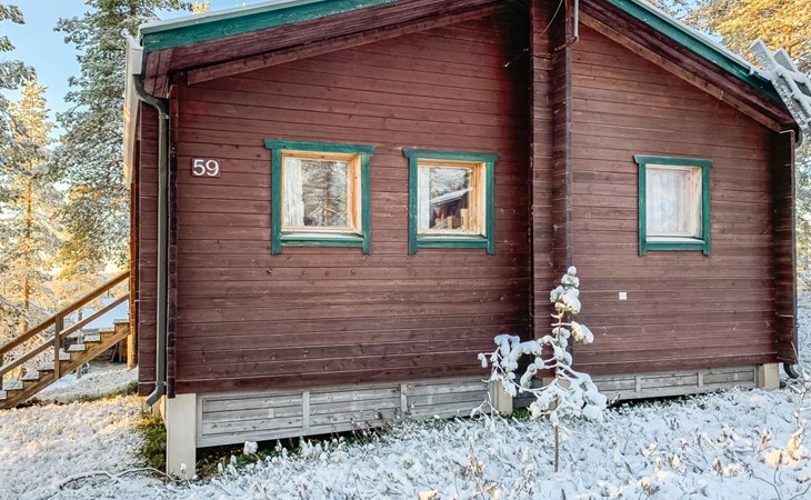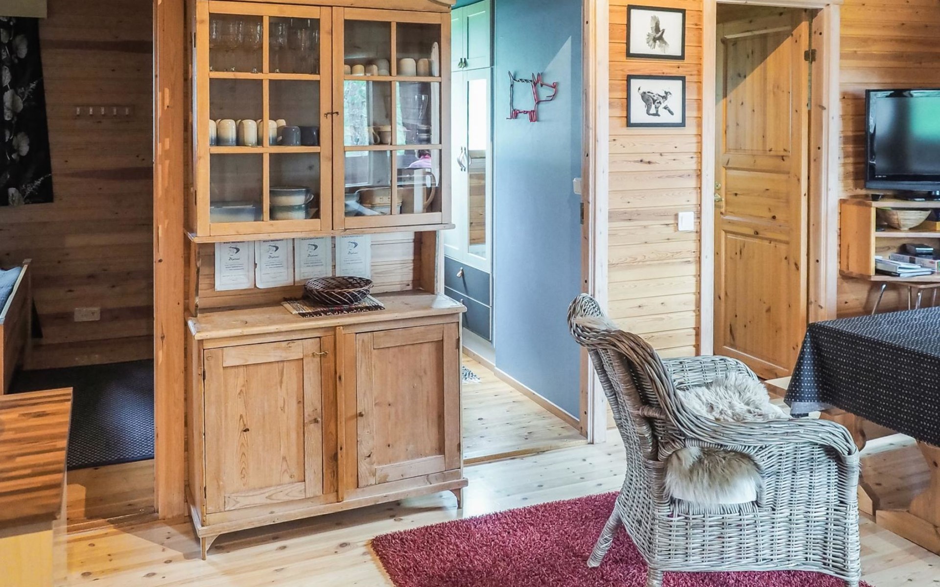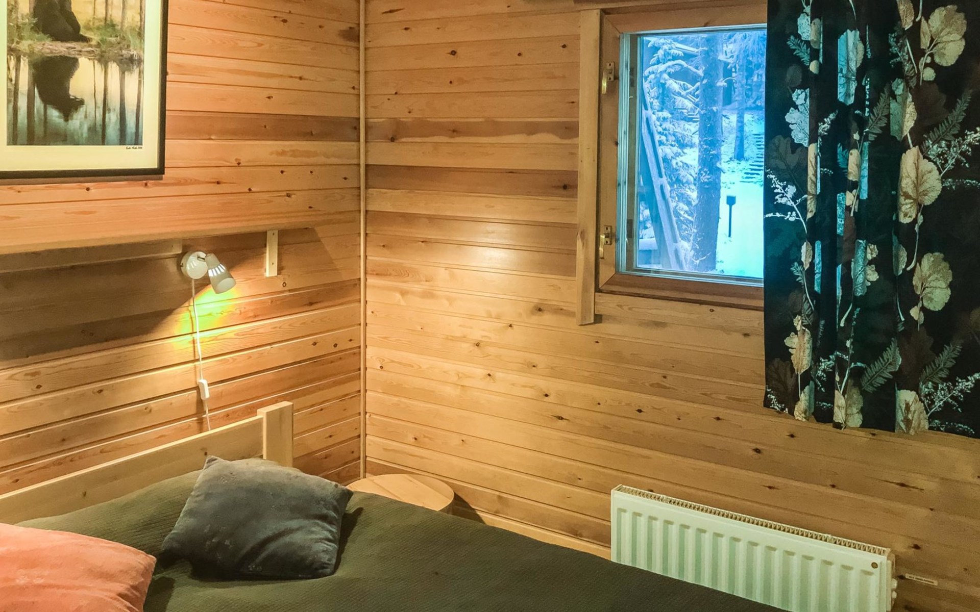 Living room and kitchenette, 3 bedrooms, one with double bed, 2 with bunk beds. Separate toilette and sauna/bathroom. Terrace.