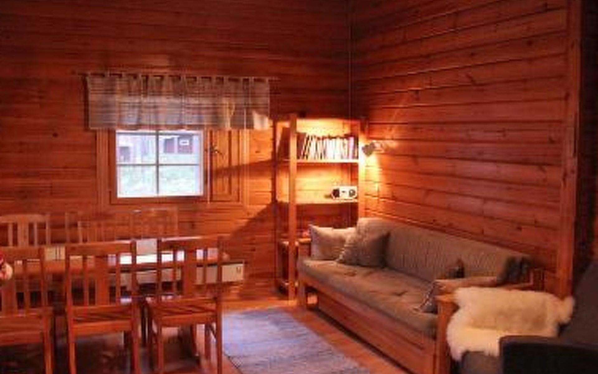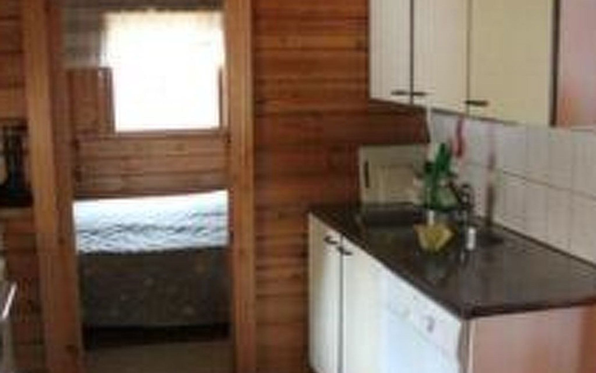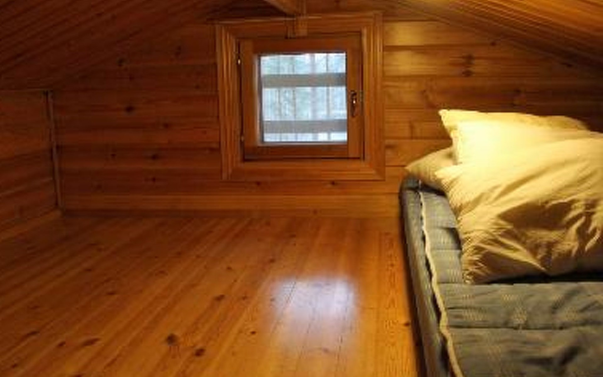 Log cabin 1992, kitchen, living room with convertible sofa bed for two, 2 bedrooms with double bed in each, low sleeping loft with 2 mattresses, dressing room, washroom, sauna, open veranda.