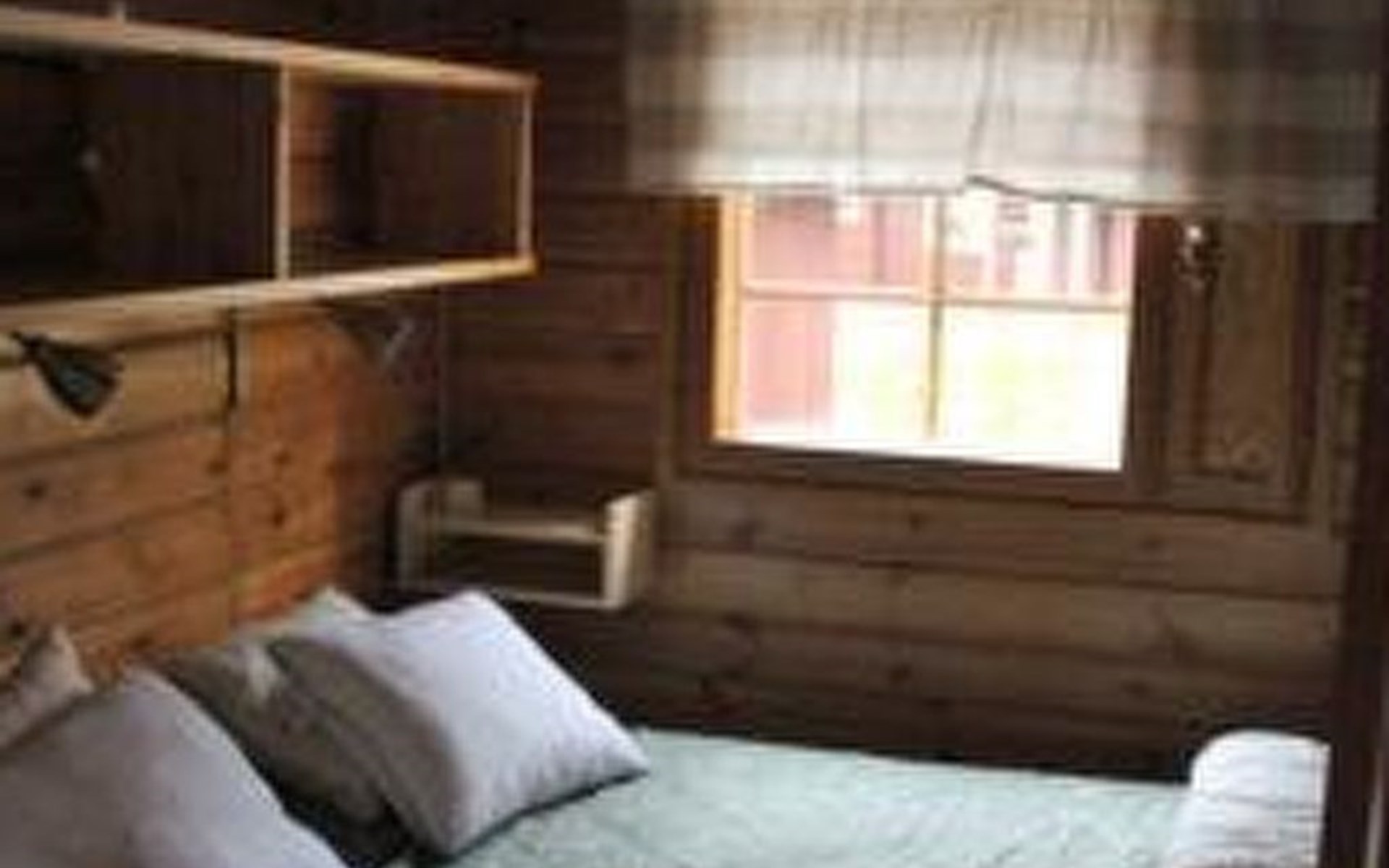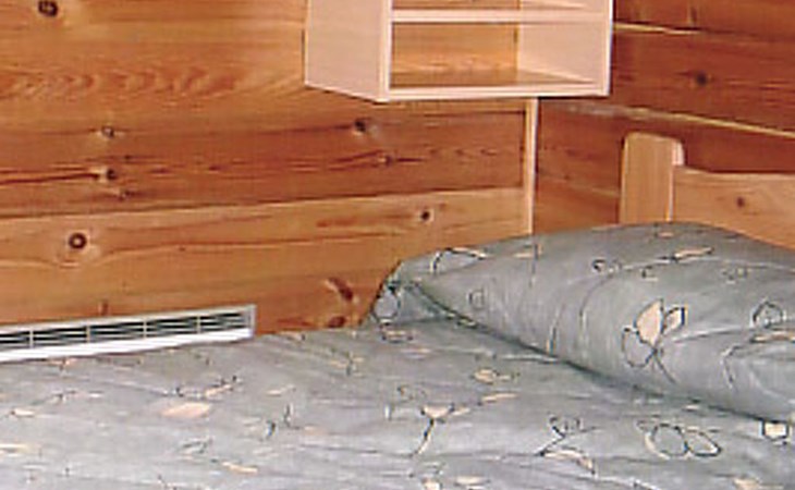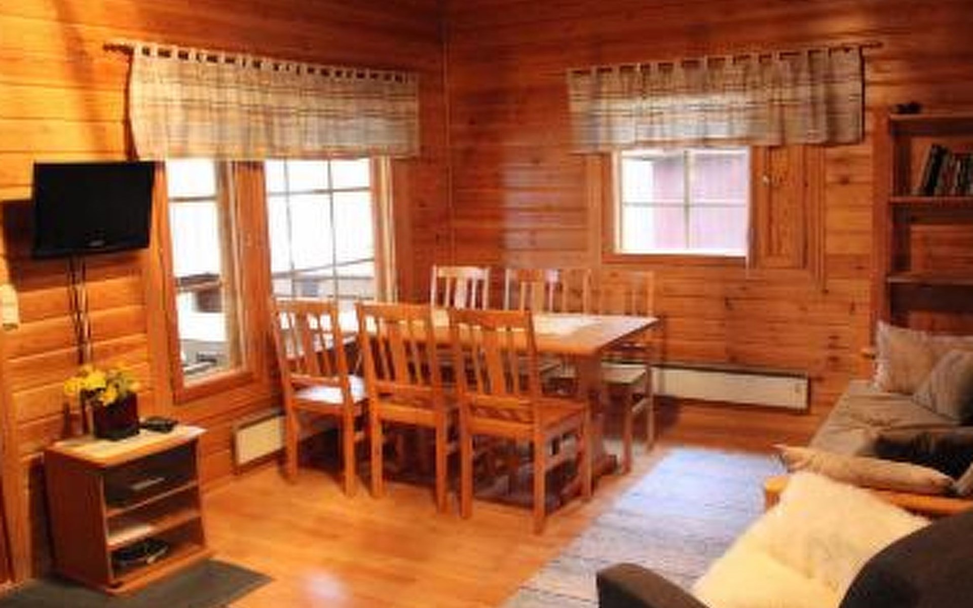Log cabin 1992, kitchen, living room with convertible sofa bed for two, 2 bedrooms with double bed in each, low sleeping loft with 2 mattresses, dressing room, washroom, sauna, open veranda.