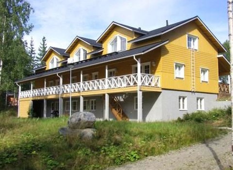 In a separate sleeping cottage (35 m2, can be used year-round) there are two bedrooms with 2 beds in each, one bedroom downstairs and one bedroom upstairs. Electric heating, refrigerator, outdoor dry toilet (no indoor toile). To upstairs quite steep stairs (stairs are outside under the canopy). Sleeping cottage is located about 50 m from the main cottage.