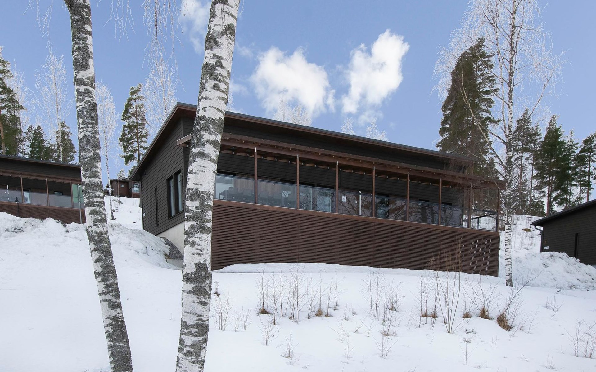 Villa Koivu is not just a cabin – it is an experience combining high-quality accommodation, peaceful nature, and versatile sports and wellness services. The included KampusPass ensures there is plenty to do — all year round! This comfortable, modern log villa is located in Kisakallio by Lake Lohjanjärvi, less than an hour's drive from Helsinki. Built in 2015, the 119 m² Villa Koivu offers modern, spacious surroundings ideal for relaxation or active group activities, surrounded by stunning natural scenery. Explore the beautiful ancient forests of Karnaisten Korpi Recreation Area and enjoy outdoor activities, hiking, and water adventures.