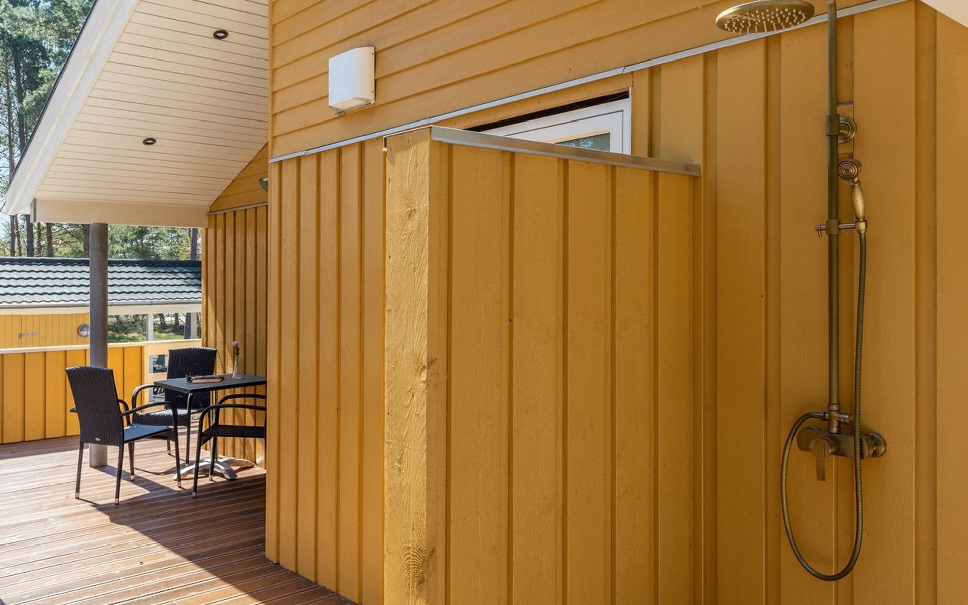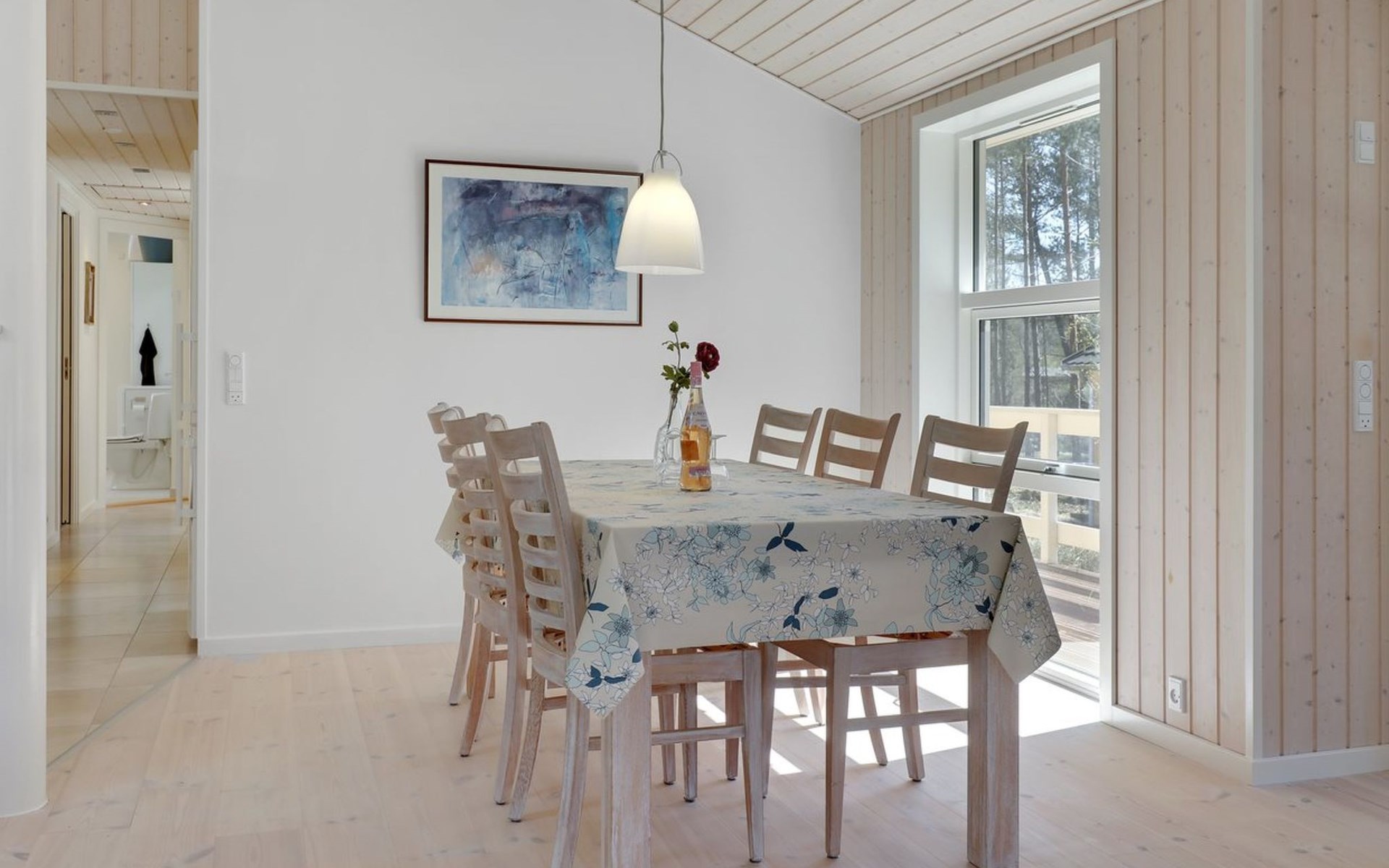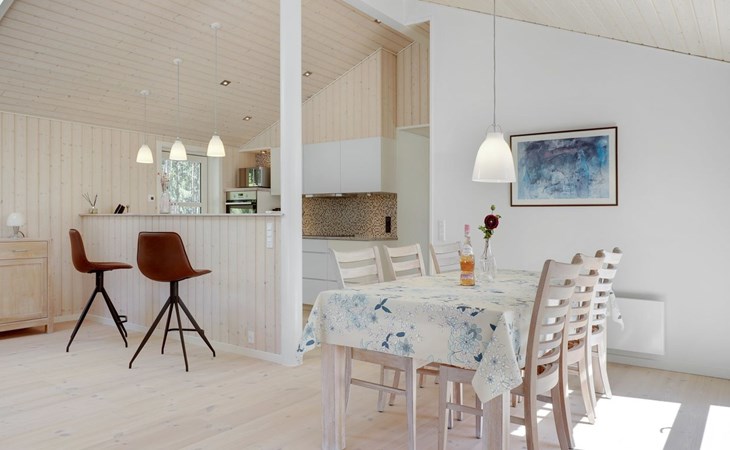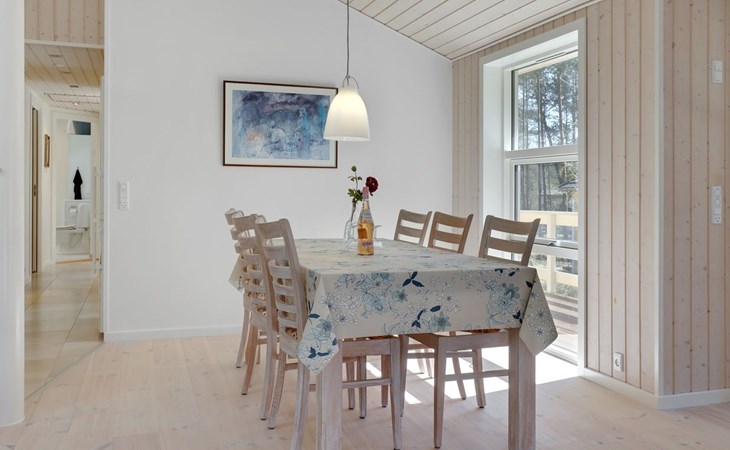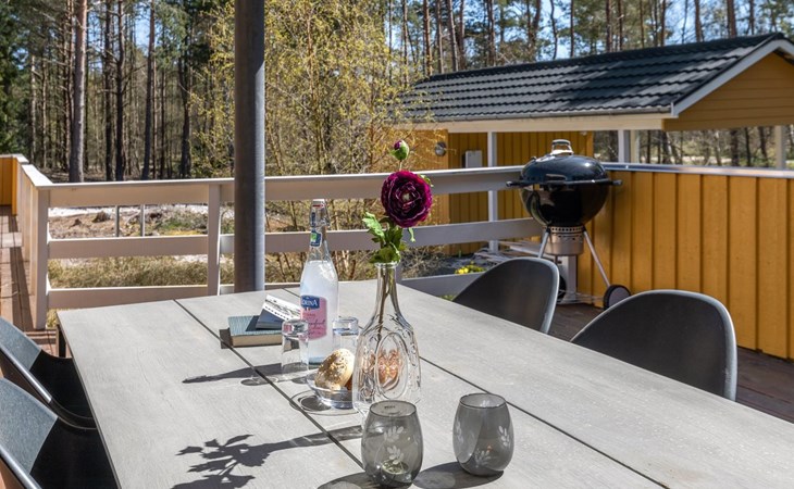 Single-family house, built in 2022. 600 m from the sea. Private: natural state property 3'061 m2. Outdoor shower, barbecue, children's playground (swing). In the house: washing machine, tumble dryer. Parking at the house. Carport. E-charging station. Grocery 3.5 km. Golf course 4.5 km. The owner does not accept any youth groups.