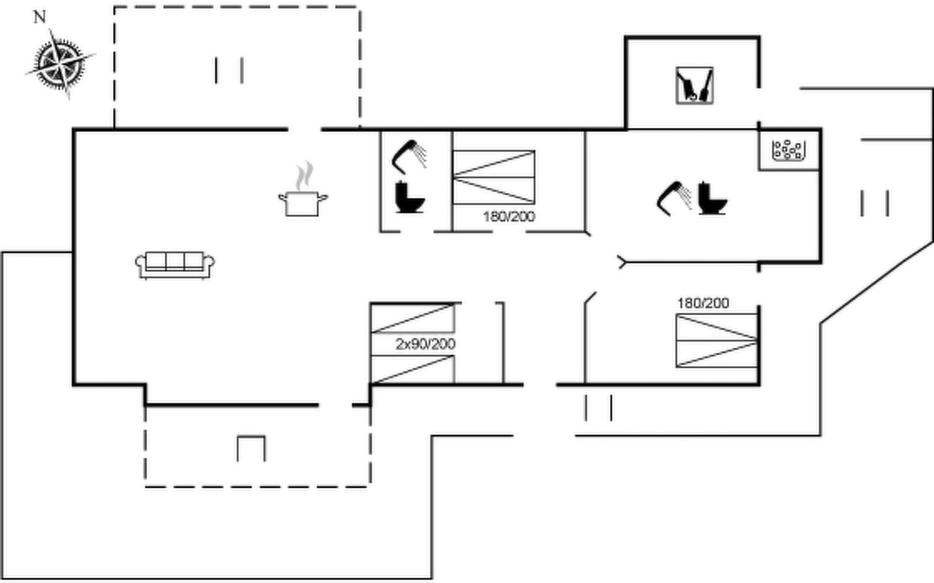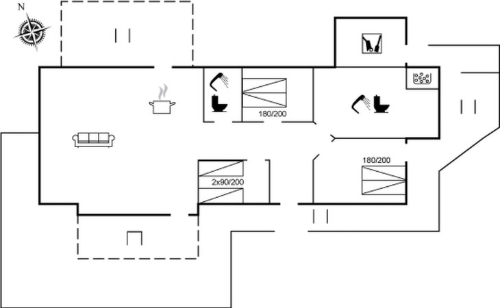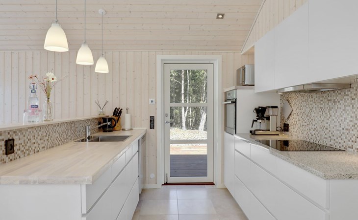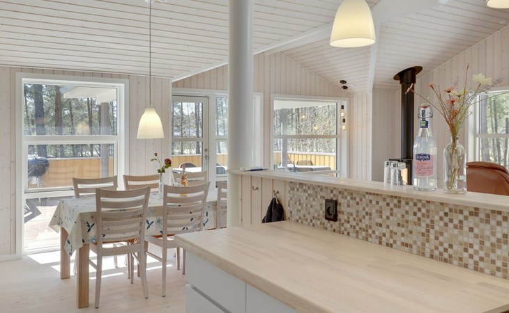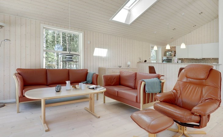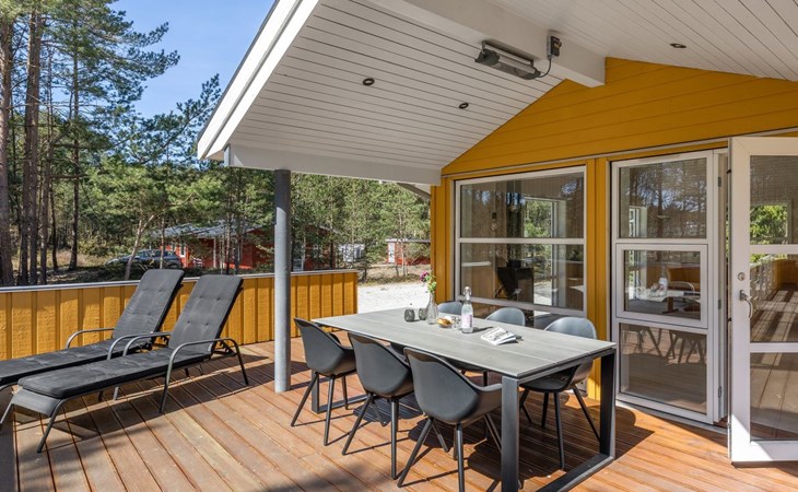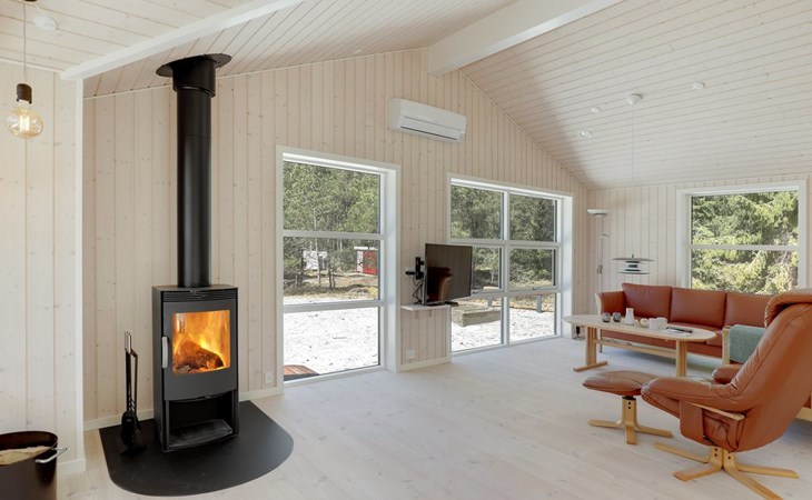Single-family house, built in 2022. 600 m from the sea. Private: natural state property 3'061 m2. Outdoor shower, barbecue, children's playground (swing). In the house: washing machine, tumble dryer. Parking at the house. Carport. E-charging station. Grocery 3.5 km. Golf course 4.5 km. The owner does not accept any youth groups.