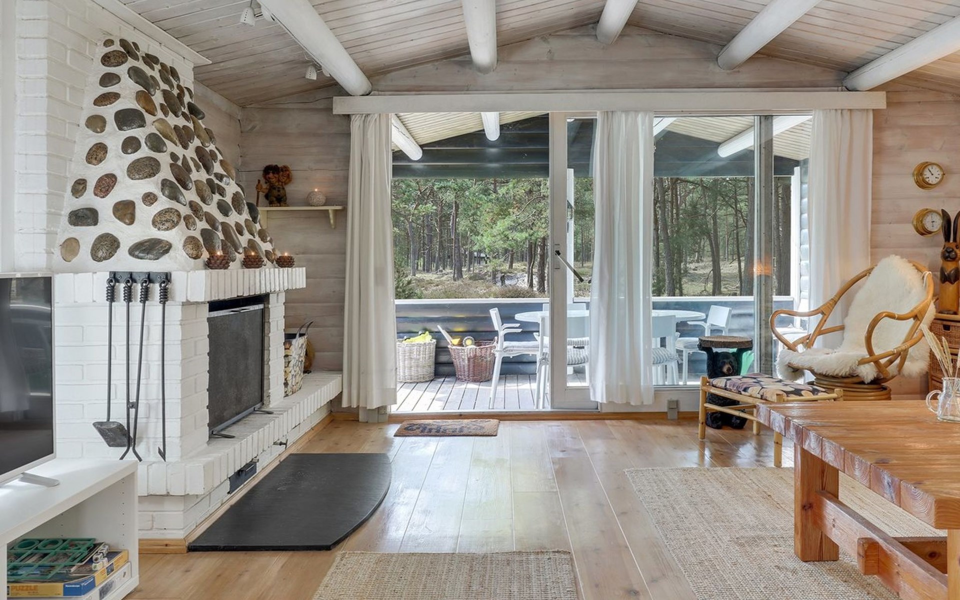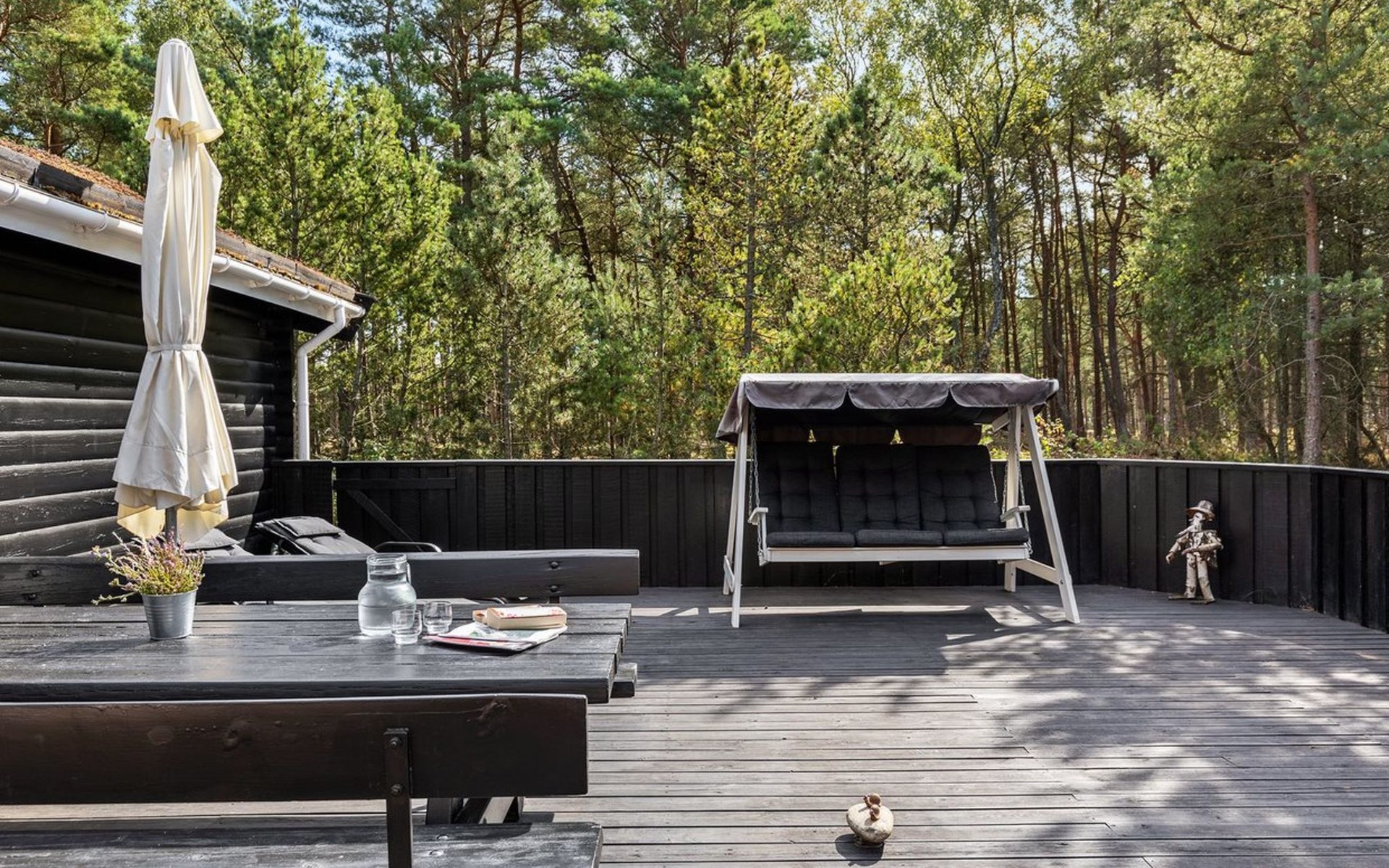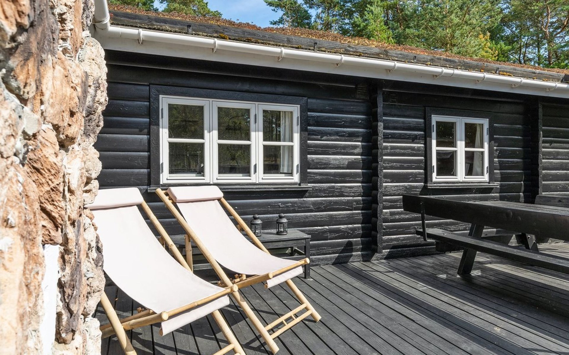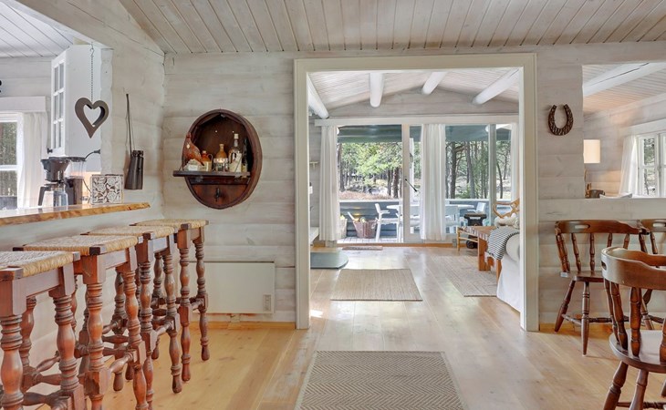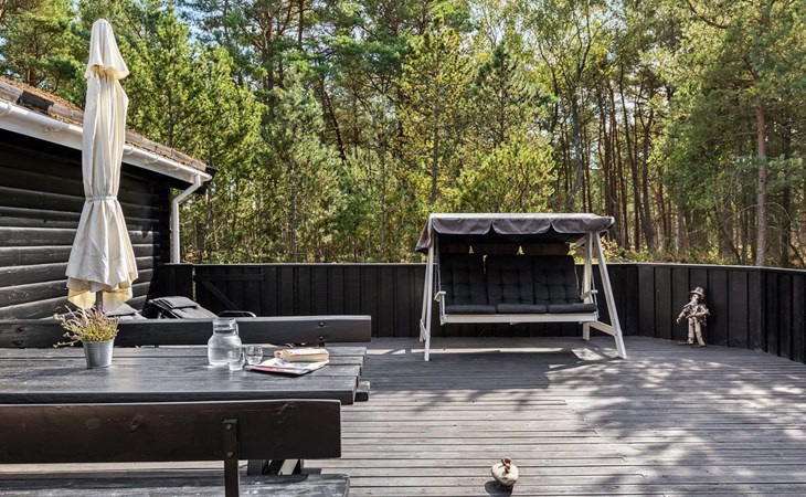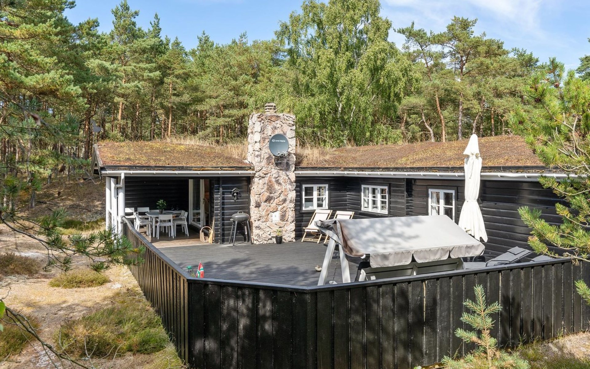 Single-family house, built in 1975. 200 m from the sea. Private: natural state property 3'377 m2. Terrace (106 m2), barbecue, children's playground (swing). In the house: sauna, washing machine, tumble dryer. Parking at the house. Grocery 4 km. Golf course 900 m. The owner does not accept any youth groups.