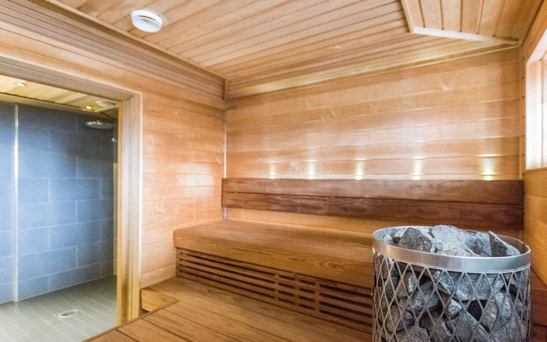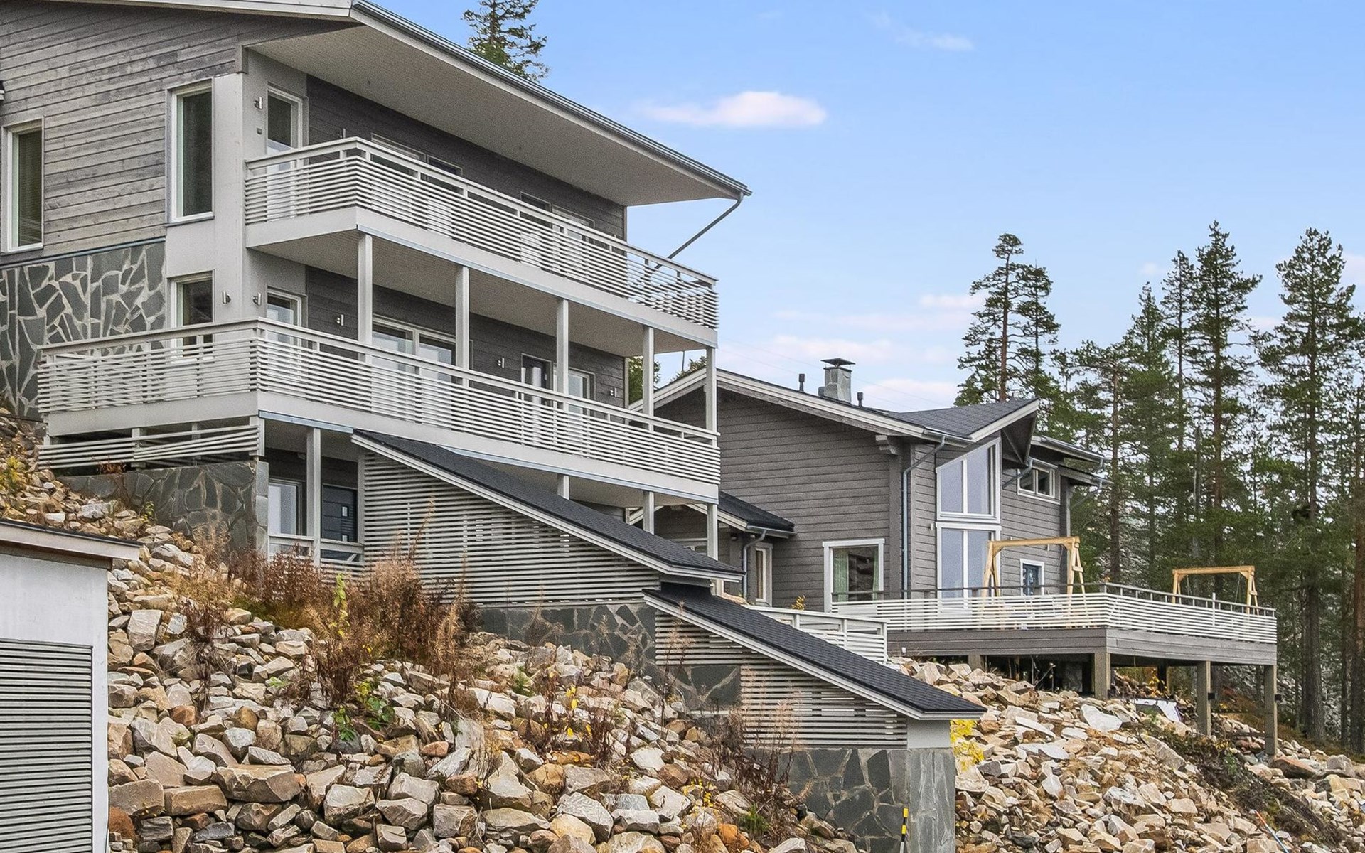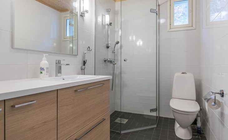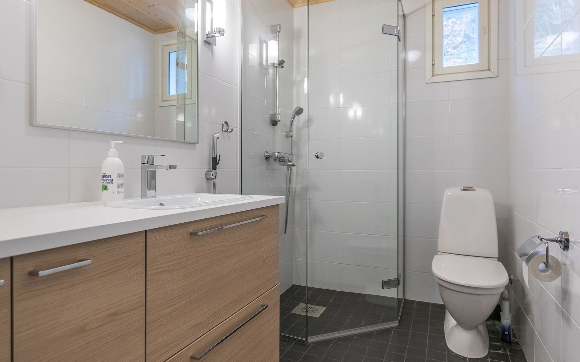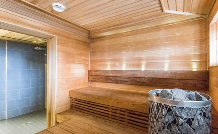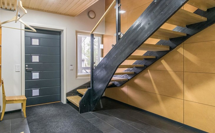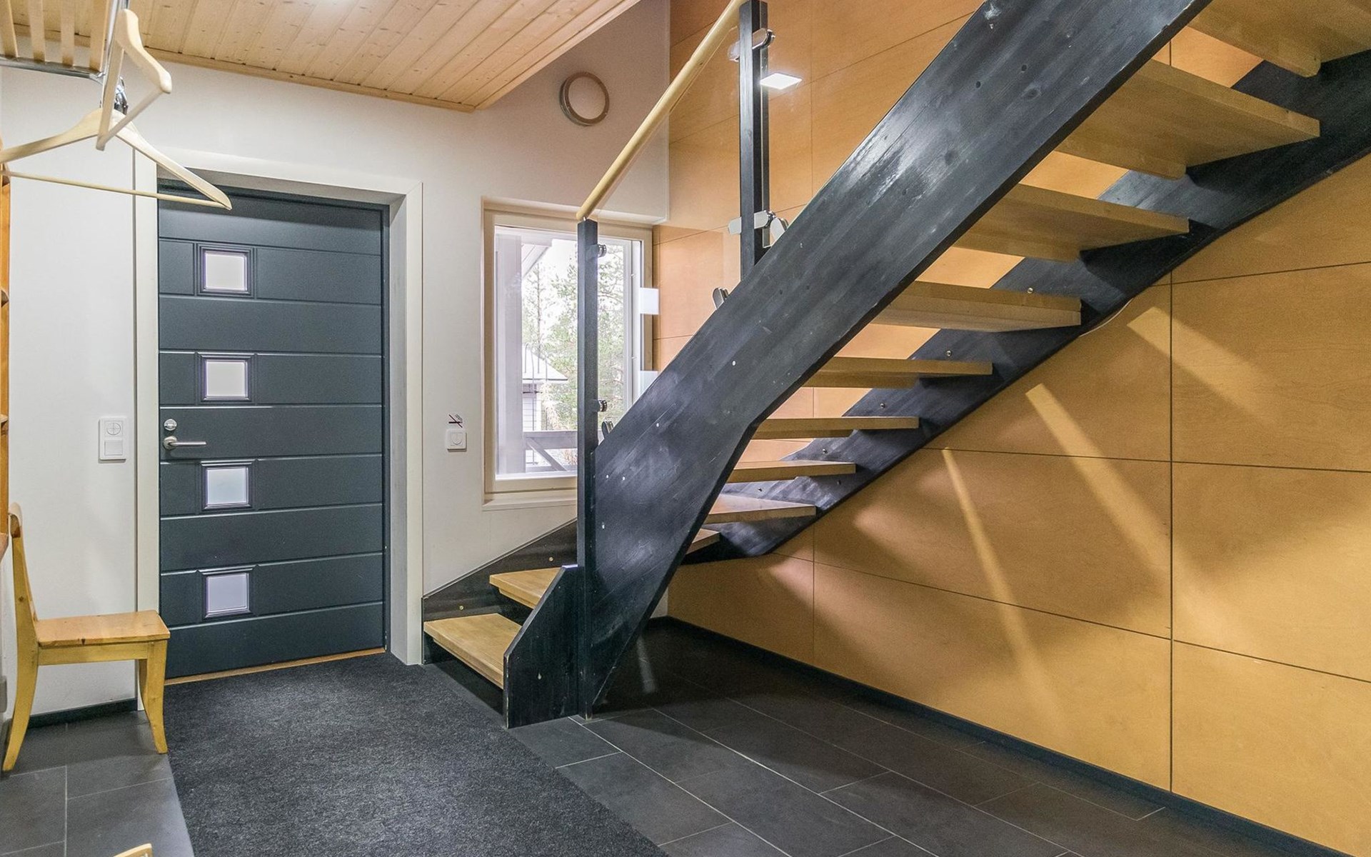 Downstairs there is a washroom, dressing room, sauna (electric stove), warm ski/boot storage, maintenance room for skies, utility room and toilet.