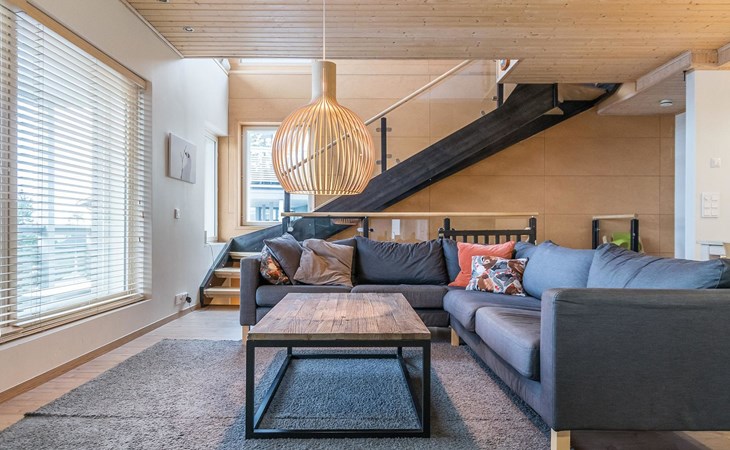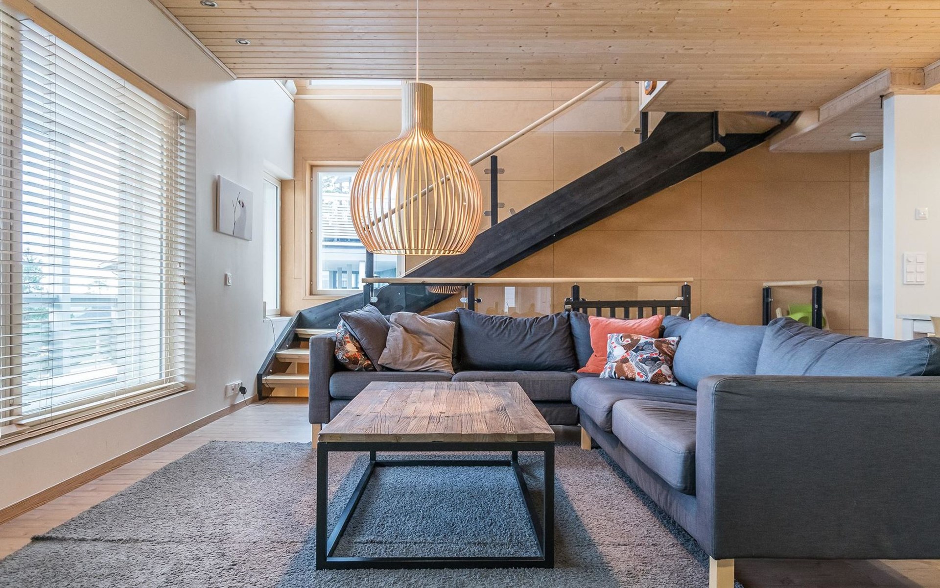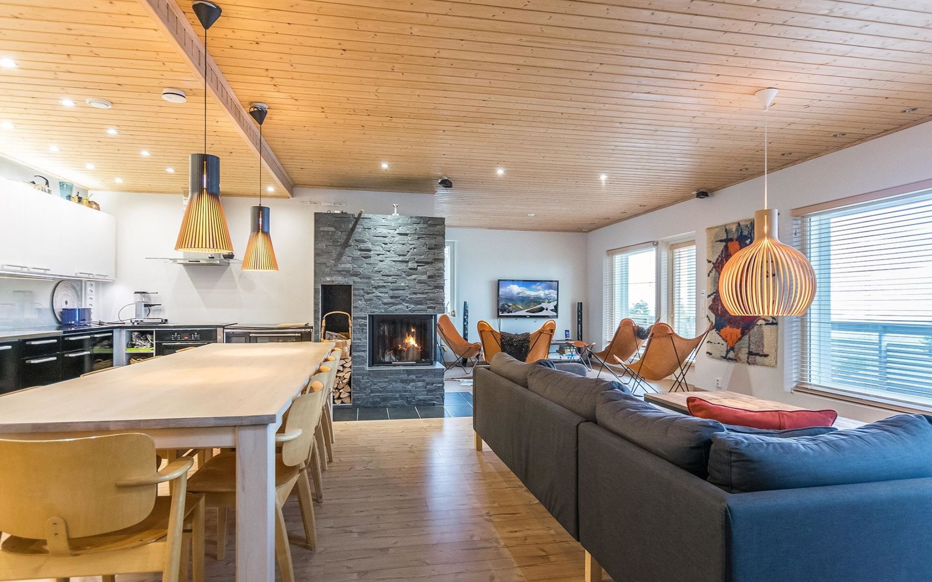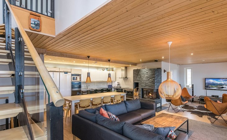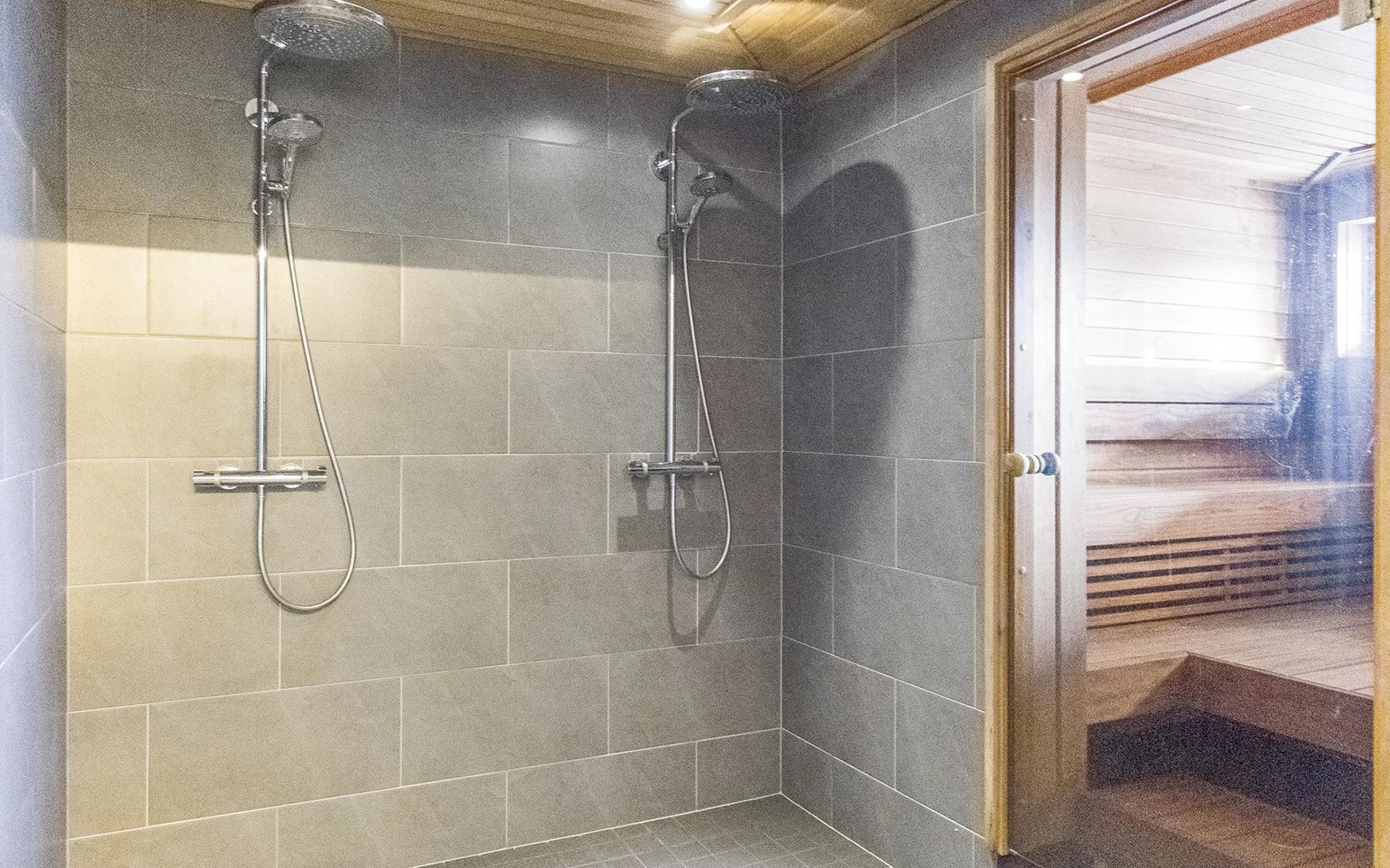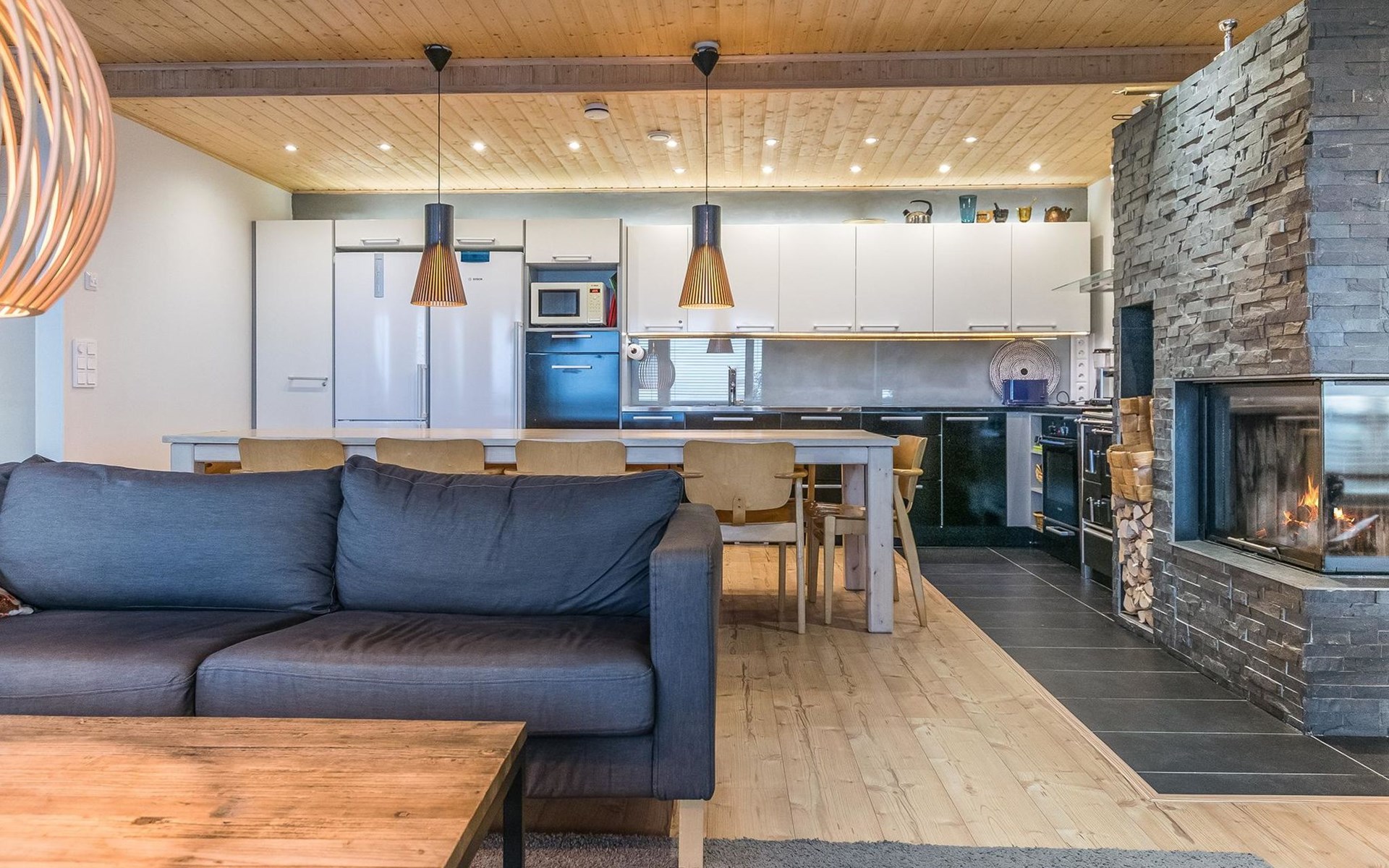 Downstairs there is a washroom, dressing room, sauna (electric stove), warm ski/boot storage, maintenance room for skies, utility room and toilet.