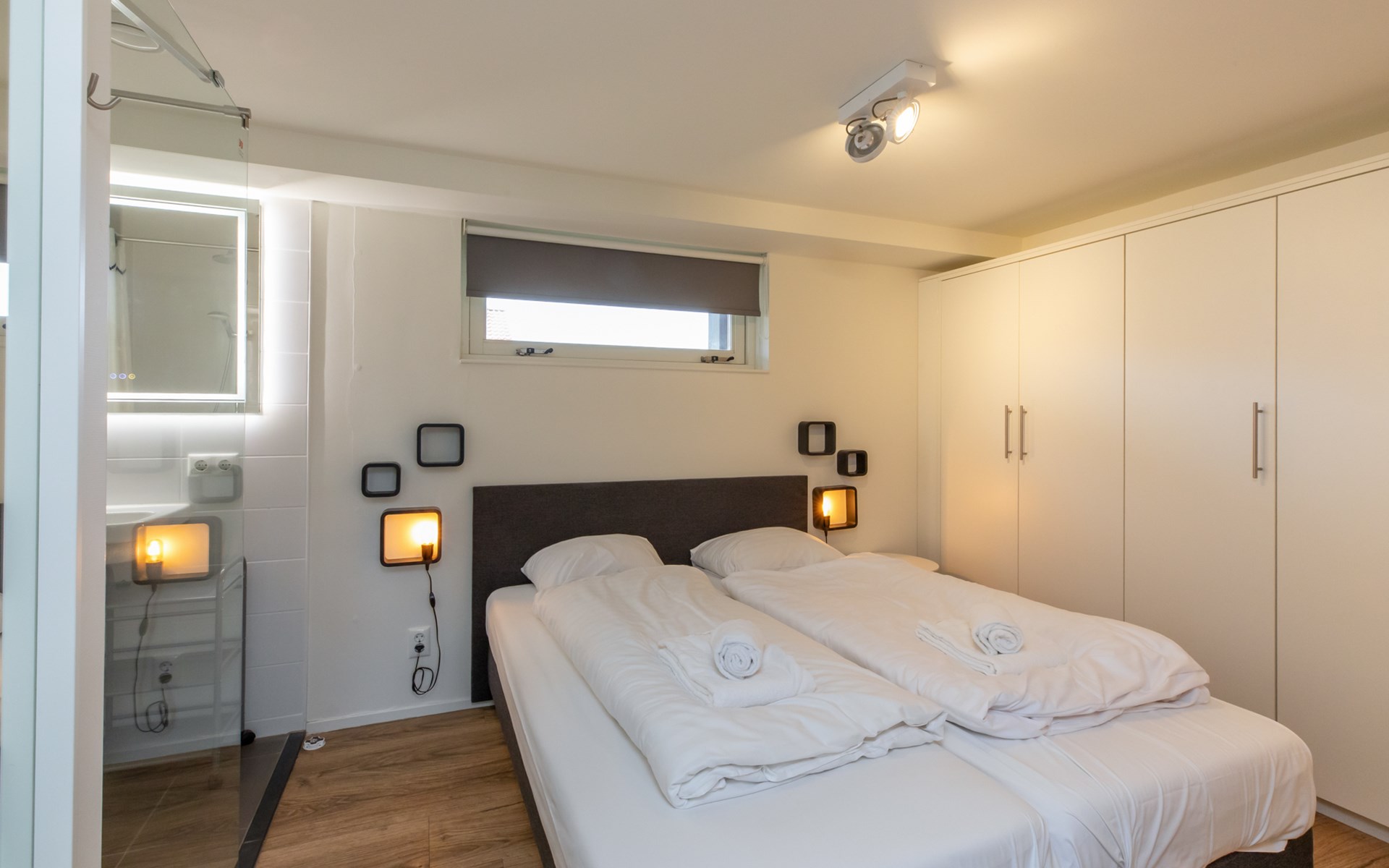 Zeewinde accommodates up to six people, spread over three bedrooms. On the ground floor, you'll find the first bedroom with a comfortable double bed (160x210cm) and its own en-suite bathroom with shower and sink. The first floor has two more bedrooms, each with a double bed (160x210cm) and ample storage space for your clothes. Each bedroom also has a television so that you can also take some time off to just watch TV. A separate bathroom with shower and sink completes the upper floor.