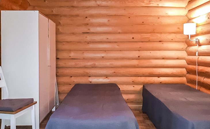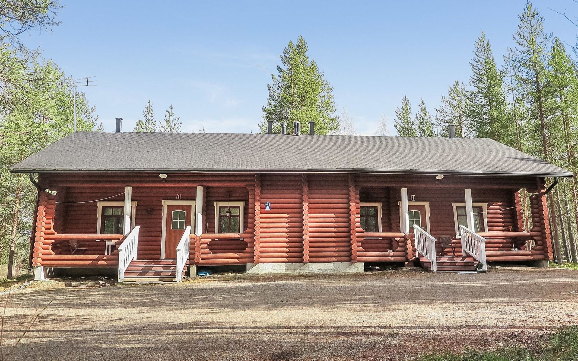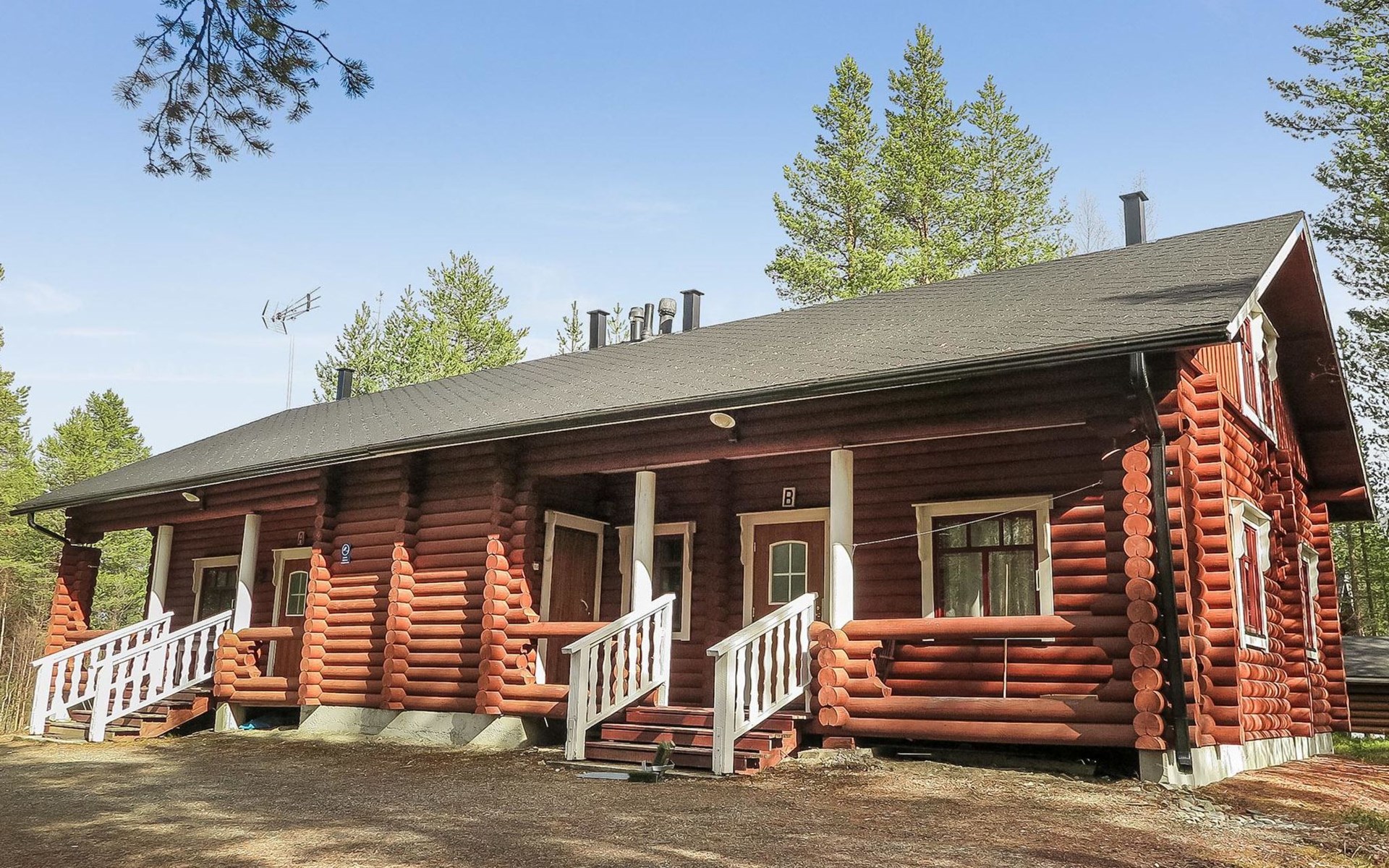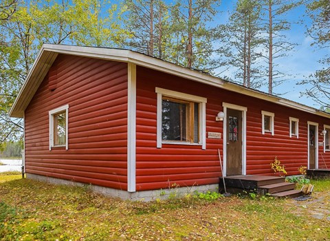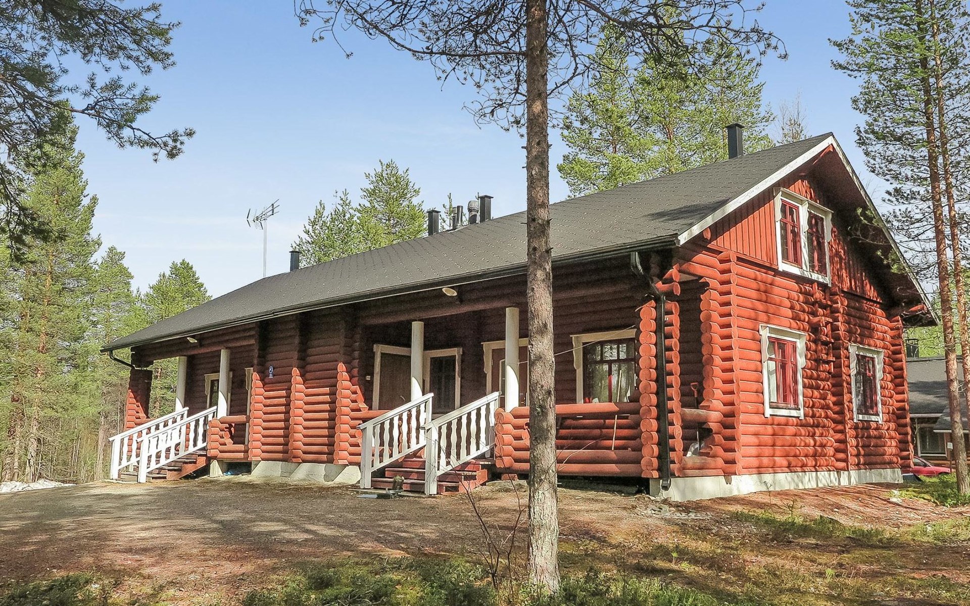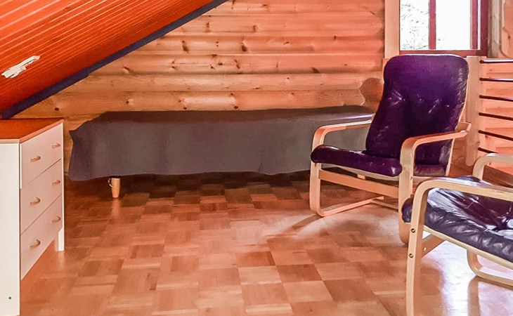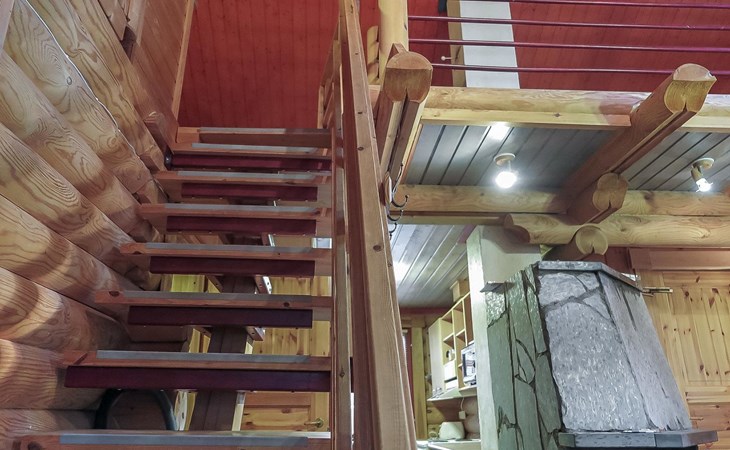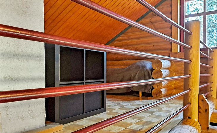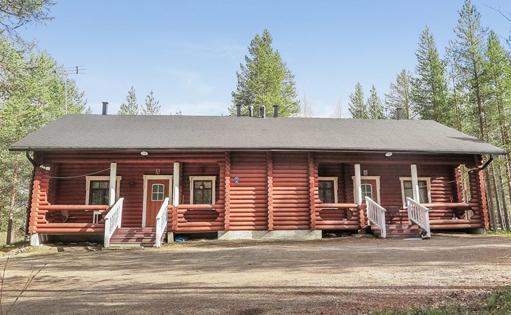 Apartment in log-built semi-detached house 2001, living room 2 extra beds, cooking recess, 2 bedrooms 2 beds in each, spacious sleeping loft with 4 beds, sauna, washroom, open porch, one toilet in downstairs and one in upstairs.