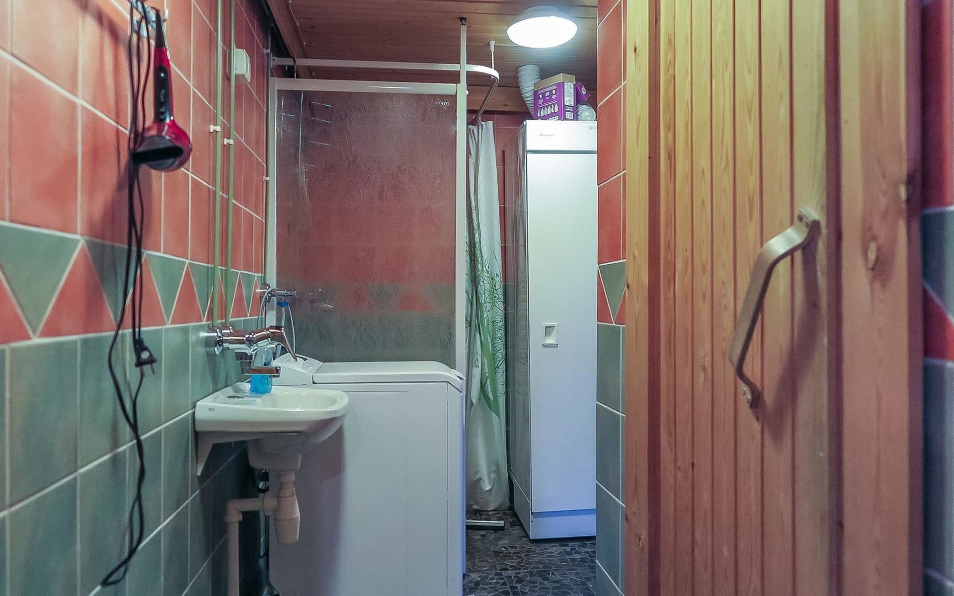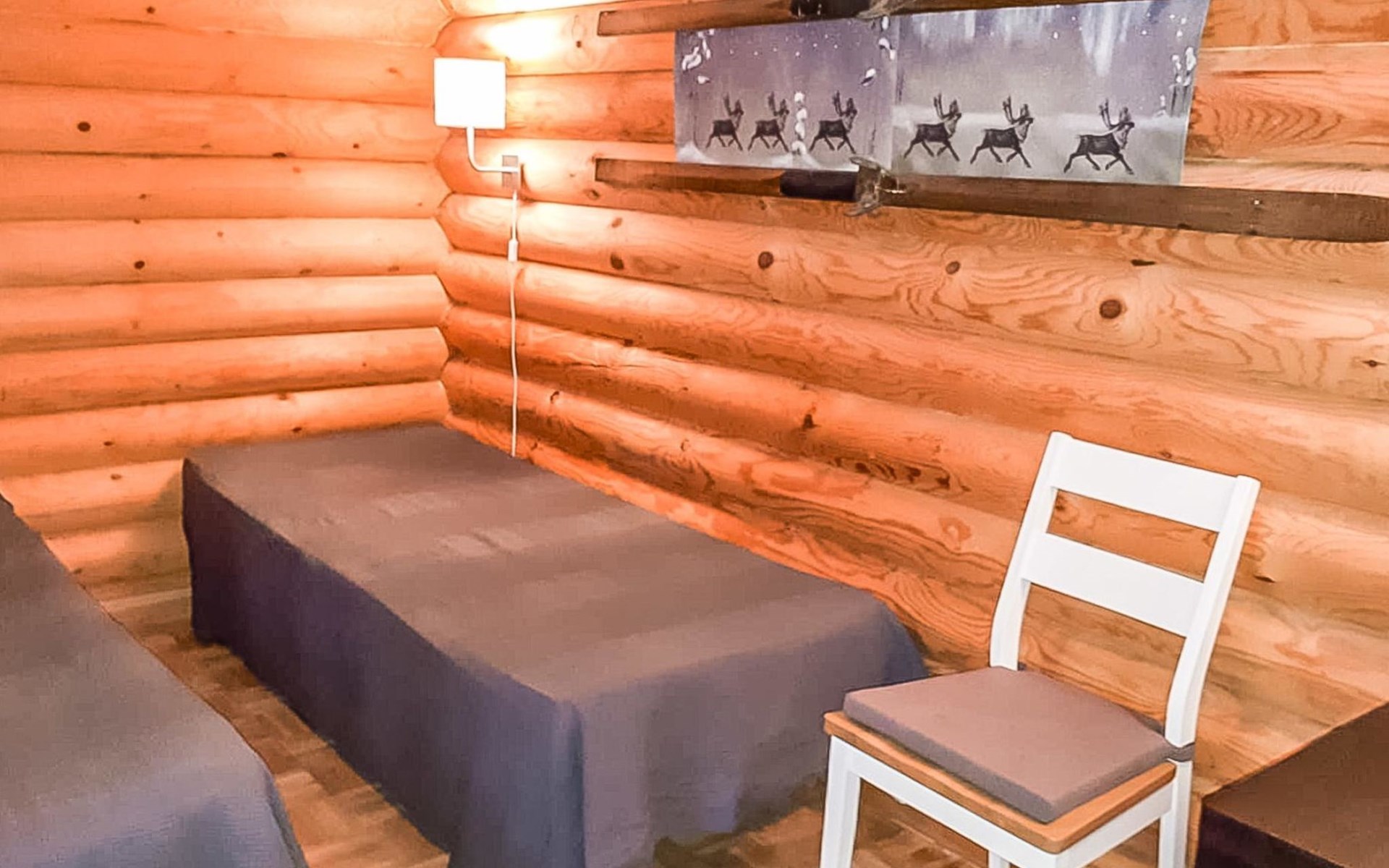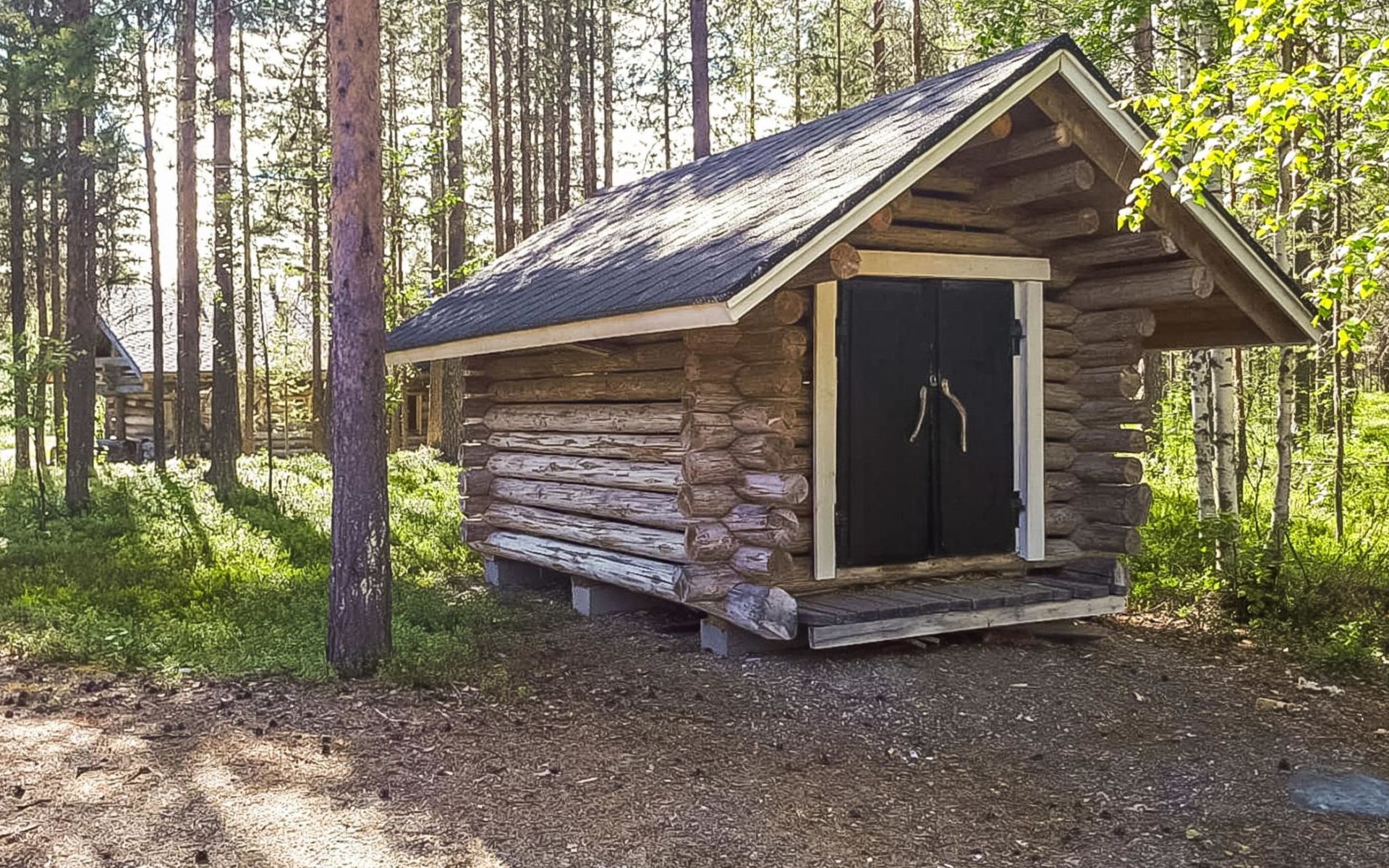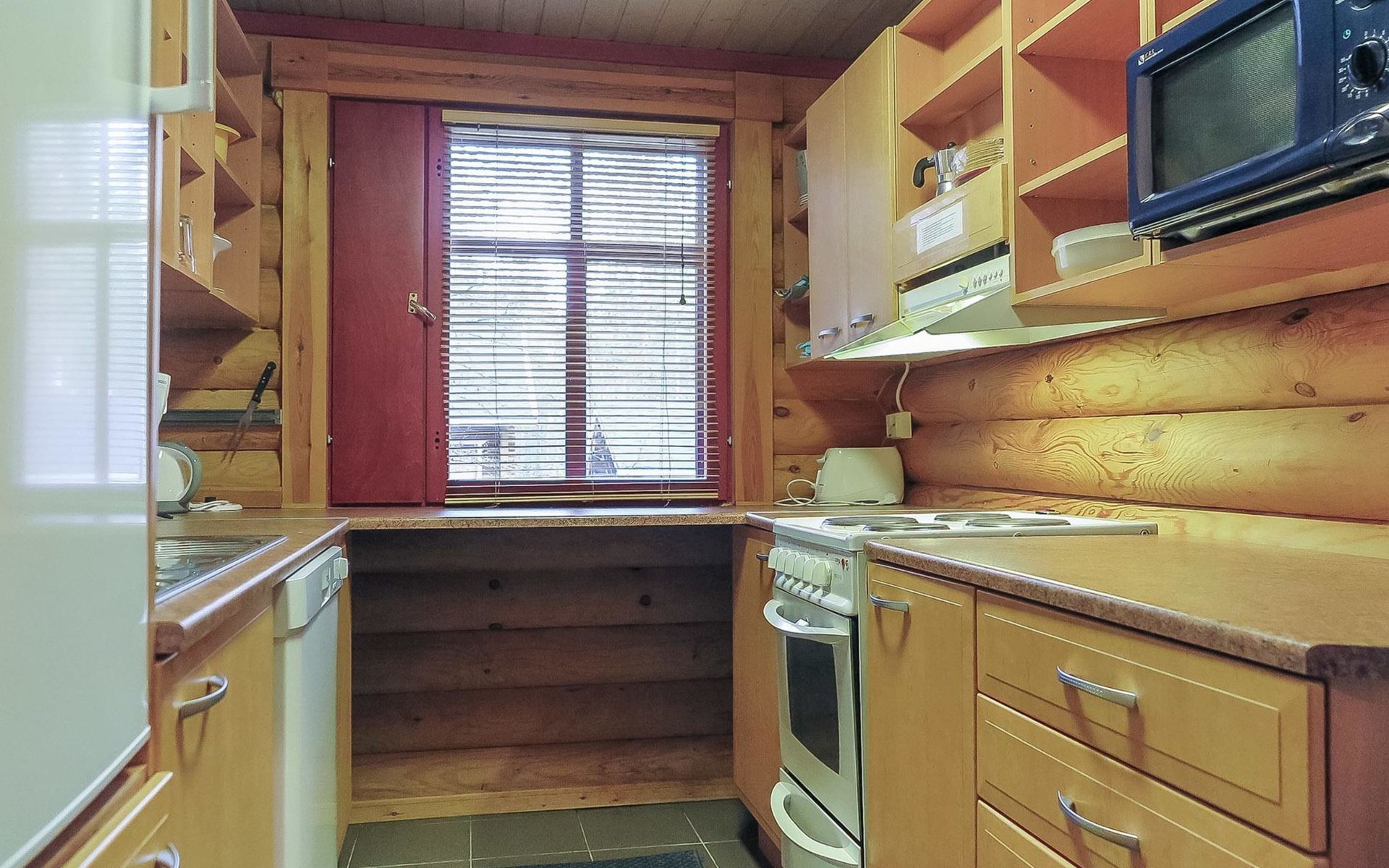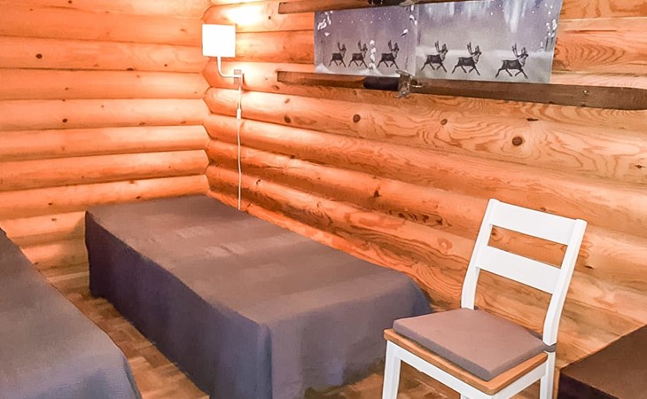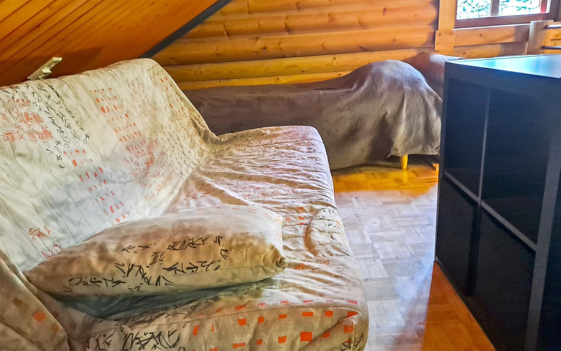 Apartment in log-built semi-detached house 2001, living room 2 extra beds, cooking recess, 2 bedrooms 2 beds in each, spacious sleeping loft with 4 beds, sauna, washroom, open porch, one toilet in downstairs and one in upstairs.