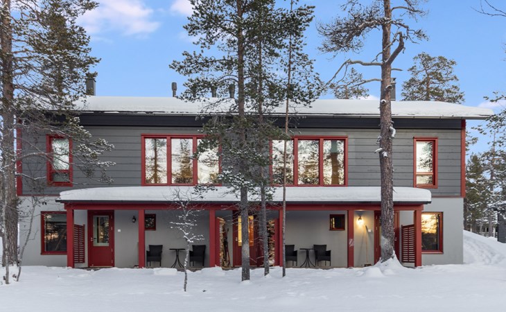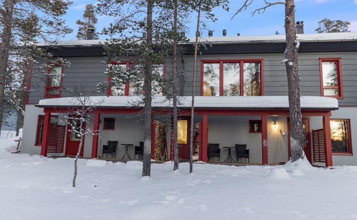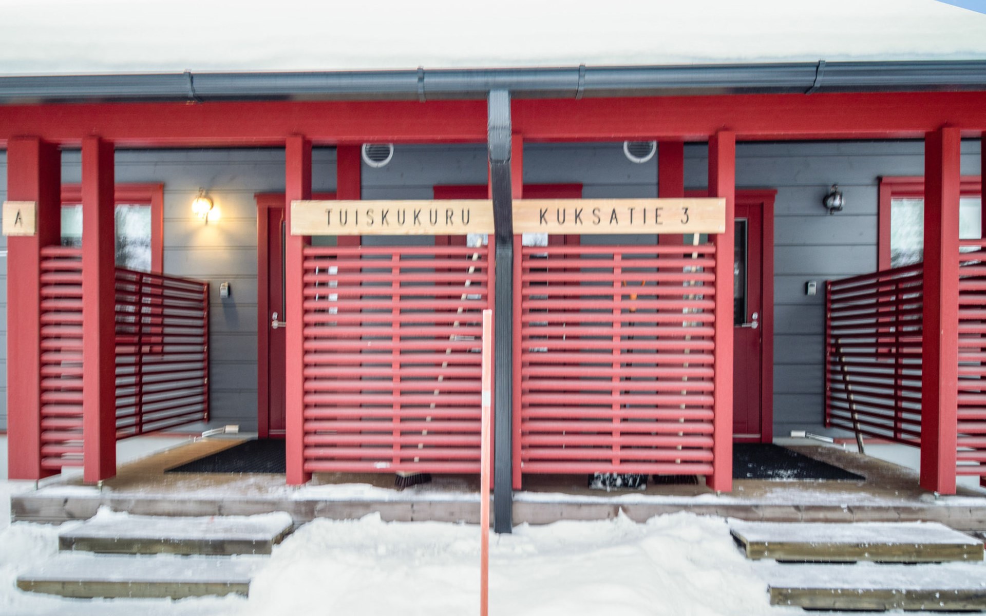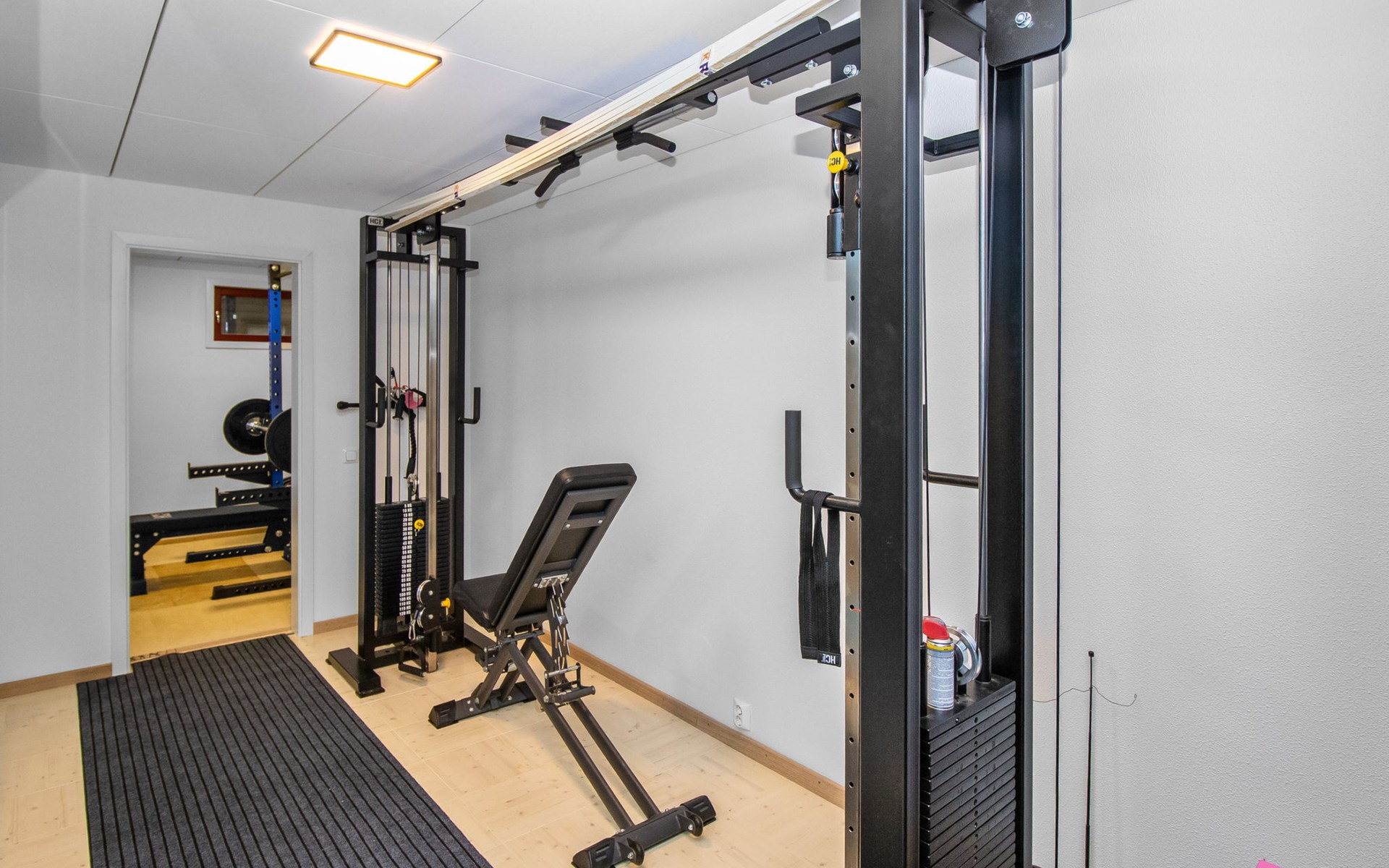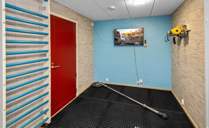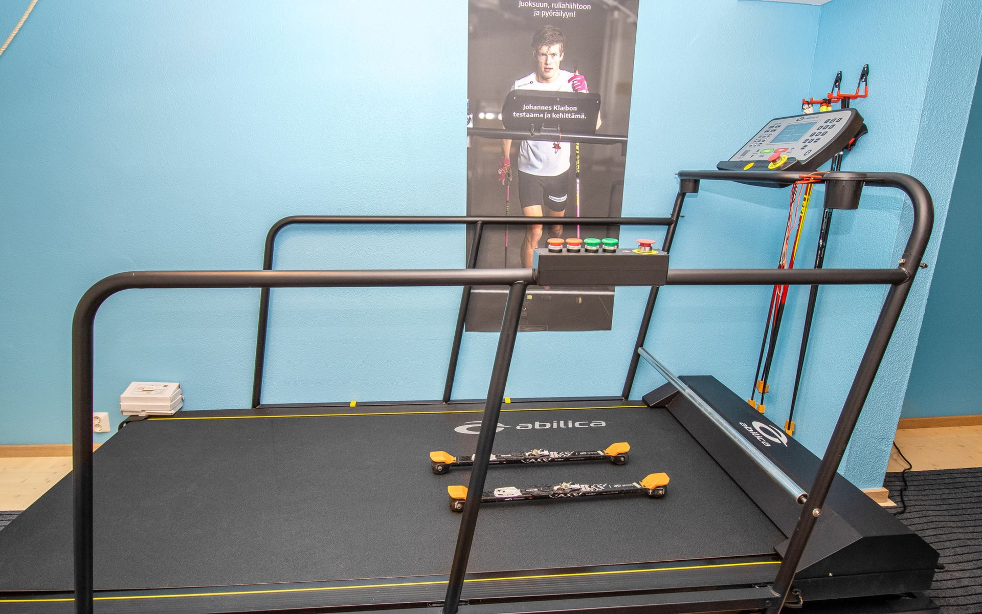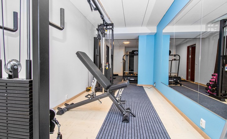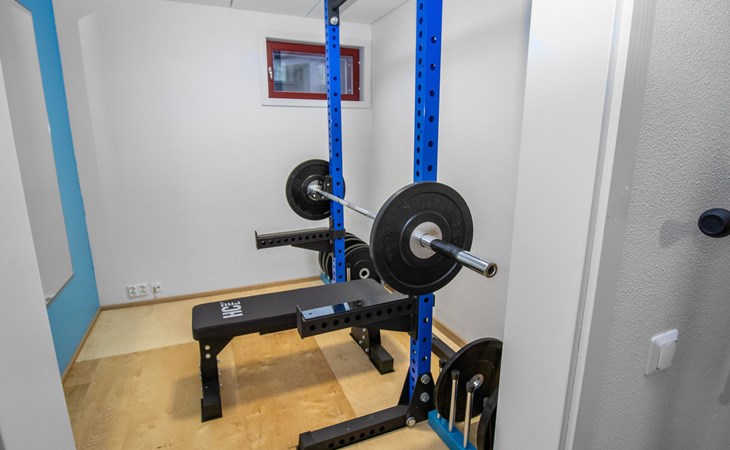 In addition, there is a well-equipped gym on the ground floor of the building, which can be used for an additional fee. The gym is shared by Tuiskukuru A and B. When booking, select the additional service "Other expenses." The price includes use of the gym for the entire duration of your stay. Open daily from 10 am to 8 pm. The rental price is €100 per stay per apartment. The gym also has a TV and its own toilet. The ski mat has safety harnesses, roller skis, and ski and walking poles available according to the user's height. All you need to bring are your own skiing shoes. NNN ski boots from Fischer or Rottefella , for example, are suitable for roller skis. There are walking and ski poles of various lengths for use on the mat. The use of regular ski poles is prohibited. The gym has a security camera.