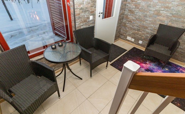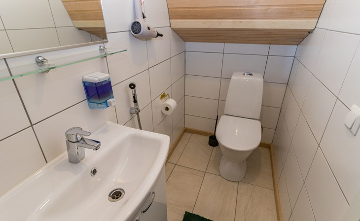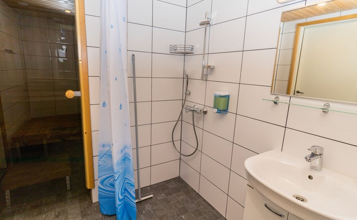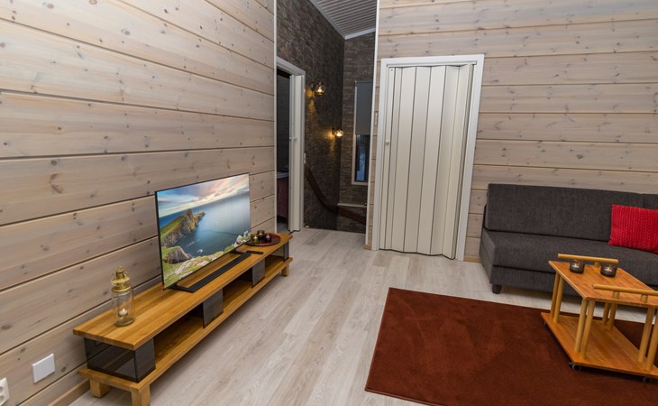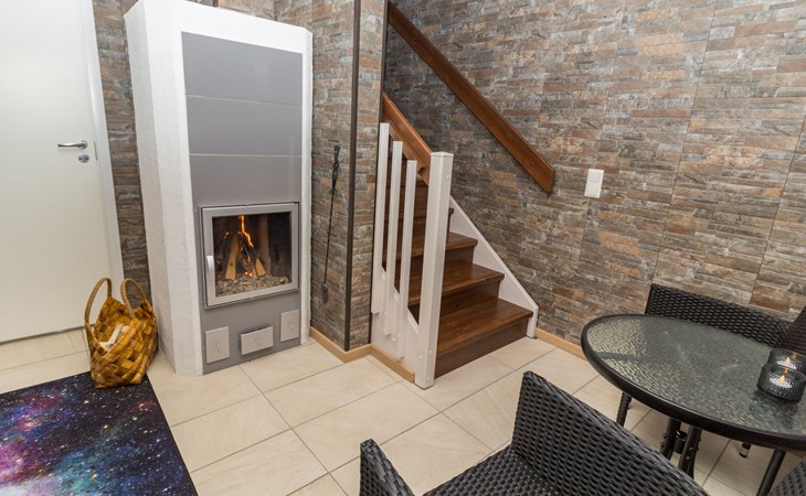 On the ground floor, you’ll find a sauna, a washroom, a fireplace room, and a WC. The sauna has access to a small terrace, perfect for cooling off and enjoying the fresh outdoor air. For added convenience, there is a second WC upstairs to make your holiday even more comfortable.