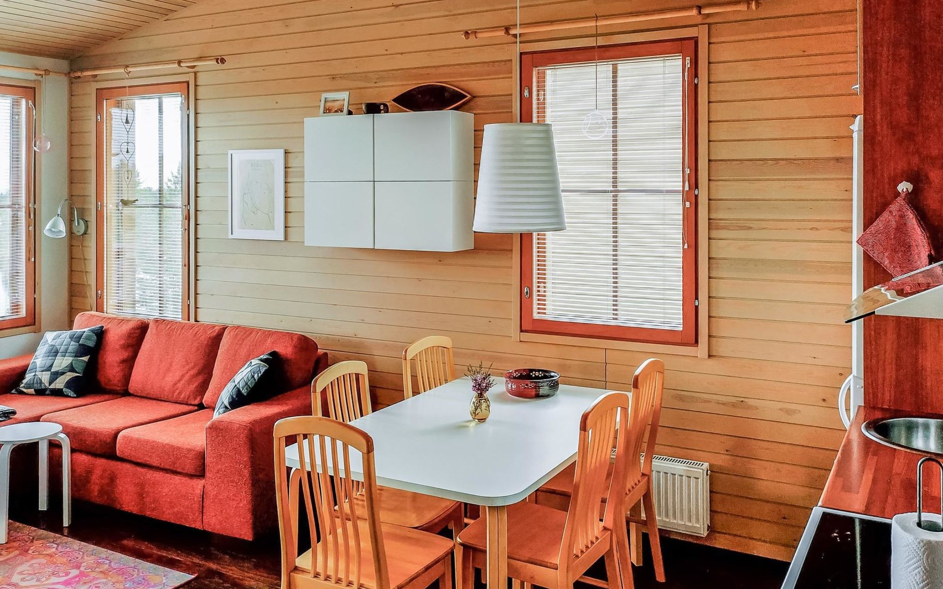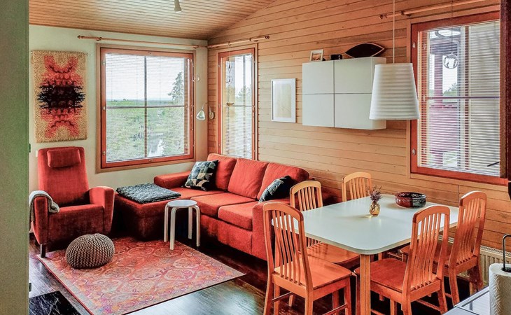 Apartment in upstairs, built in 2007, bedroom 1: double bed, bedroom 2: bunk bed (lower bed 120 cm and upper bed 80 cm), living room/kitchen, electric sauna.