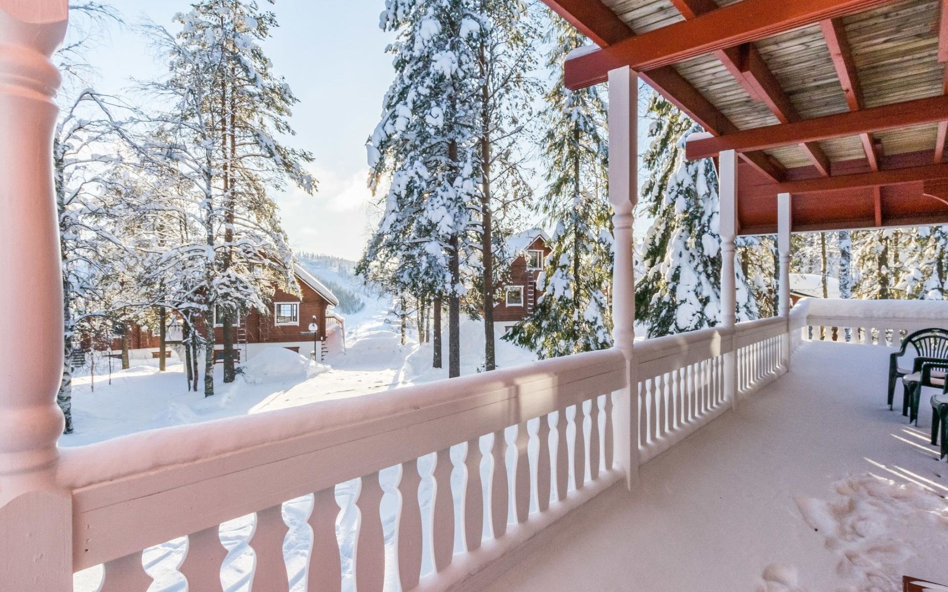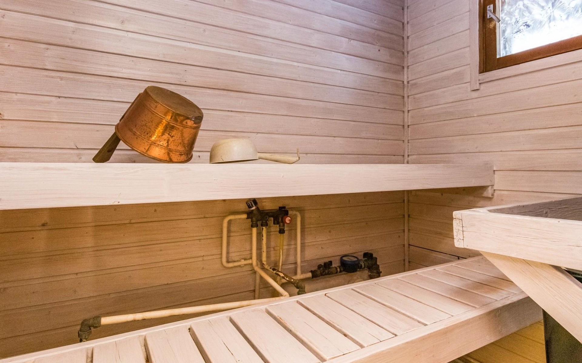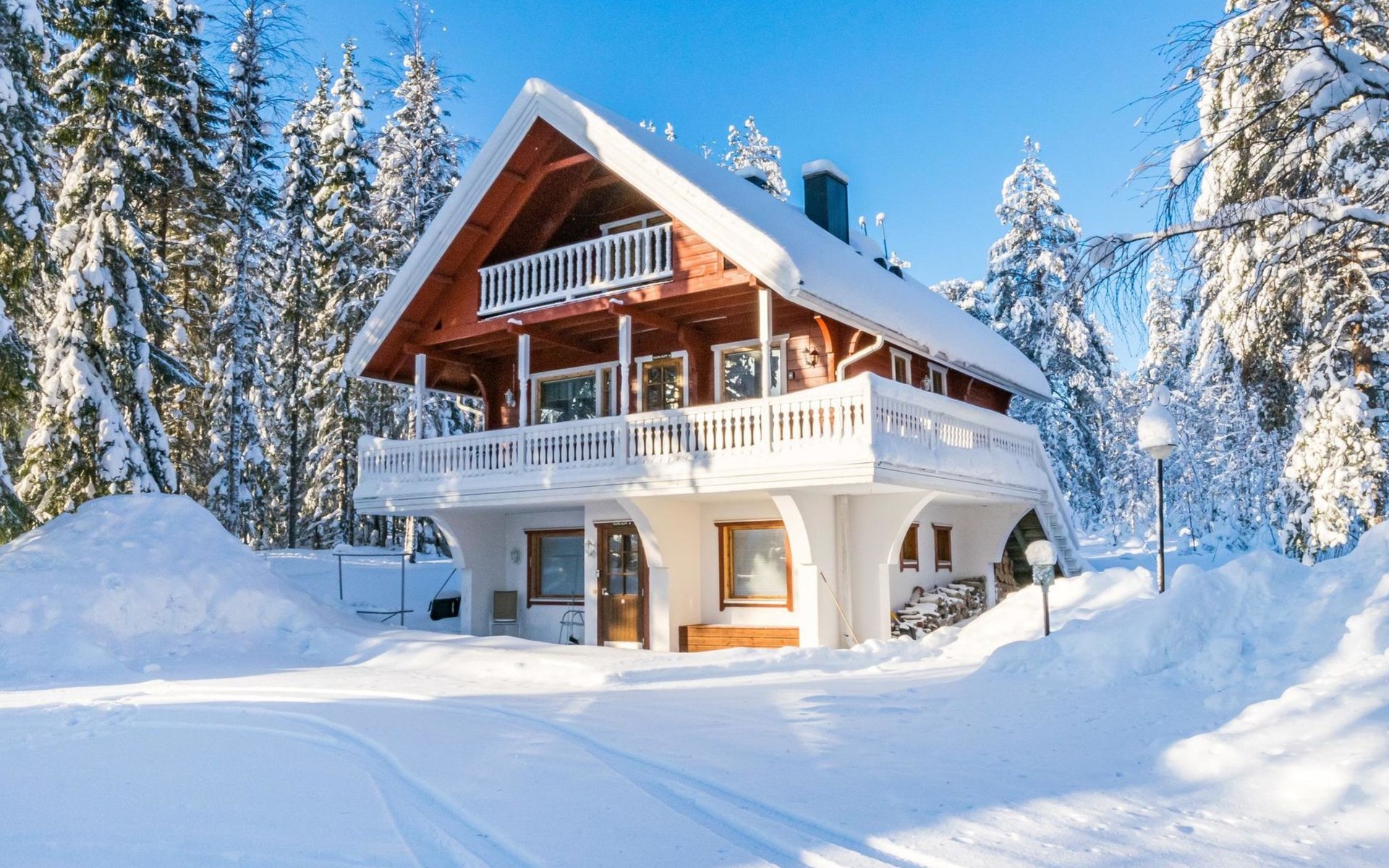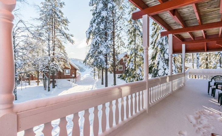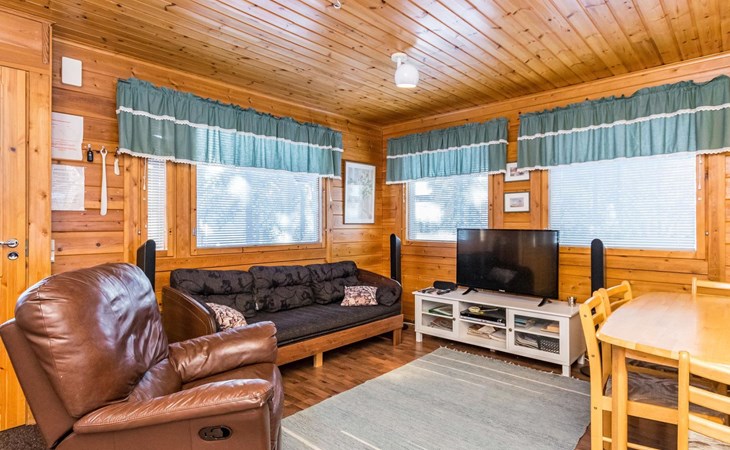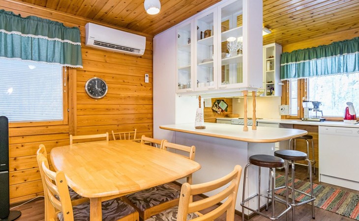 Kitchen, sleeping corner including a bunk bed, loft lobby, sauna, shower room/toilet, balcony, terrace, fireplace.