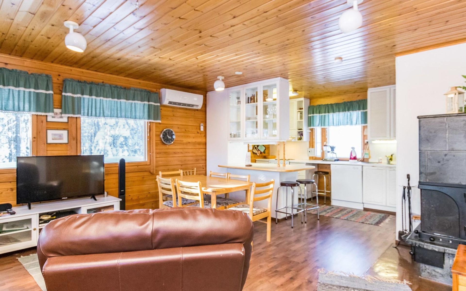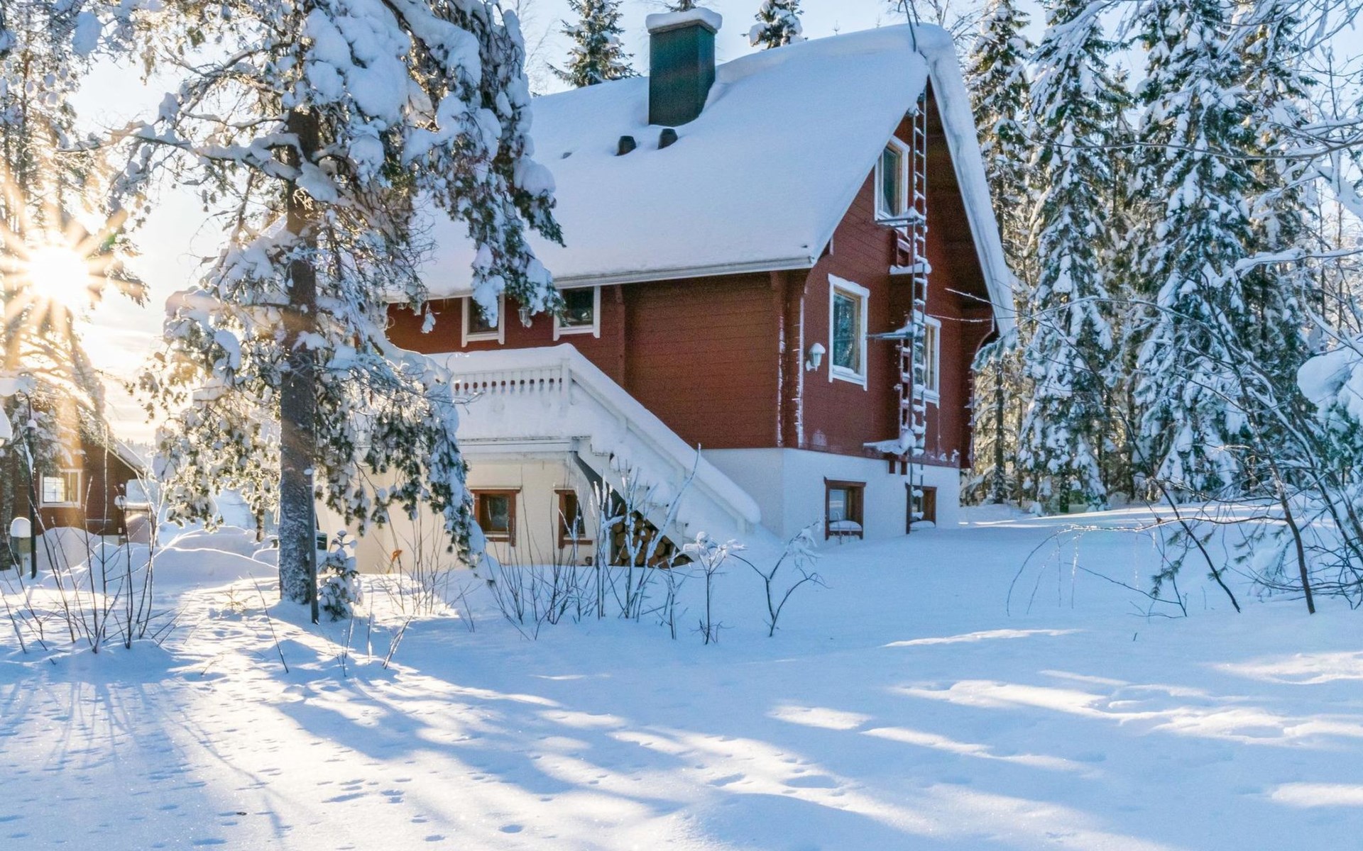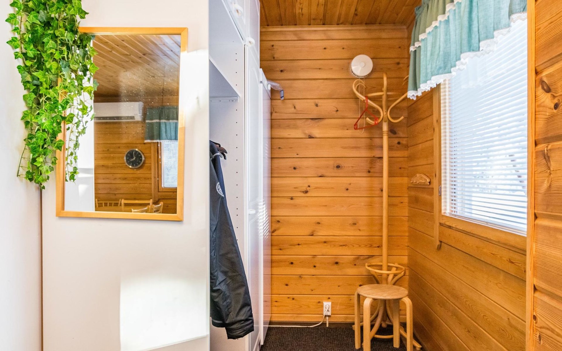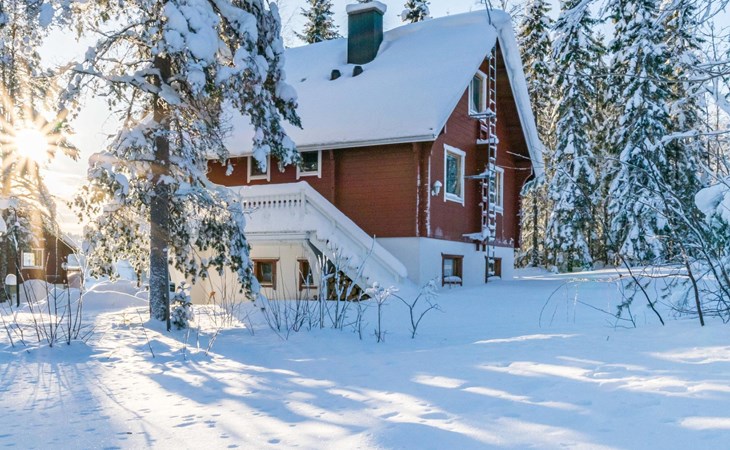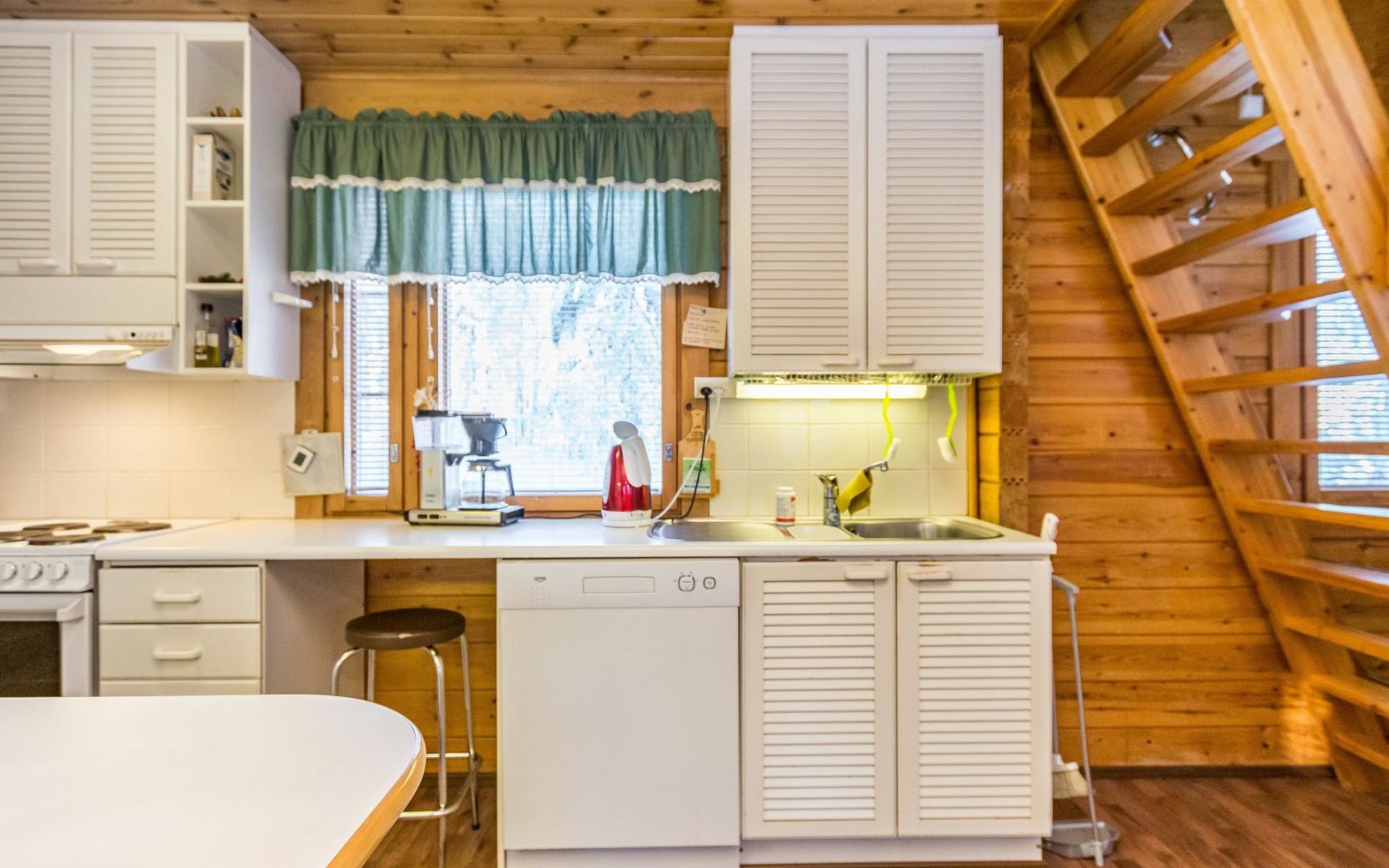 Kitchen, sleeping corner including a bunk bed, loft lobby, sauna, shower room/toilet, balcony, terrace, fireplace.