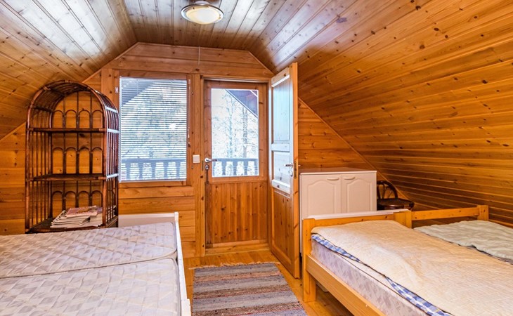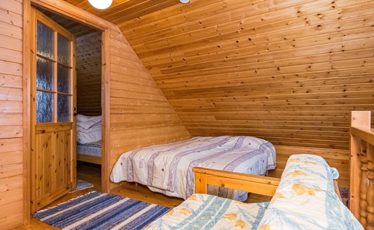 A double bed, 4 beds and 2 mattresses on the loft, a sofa-bed in the living room.