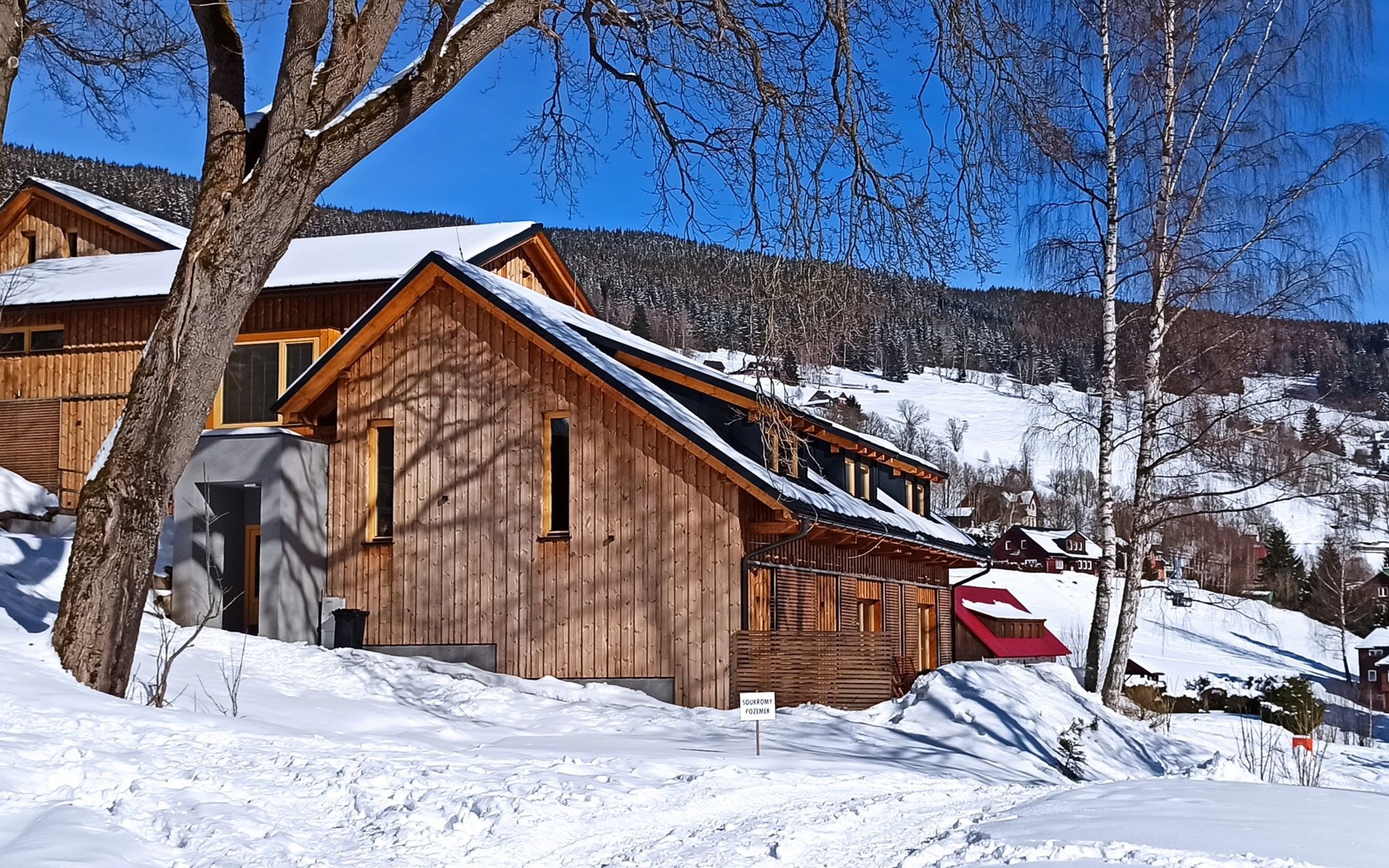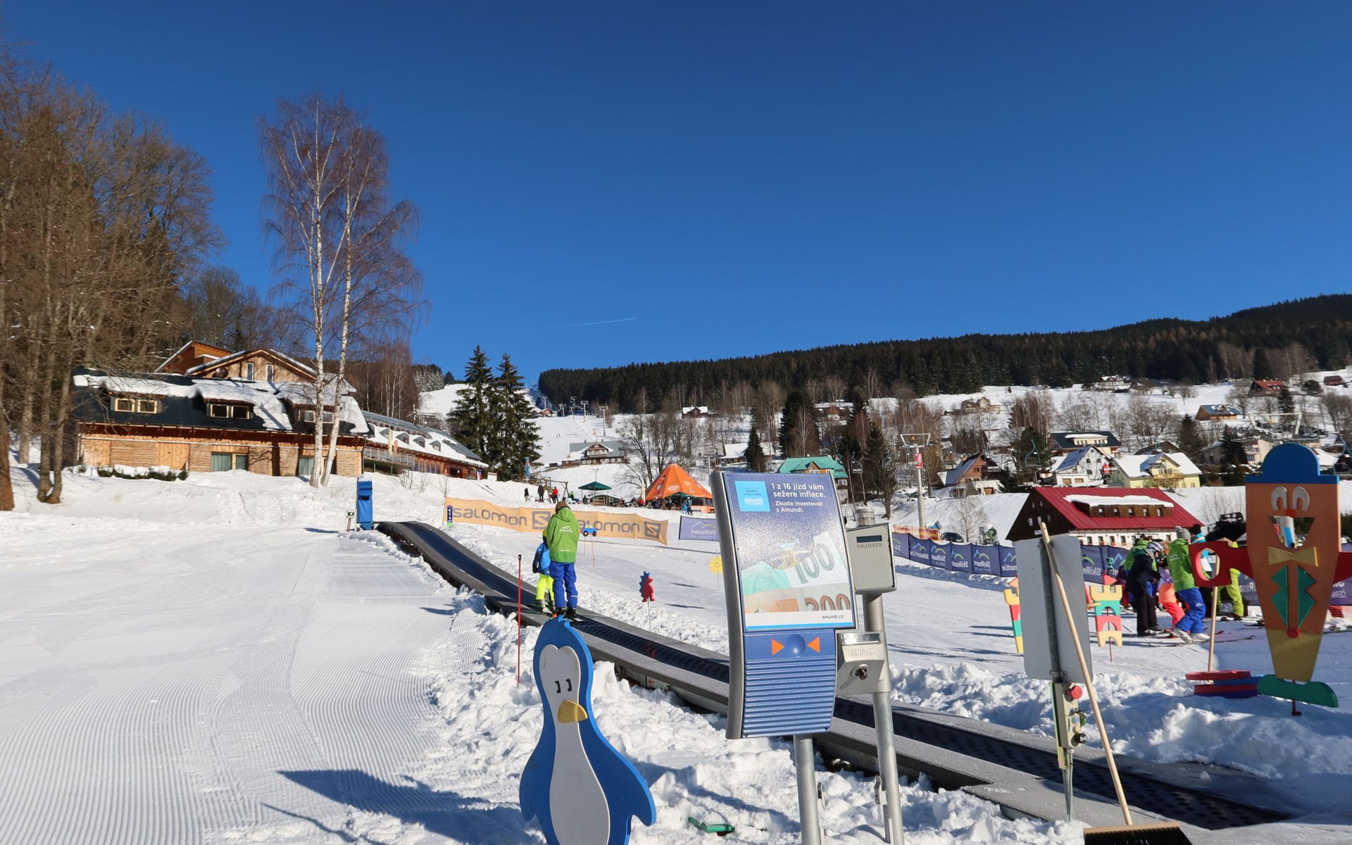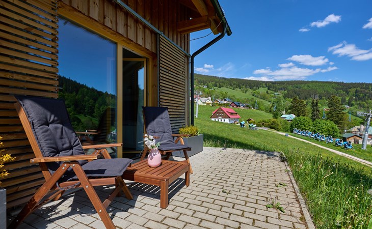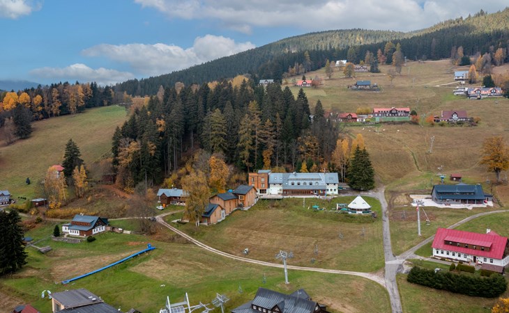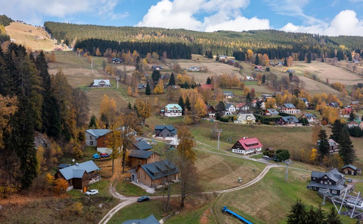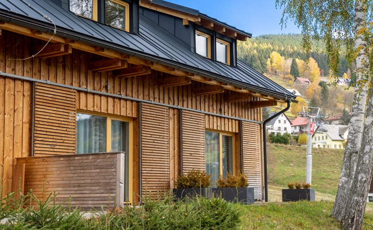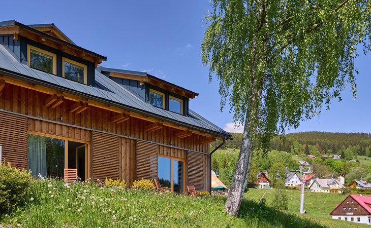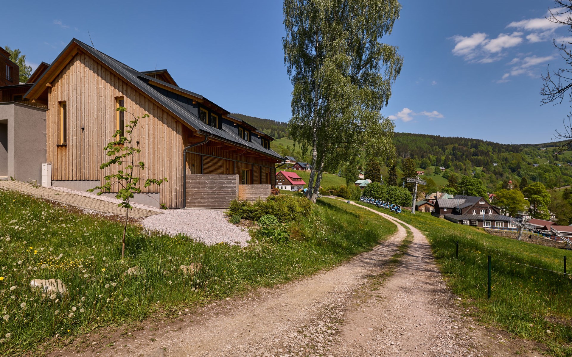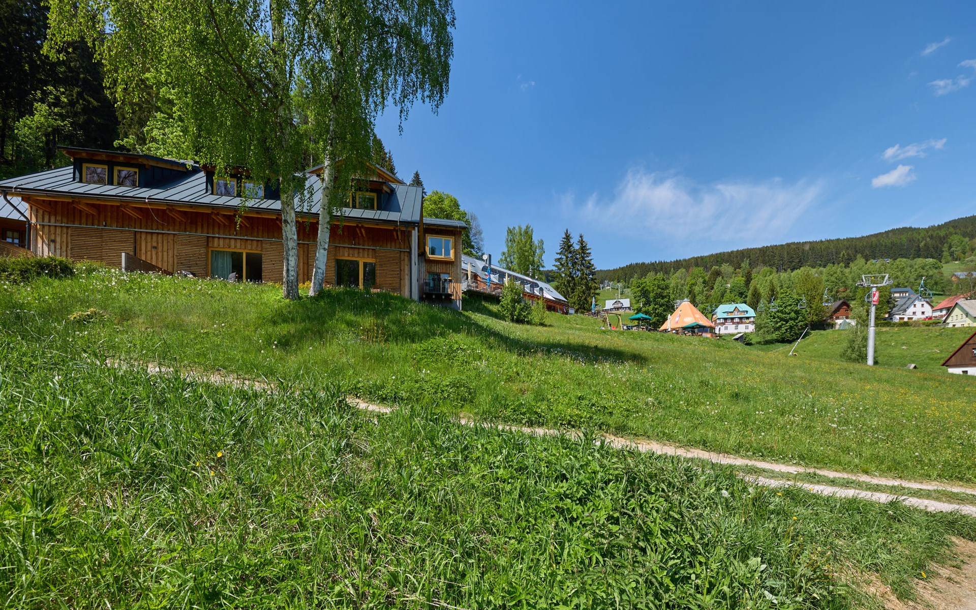 Child friendly, comfortable chalet "Portášky, Velká Úpa", 2 storeys. 3 apartments in the property. In the district of Velká Úpa 2 km from the centre of Pec pod Sněžkou, 12 km from the centre of Janské Lázně, 20 km from the centre of Trutnov, in a secluded, sunny, elevated position, directly by the skiing area. Breakfast on request (extra). Parking (in winter extra). Grocery 50 m, restaurant 100 m, bus stop "Pec pod Sněžkou, dopr. Terminál" 400 m. Golf course (18 hole) 15 km, tennis 2 km, ski lift, chair lift, slopes 10 m, ski rental, ski bus stop, ski school, children's ski school 100 m, children's playground 600 m. Nearby attractions: Bobová dráha/Relaxpark Pec pod Sněžkou 3 km, Sněžka (1603 m) 6 km, Mladé Buky 12 km, Kowary 26 km, Aquapark Vrchlabí 29 km, Park miniatur Mysłakowice, Karpacz 34 km, Adršpašsko-teplické skály 40 km, Jelenia Góra, Zoo Dvůr Králové, Kuks 45 km. Well-known ski regions can easily be reached: Portášky 10 m, Černá hora-Pec pod Sněžkou 3 km, Černá Hora-Janské Lázně 12 km. Well-known lakes can easily be reached: Dolce 25 km. Hiking paths: Krkonošský národní park. Please note: In case of good snow conditions, the house is accessible on skis. The apartments are adjacent to the pension Modřín with all services: wellness, restaurant (extra) - available only in high season. Parking in the winter season in guarded parking lots (150 m, extra). Baggage transport by roller (extra).