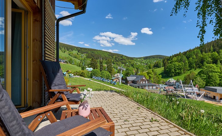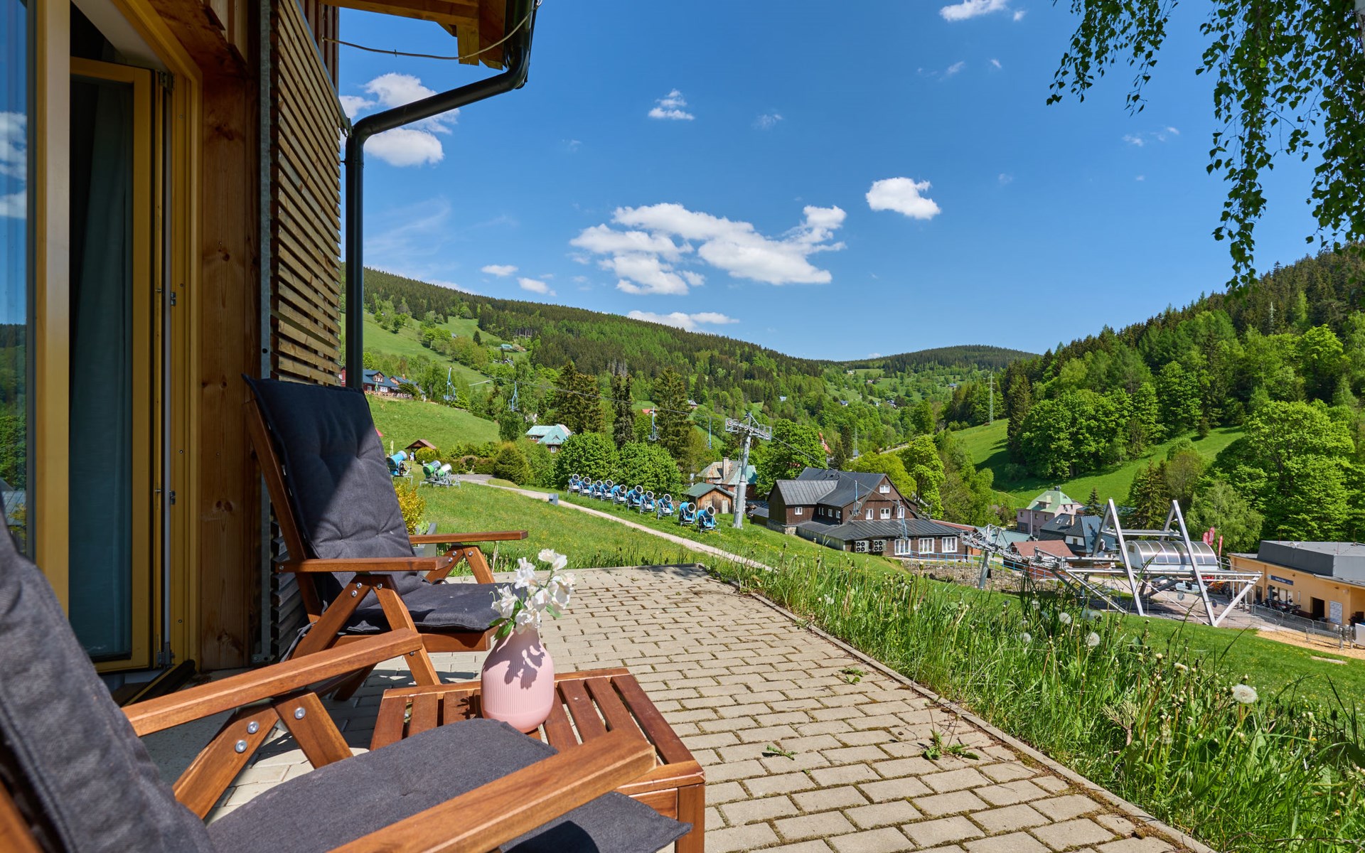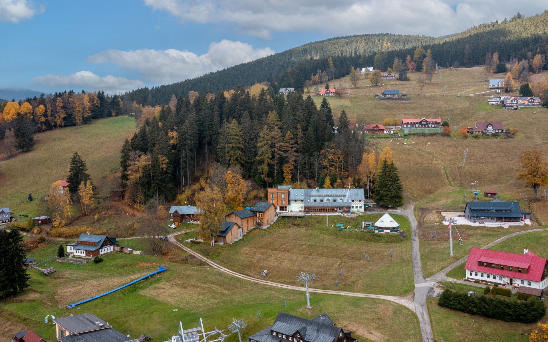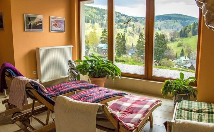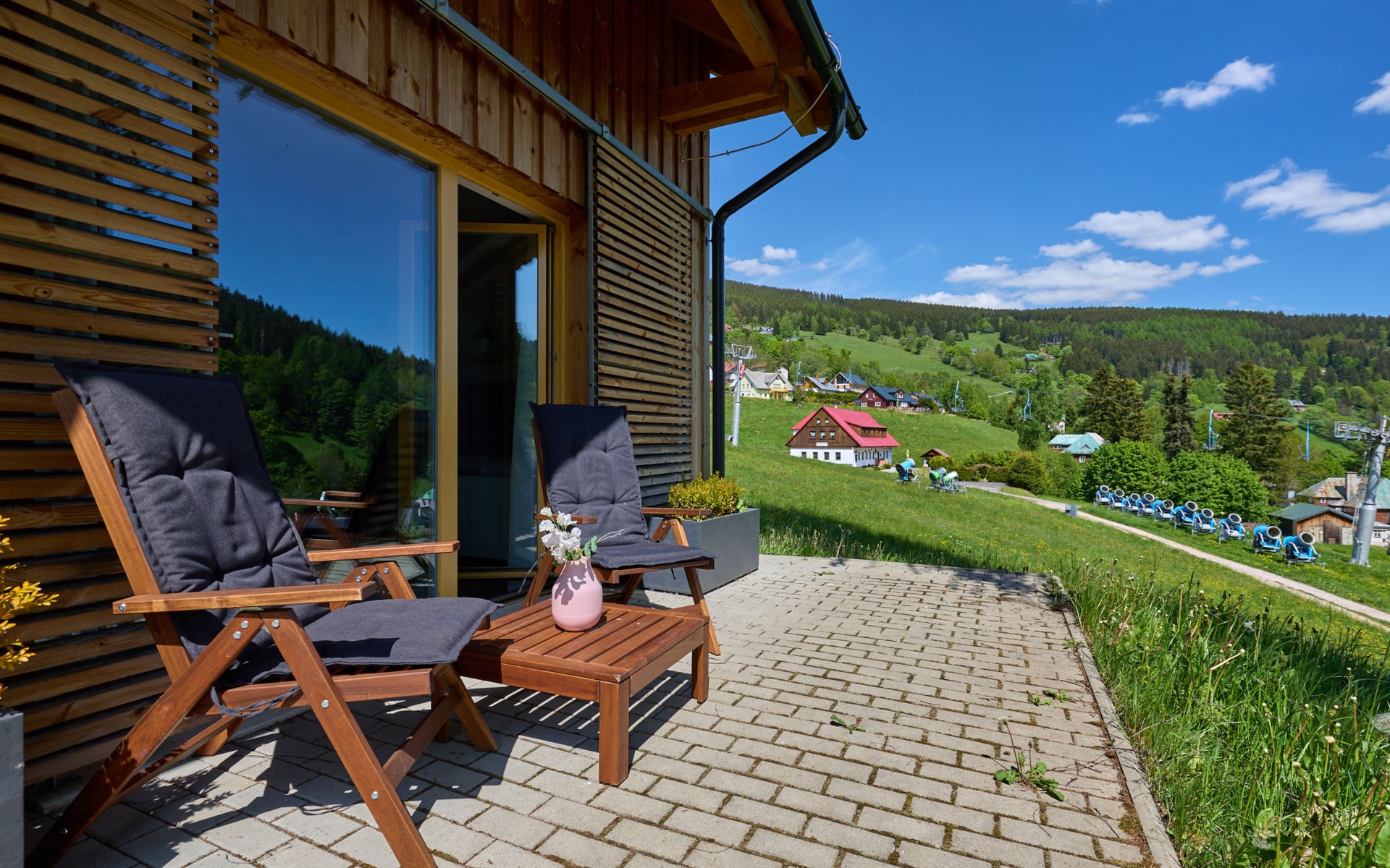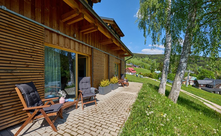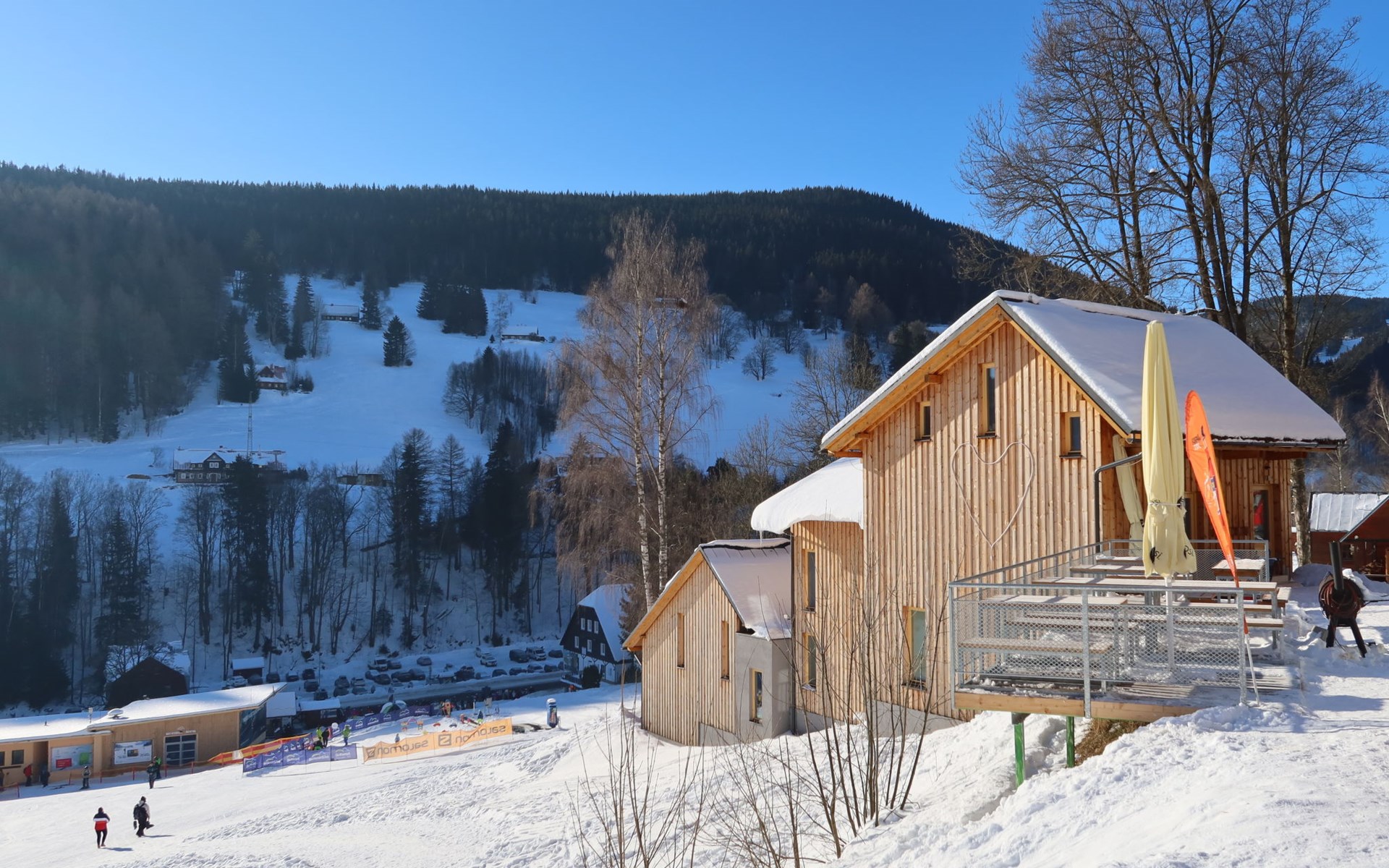 Child friendly, comfortable chalet "Portášky, Velká Úpa", 2 storeys. 3 apartments in the property. In the district of Velká Úpa 2 km from the centre of Pec pod Sněžkou, 12 km from the centre of Janské Lázně, 20 km from the centre of Trutnov, in a secluded, sunny, elevated position, directly by the skiing area. Breakfast on request (extra). Parking (in winter extra). Grocery 50 m, restaurant 100 m, bus stop "Pec pod Sněžkou, dopr. Terminál" 400 m. Golf course (18 hole) 15 km, tennis 2 km, ski lift, chair lift, slopes 10 m, ski rental, ski bus stop, ski school, children's ski school 100 m, children's playground 600 m. Nearby attractions: Bobová dráha/Relaxpark Pec pod Sněžkou 3 km, Sněžka (1603 m) 6 km, Mladé Buky 12 km, Kowary 26 km, Aquapark Vrchlabí 29 km, Park miniatur Mysłakowice, Karpacz 34 km, Adršpašsko-teplické skály 40 km, Jelenia Góra, Zoo Dvůr Králové, Kuks 45 km. Well-known ski regions can easily be reached: Portášky 10 m, Černá hora-Pec pod Sněžkou 3 km, Černá Hora-Janské Lázně 12 km. Well-known lakes can easily be reached: Dolce 25 km. Hiking paths: Krkonošský národní park. Please note: In case of good snow conditions, the house is accessible on skis. The apartments are adjacent to the pension Modřín with all services: wellness, restaurant (extra) - available only in high season. Parking in the winter season in guarded parking lots (150 m, extra). Baggage transport by roller (extra).