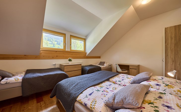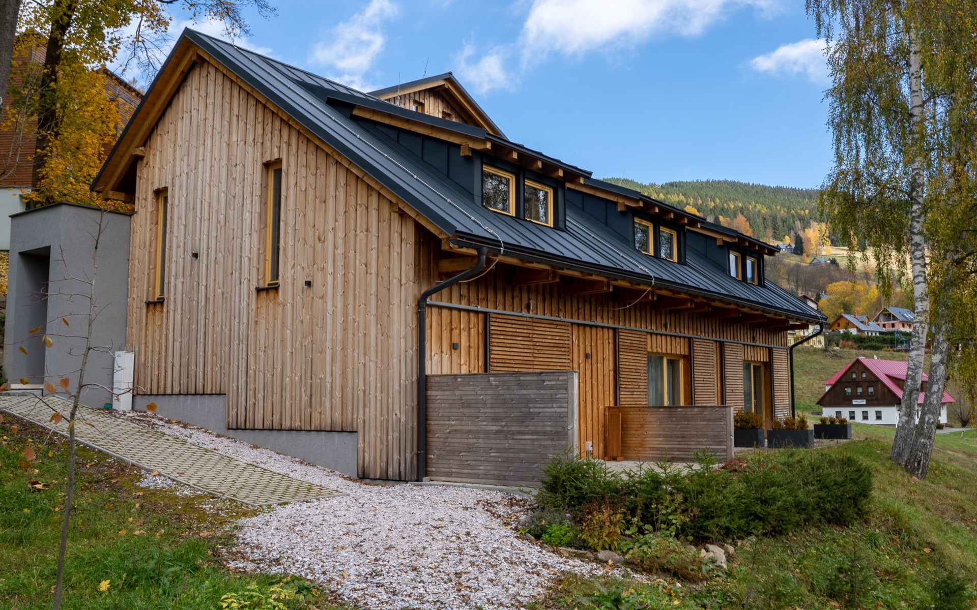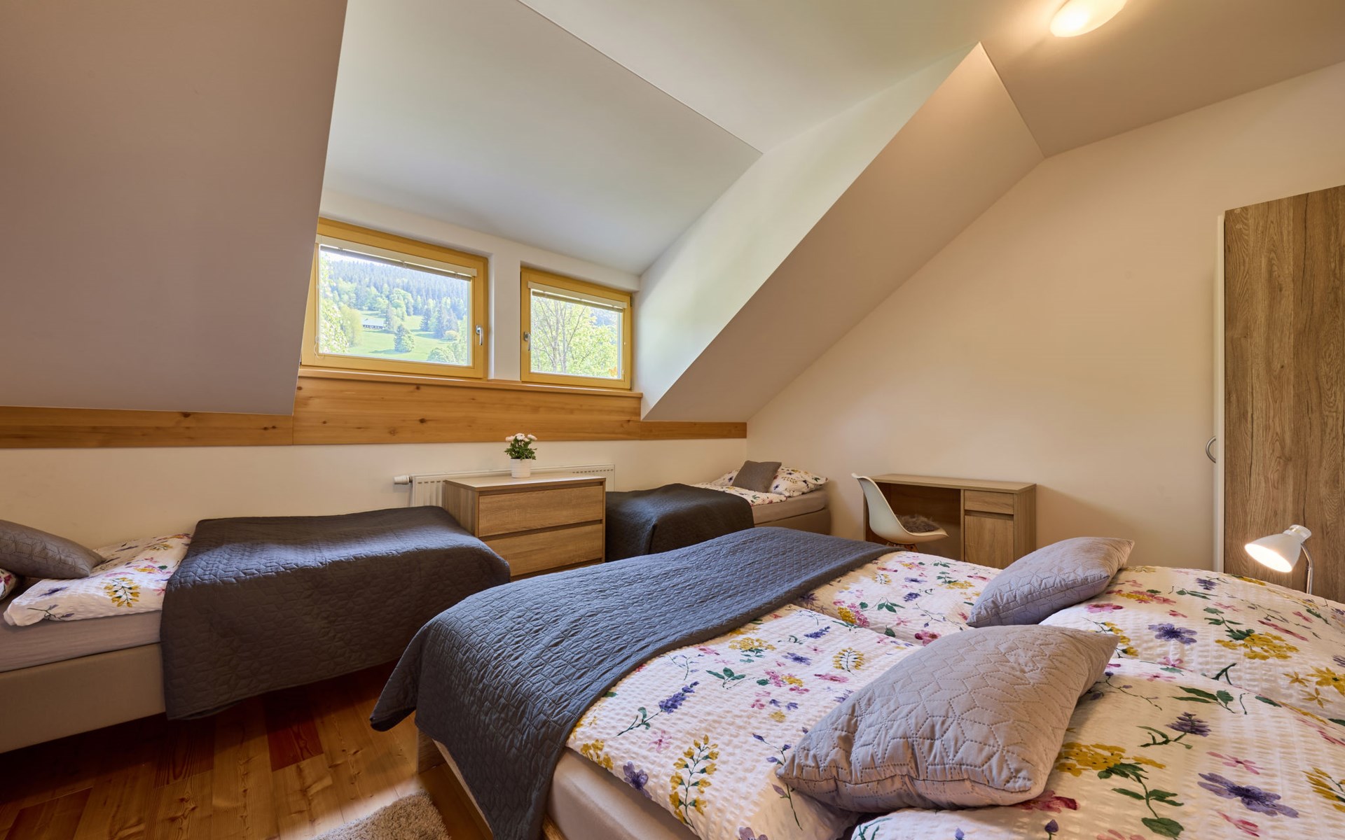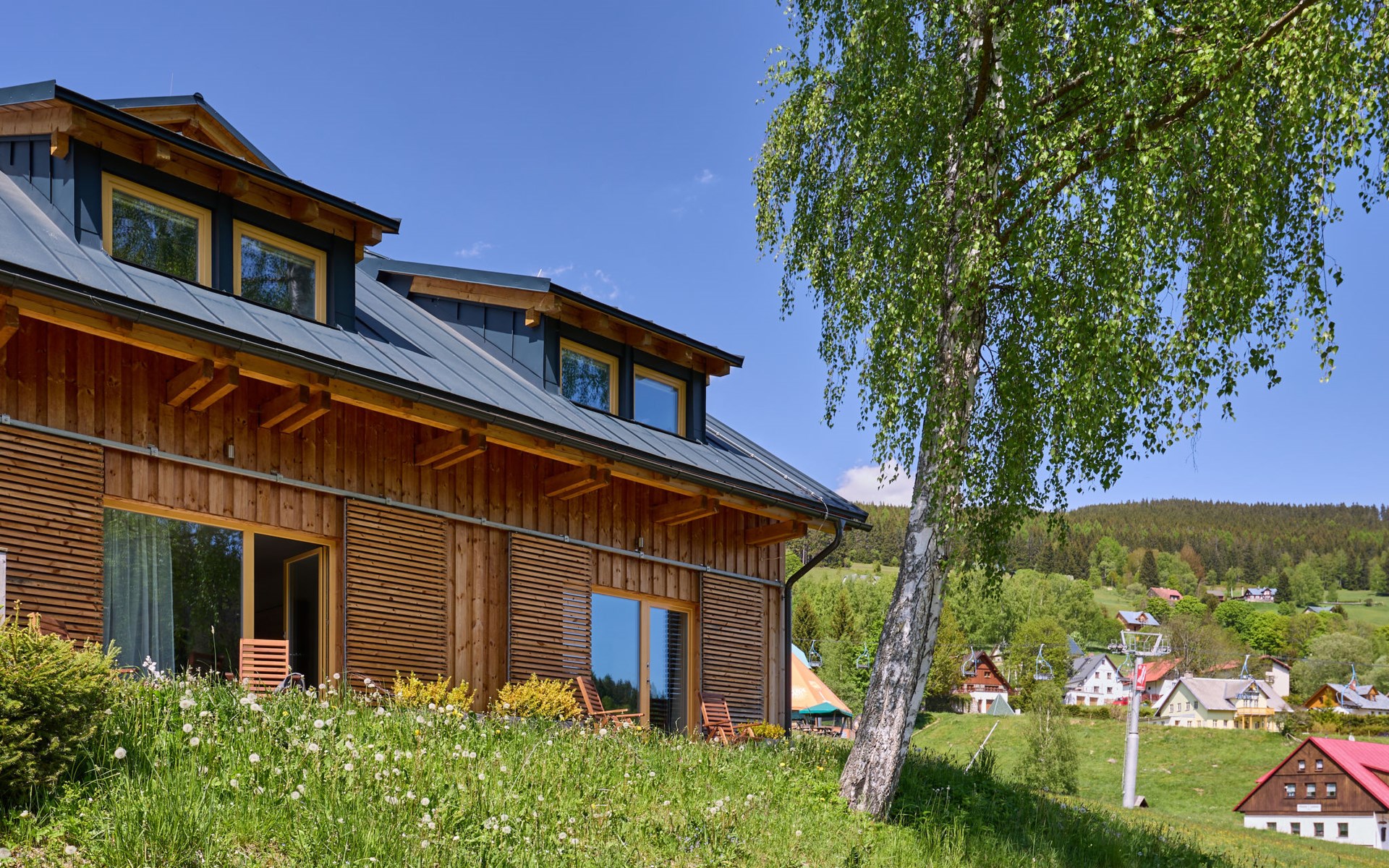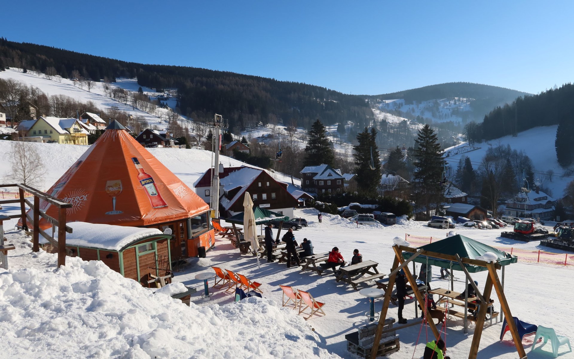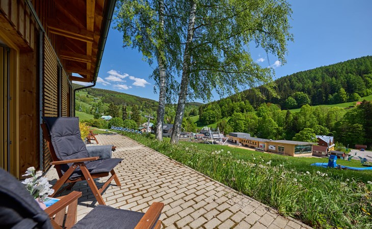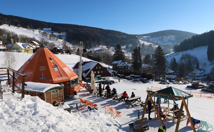 Child friendly, comfortable chalet "Portášky, Velká Úpa", 2 storeys. 3 apartments in the property. In the district of Velká Úpa 2 km from the centre of Pec pod Sněžkou, 12 km from the centre of Janské Lázně, 20 km from the centre of Trutnov, in a secluded, sunny, elevated position, directly by the skiing area. Breakfast on request (extra). Parking (in winter extra). Grocery 50 m, restaurant 100 m, bus stop "Pec pod Sněžkou, dopr. Terminál" 400 m. Golf course (18 hole) 15 km, tennis 2 km, ski lift, chair lift, slopes 10 m, ski rental, ski bus stop, ski school, children's ski school 100 m, children's playground 600 m. Nearby attractions: Bobová dráha/Relaxpark Pec pod Sněžkou 3 km, Sněžka (1603 m) 6 km, Mladé Buky 12 km, Kowary 26 km, Aquapark Vrchlabí 29 km, Park miniatur Mysłakowice, Karpacz 34 km, Adršpašsko-teplické skály 40 km, Jelenia Góra, Zoo Dvůr Králové, Kuks 45 km. Well-known ski regions can easily be reached: Portášky 10 m, Černá hora-Pec pod Sněžkou 3 km, Černá Hora-Janské Lázně 12 km. Well-known lakes can easily be reached: Dolce 25 km. Hiking paths: Krkonošský národní park. Please note: In case of good snow conditions, the house is accessible on skis. The apartments are adjacent to the pension Modřín with all services: wellness, restaurant (extra) - available only in high season. Parking in the winter season in guarded parking lots (150 m, extra). Baggage transport by roller (extra).