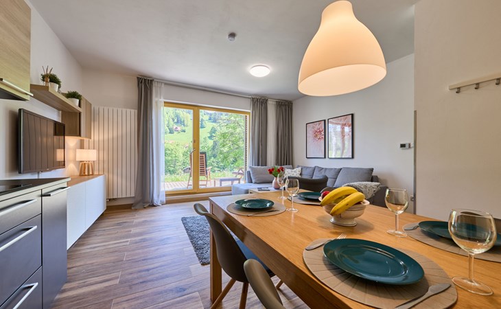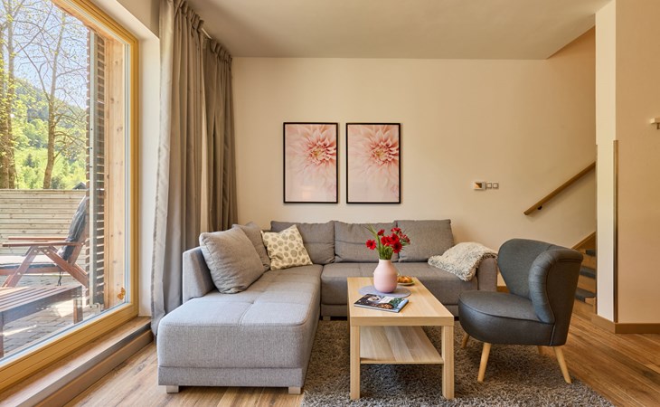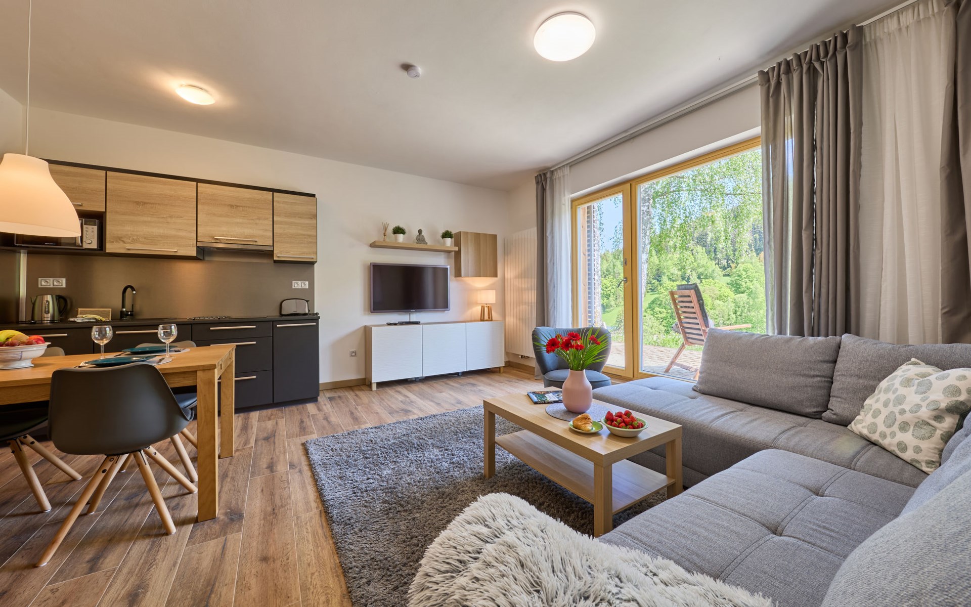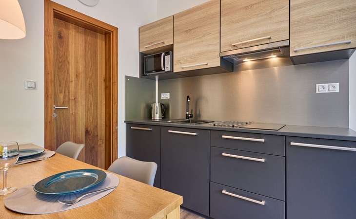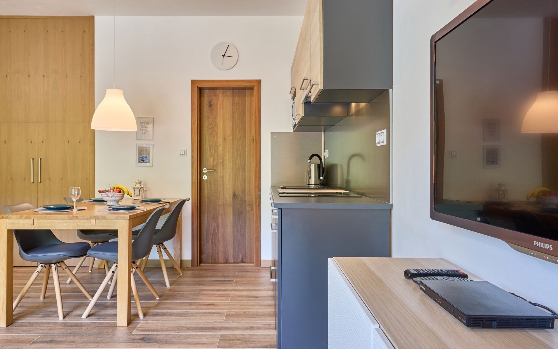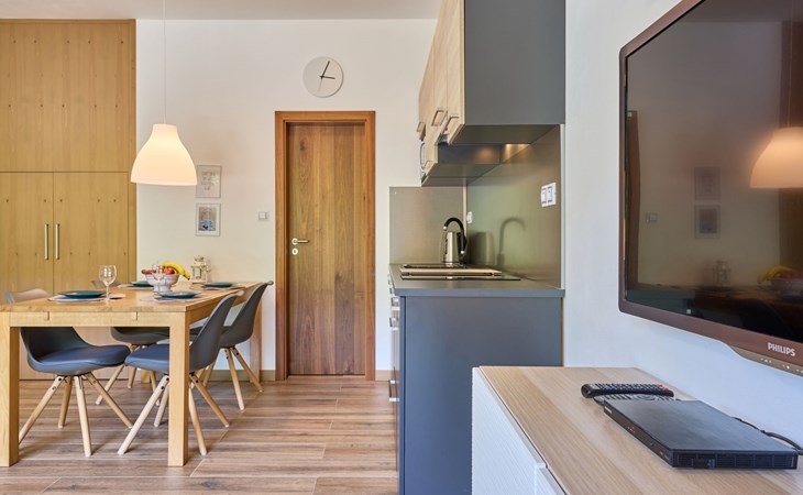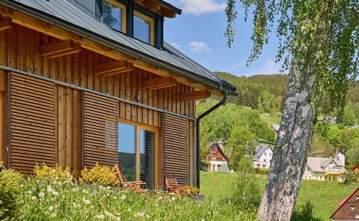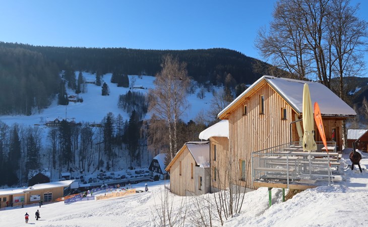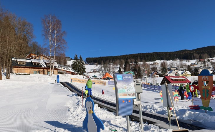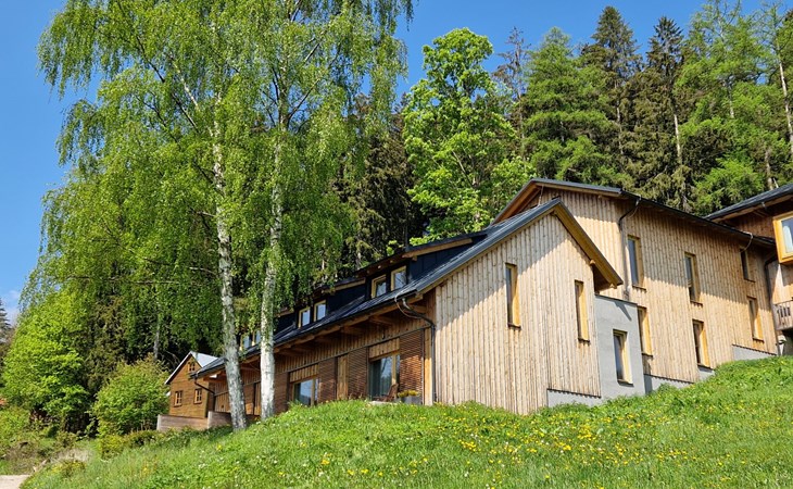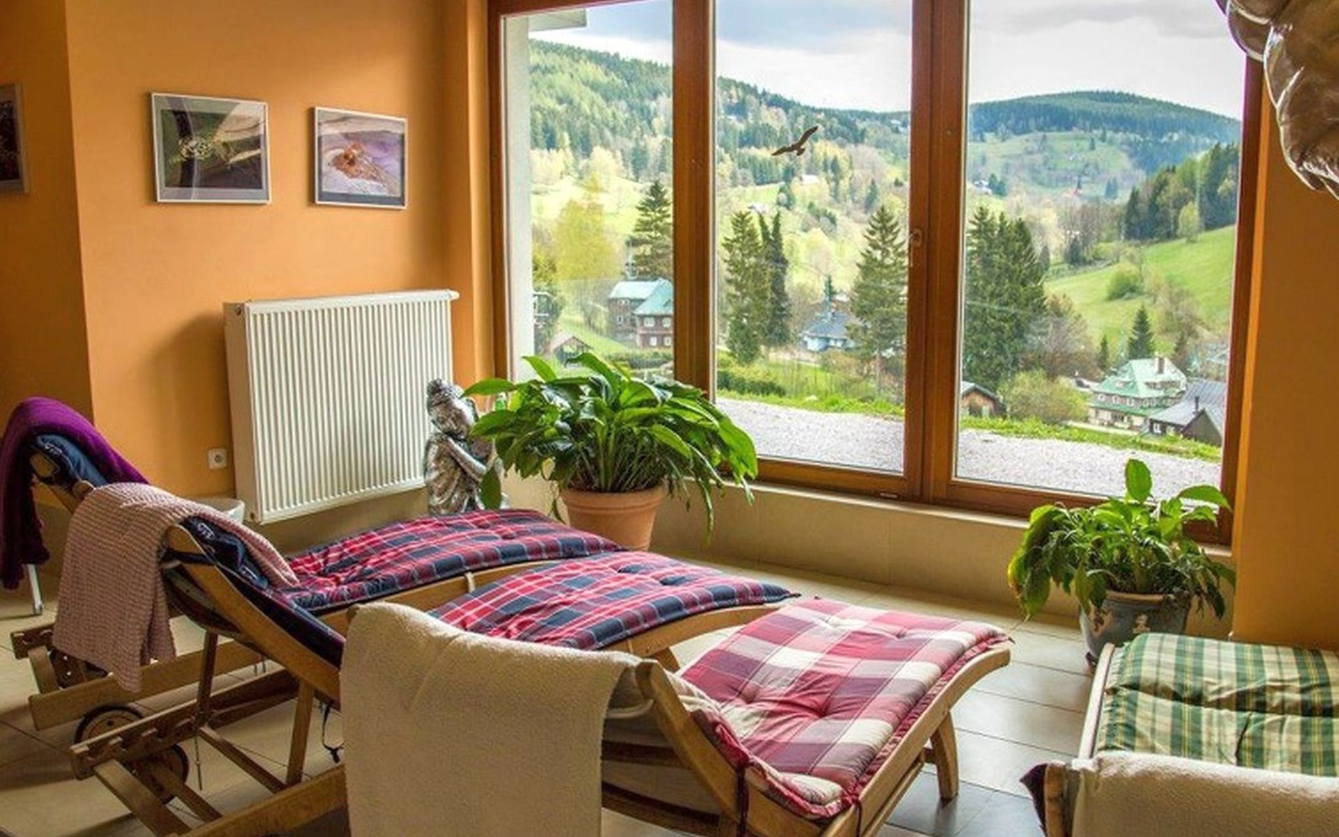Child friendly, comfortable chalet "Portášky, Velká Úpa", 2 storeys. 3 apartments in the property. In the district of Velká Úpa 2 km from the centre of Pec pod Sněžkou, 12 km from the centre of Janské Lázně, 20 km from the centre of Trutnov, in a secluded, sunny, elevated position, directly by the skiing area. Breakfast on request (extra). Parking (in winter extra). Grocery 50 m, restaurant 100 m, bus stop "Pec pod Sněžkou, dopr. Terminál" 400 m. Golf course (18 hole) 15 km, tennis 2 km, ski lift, chair lift, slopes 10 m, ski rental, ski bus stop, ski school, children's ski school 100 m, children's playground 600 m. Nearby attractions: Bobová dráha/Relaxpark Pec pod Sněžkou 3 km, Sněžka (1603 m) 6 km, Mladé Buky 12 km, Kowary 26 km, Aquapark Vrchlabí 29 km, Park miniatur Mysłakowice, Karpacz 34 km, Adršpašsko-teplické skály 40 km, Jelenia Góra, Zoo Dvůr Králové, Kuks 45 km. Well-known ski regions can easily be reached: Portášky 10 m, Černá hora-Pec pod Sněžkou 3 km, Černá Hora-Janské Lázně 12 km. Well-known lakes can easily be reached: Dolce 25 km. Hiking paths: Krkonošský národní park. Please note: In case of good snow conditions, the house is accessible on skis. The apartments are adjacent to the pension Modřín with all services: wellness, restaurant (extra) - available only in high season. Parking in the winter season in guarded parking lots (150 m, extra). Baggage transport by roller (extra).
