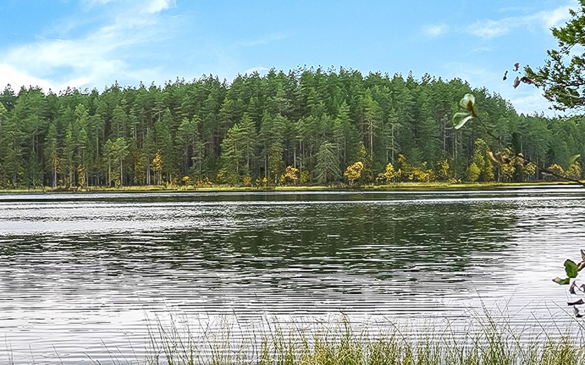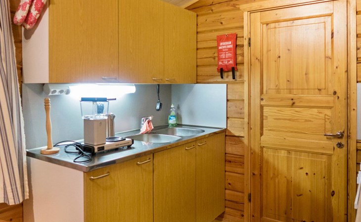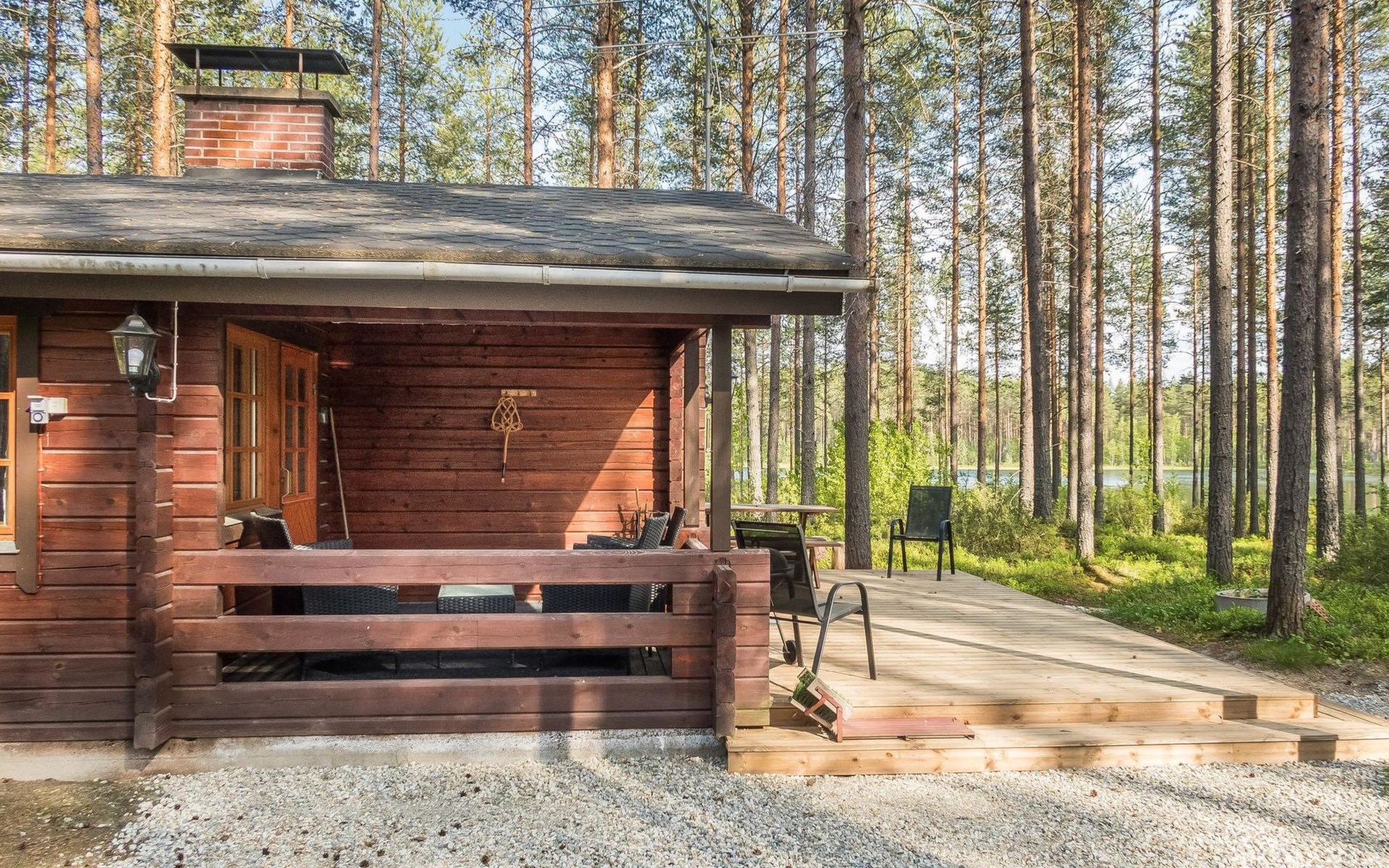 Porch. Camp fire. Lake Pikku-Valkeinen has muddy bottom, but sand has been brought there. However, there might be soft surface of humus on top of hard bottom.