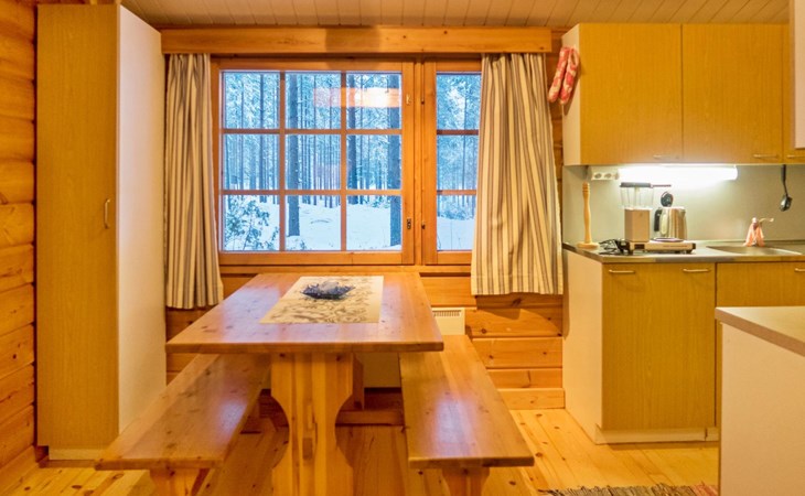 Kajaani, 70 km, Sotkamo 25 km. Vuokatti ski slope 30 km, cross-country ski trail 30 km. Hiidenportti National Park (old-growth forests and ravines) about 20 km. The cottage in the yard of children's playground. Campfire. Own beach 50 m, a boat available (no possibility to rent an outboard motor). The area has nice facilities for fishing (Välikoski).