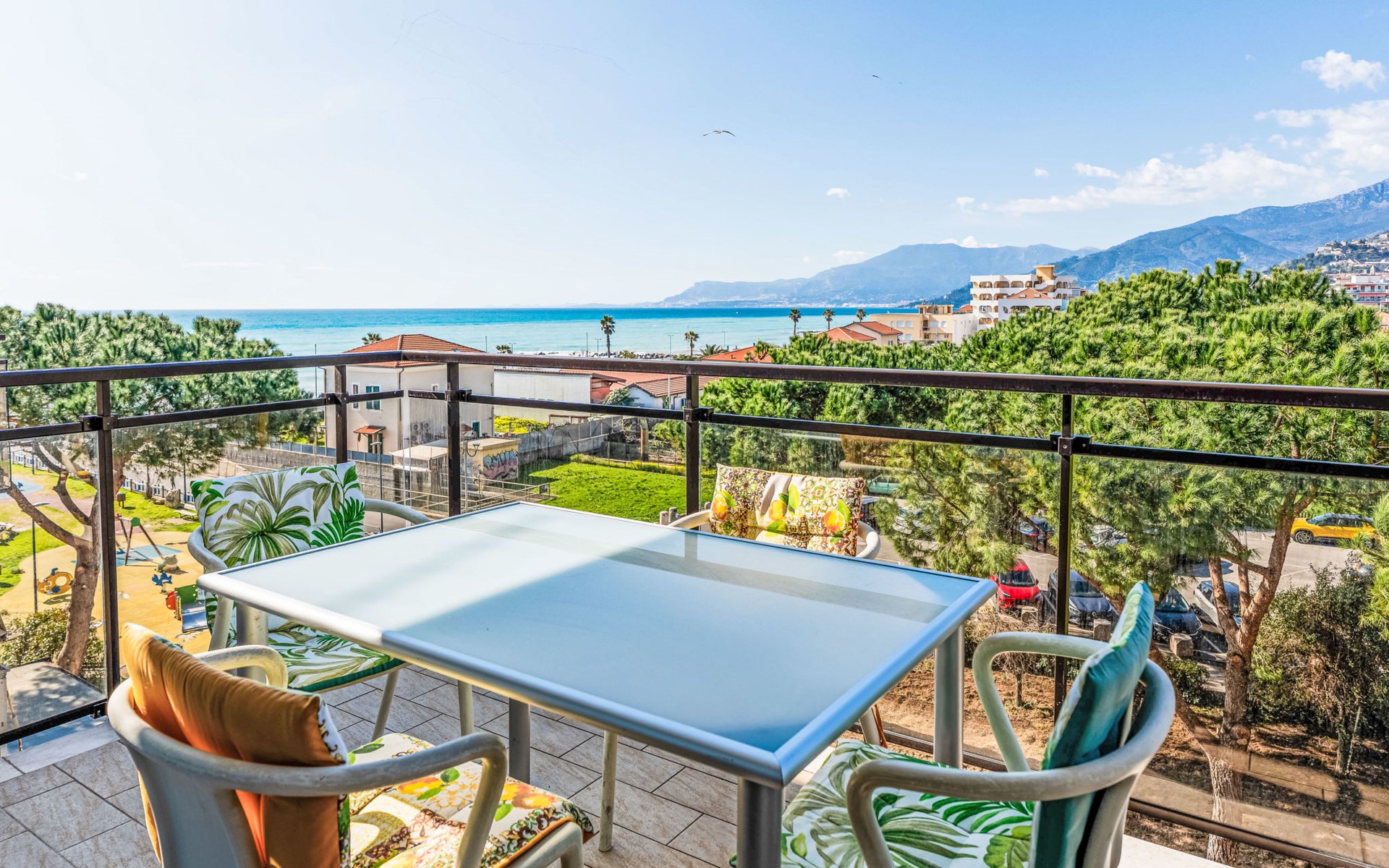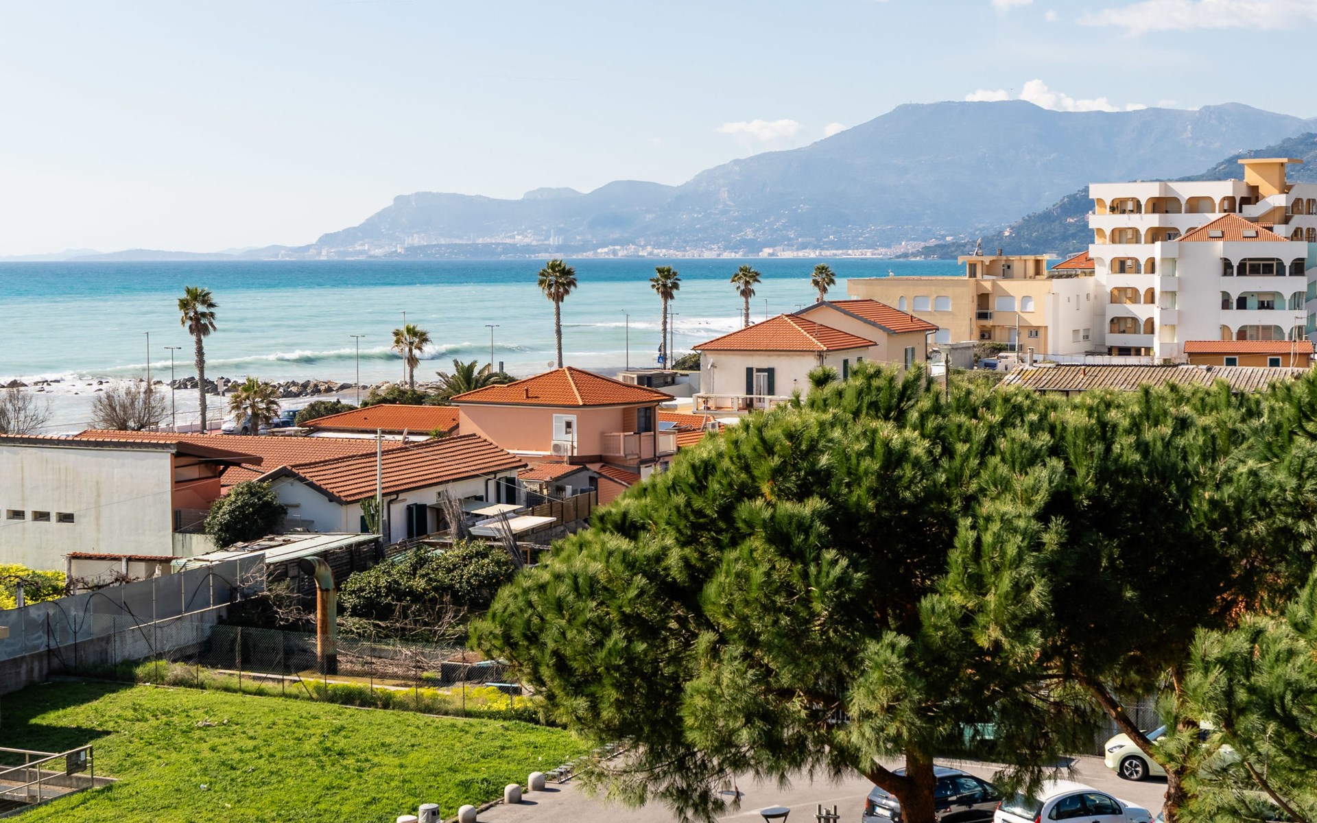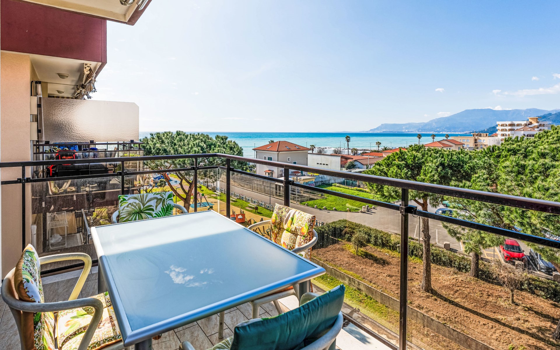 Very comfortable apartment block, 5 storeys. 1 km from the centre of Ventimiglia, 15 km from the centre of Sanremo, 13 km from the centre of Menton France, 90 m from the sea. In the house: lift. Public parking 30 m on the road. Supermarket 600 m, restaurant, bar 150 m, bakery 500 m, café 150 m, bus stop 200 m, railway station "Ventimiglia" 650 m, pebble beach 90 m. Cycle lane 100 m. Nearby attractions: Balzi Rossi 9 km, Giardini Hanbury 7 km, Le Calandre Beach 3 km. Please note: Loading and unloading of baggage is possible at the holiday house.
