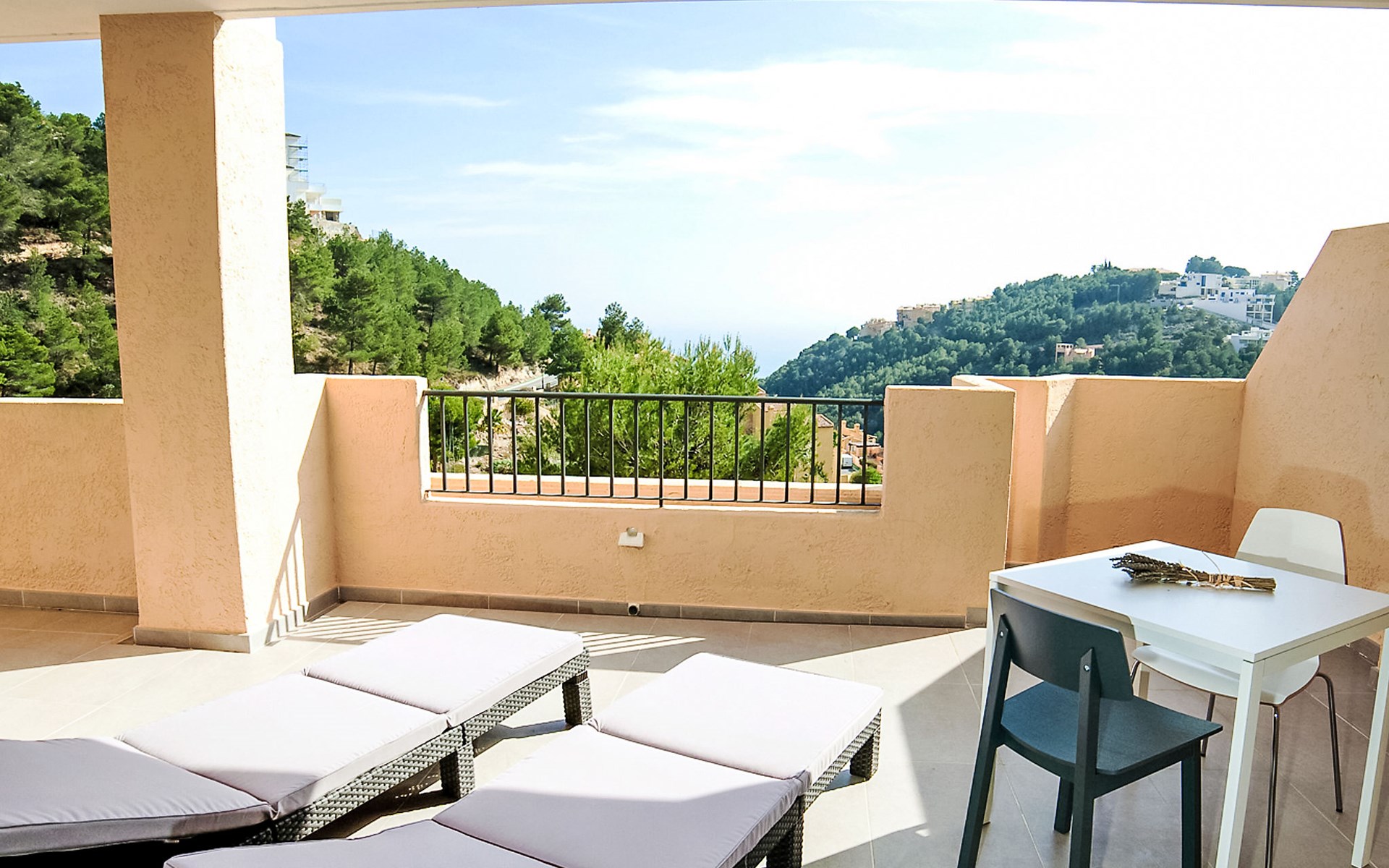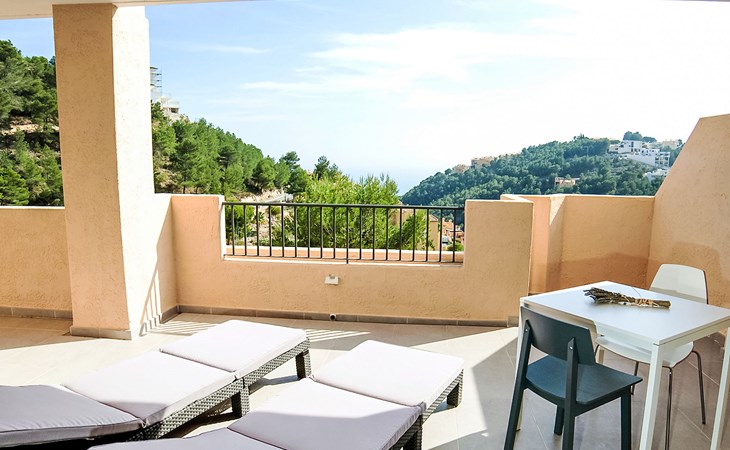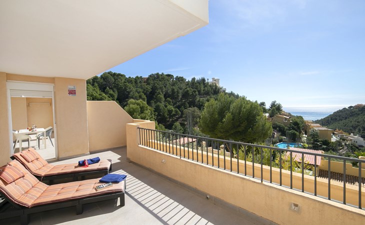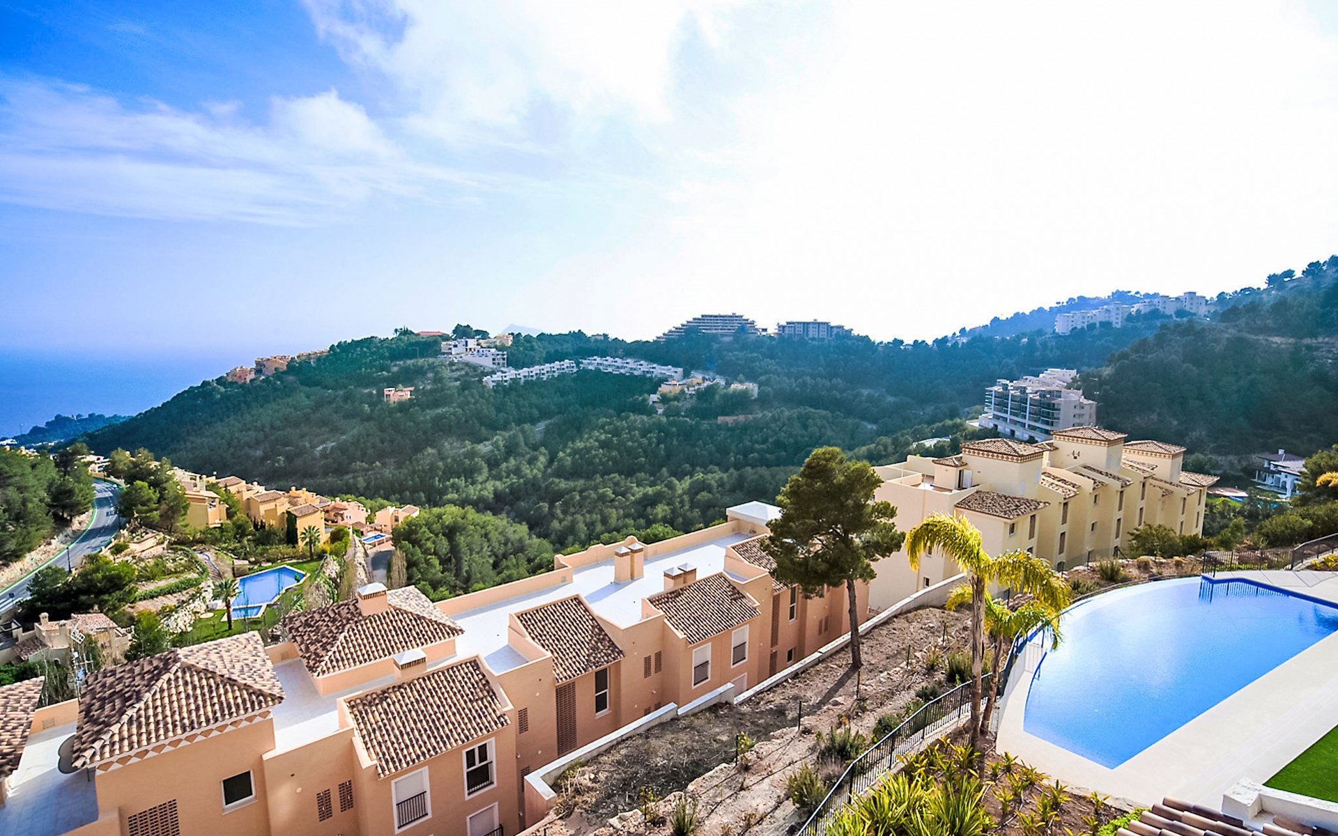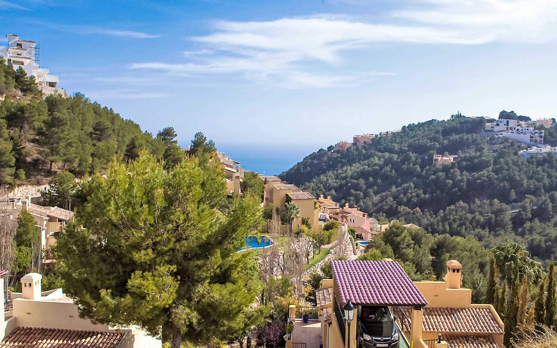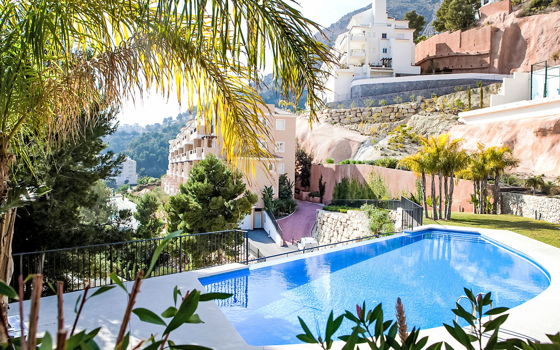 Altea Hills: Cosy apartment block "Los Lirios", built in 2011. 7.5 km from the centre of Altea, in a quiet position, 3.9 km from the sea, 3.9 km from the beach, in a cul-de-sac, south facing position. For shared use: beautiful garden to relax, 2 swimming pools (20 x 7 m, depth 100 - 200 cm, seasonal availability: 01.Jan. - 31.Dec.). Outdoor shower, children's playground. In the house: lift. Roofed, parking. Shop 7.5 km, supermarket 3.5 km, restaurant 4.7 km, bar 4.7 km, bus stop 4.7 km, sandy beach "Calpe" 11 km, shingle beach 3.5 km. Sports harbour 4.7 km, marina 4.7 km, golf course (9 hole) 6 km, children's playground 100 m. Nearby attractions: Mundomar, Aqualandia, Terra Natura, Terra MÃtica, Benidorm Palace en Benidorm, Club de Golf Don Cayo 6 km, Club Villaitana Golf 22.4 km. Hiking paths: Sierra Bernia. Please note: car recommended. Suitable for families, suitable for seniors. Guarded residence. Residence with electric gates. Additional accommodations can be booked. Property ref. ES9740.49.1 is situated on the same property.