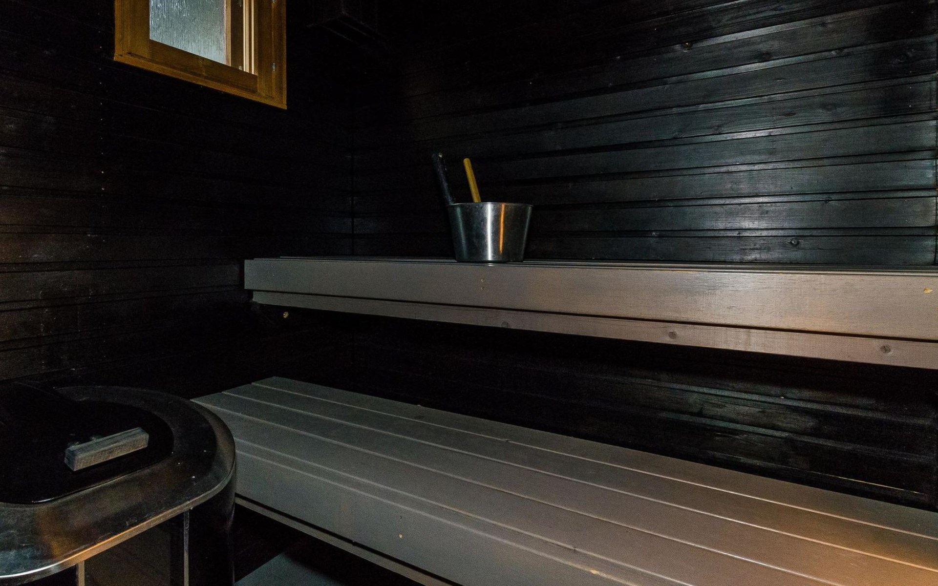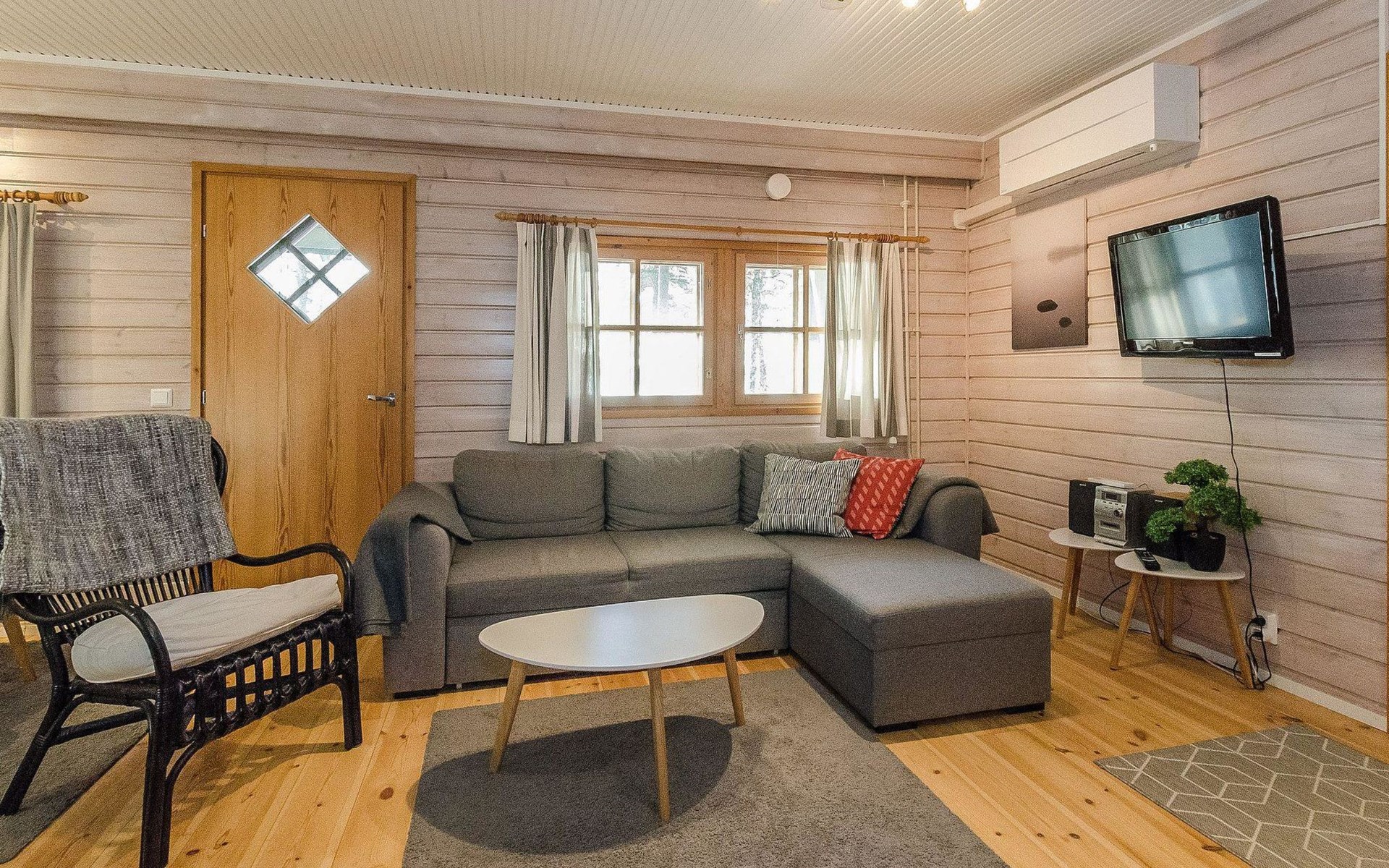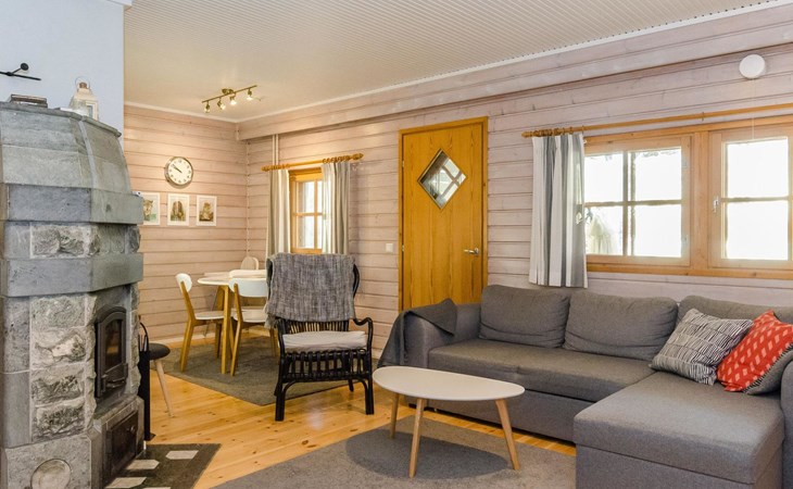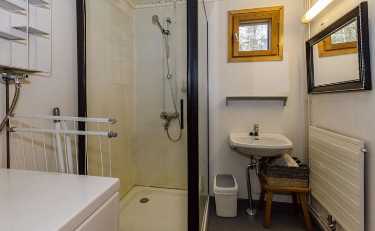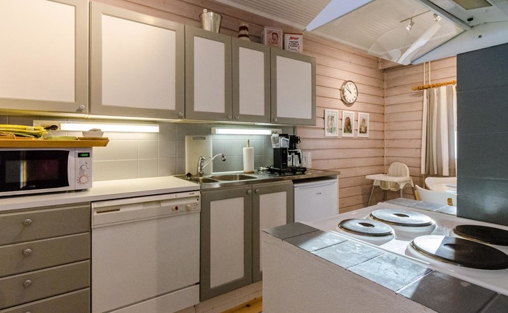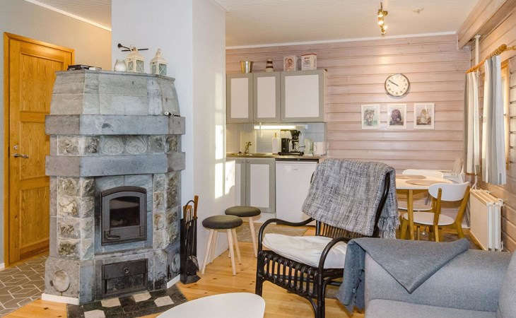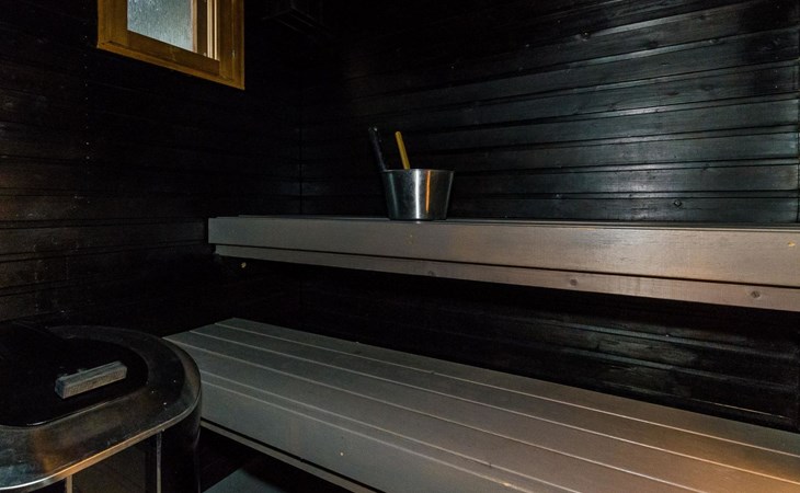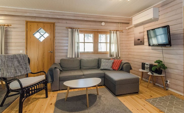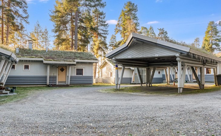 The apartment has a living room/kitchen with a sofa bed, 2 bedrooms, one with a double bed and the other with 2 beds. In addition, there is an electric sauna, bathroom, WC, and a terrace with a table and chairs for 4 people. In addition there is a carport.