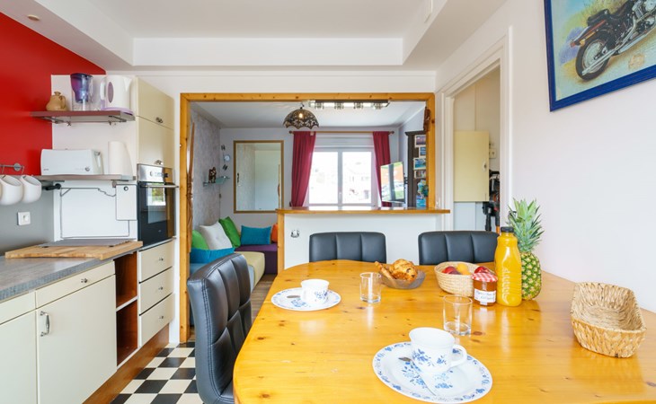 2-family house "l'Atlantique". In the centre of Morgat, in a busy position, 120 m from the sea. In the house: storage room for bicycles. Parking at the house. Grocery, supermarket, restaurant 50 m, bus stop 1 km, sandy beach "Plage de Morgat" 120 m, diving center 630 m, outdoor swimming pool 1 km. Sports harbour 630 m, surf school 120 m, sailing school 630 m. Nearby attractions: Cap de la chèvre 7.6 km, Plage de Goulien 4 km, Camaret, Tour Vauban 13.6 km, Roscancel 13.5 km, Pointe de Pen Hir 14 km. Hiking paths: GR 34 50 m.
