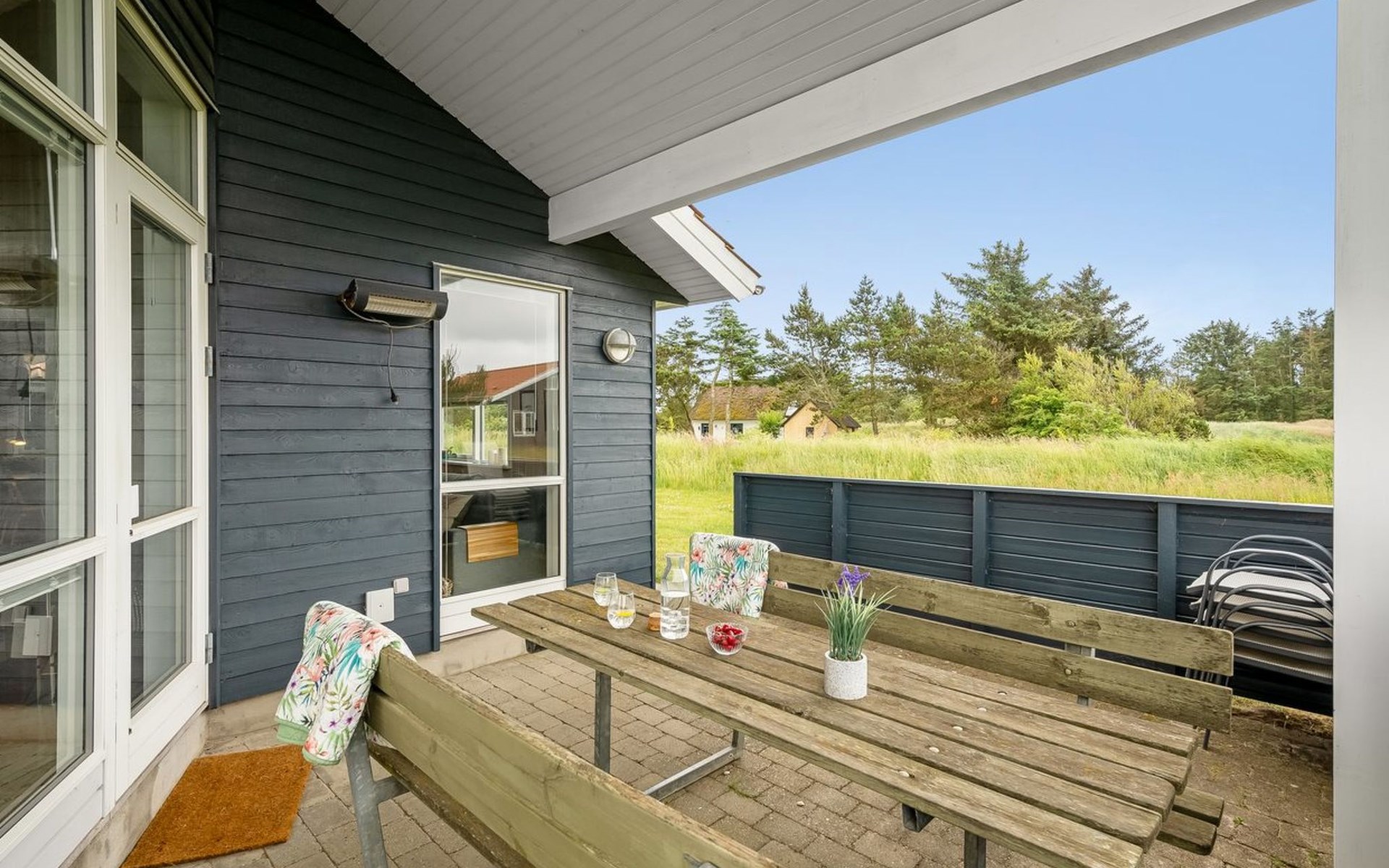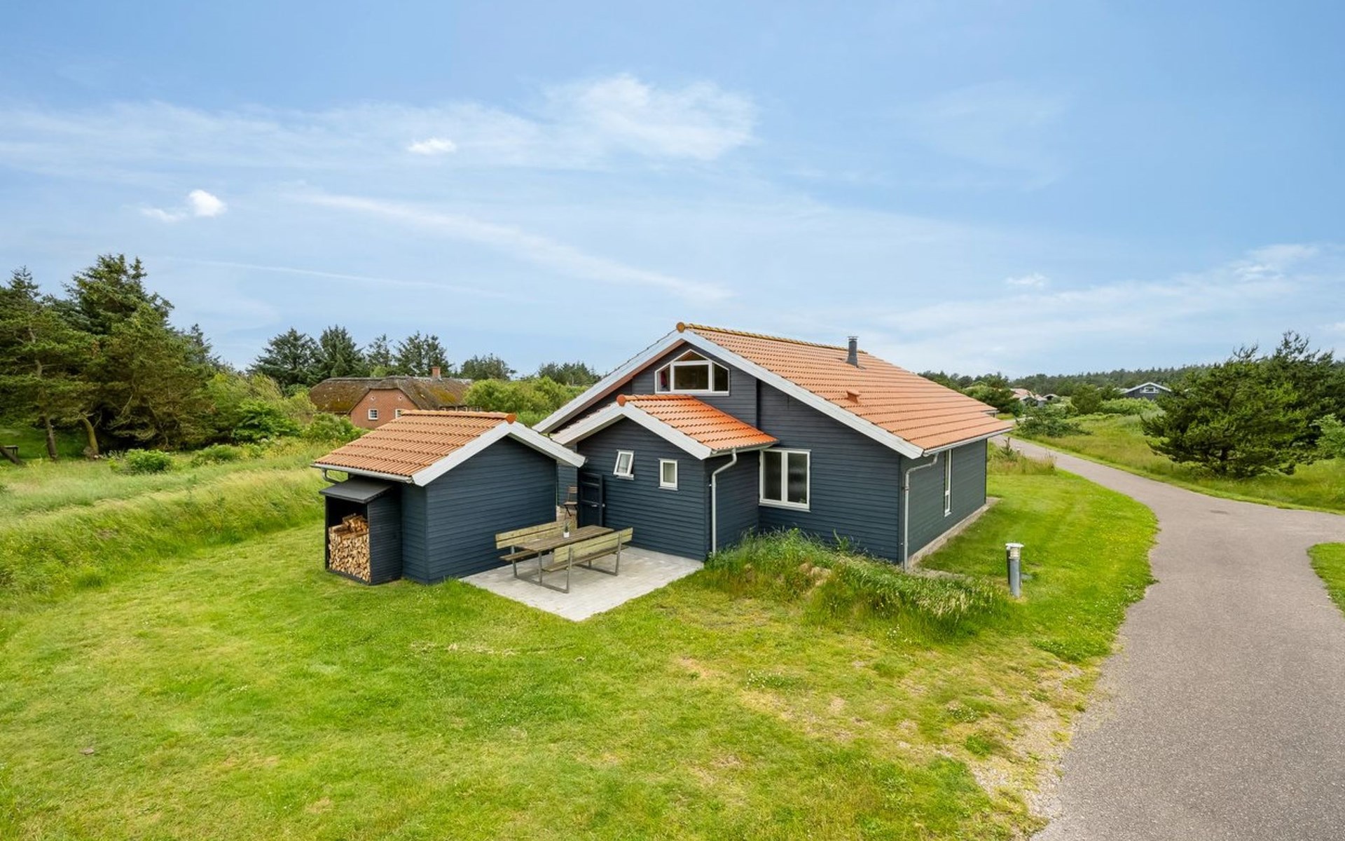 Single-family house, built in 2011. 800 m from the sea. Private: natural state property 400 m2. Barbecue. In the house: washing machine, tumble dryer. Parking at the house. E-charging station. Grocery 3 km. The owner does not accept any youth groups.
