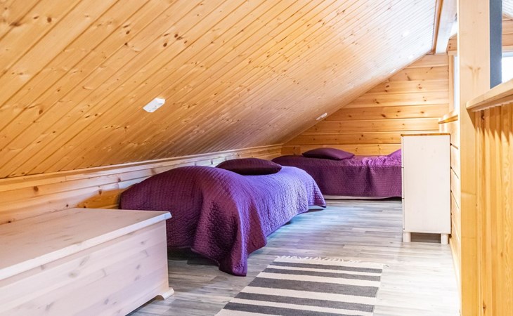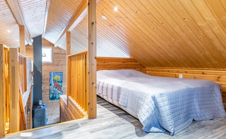 53 km north from Kemijärvi. Log cabin built in 2011. Living room/kitchen, two bedrooms with double bed, toilet, washroom + toilet, sauna (electric stove), utility room and open porch. Upstairs open balcony with 4 beds.