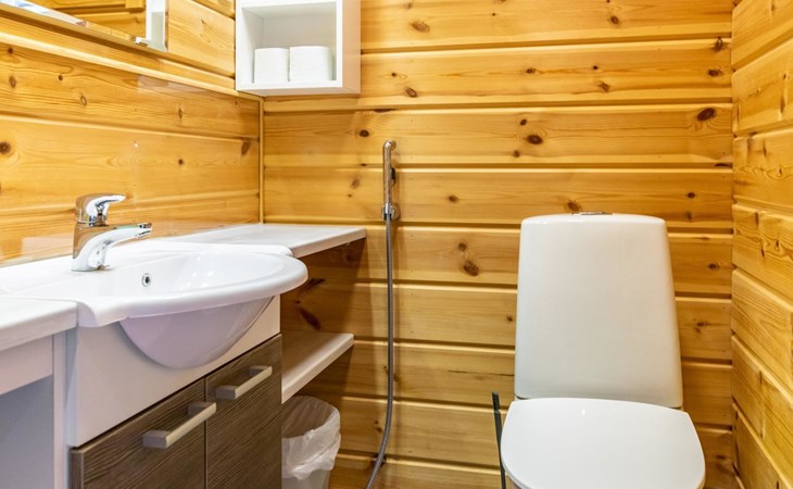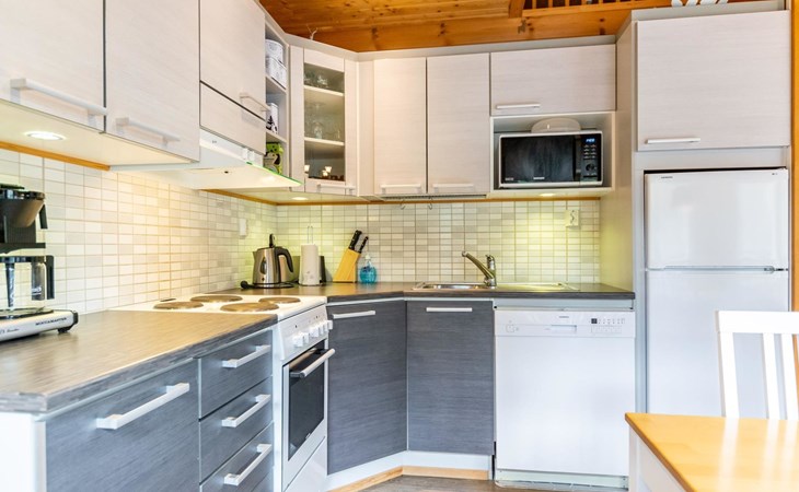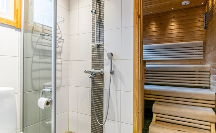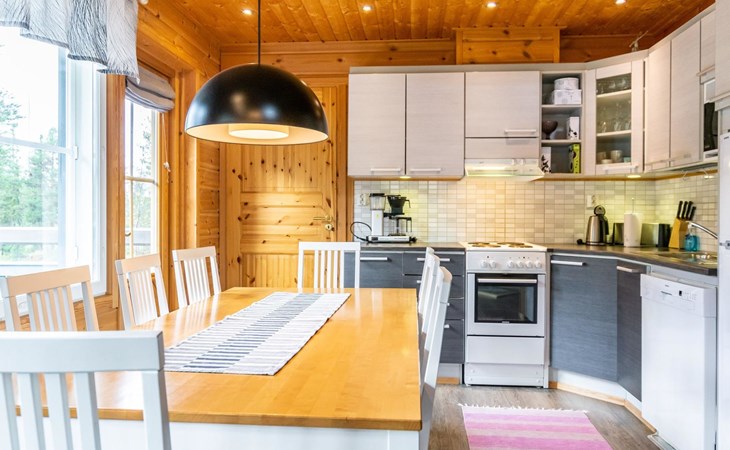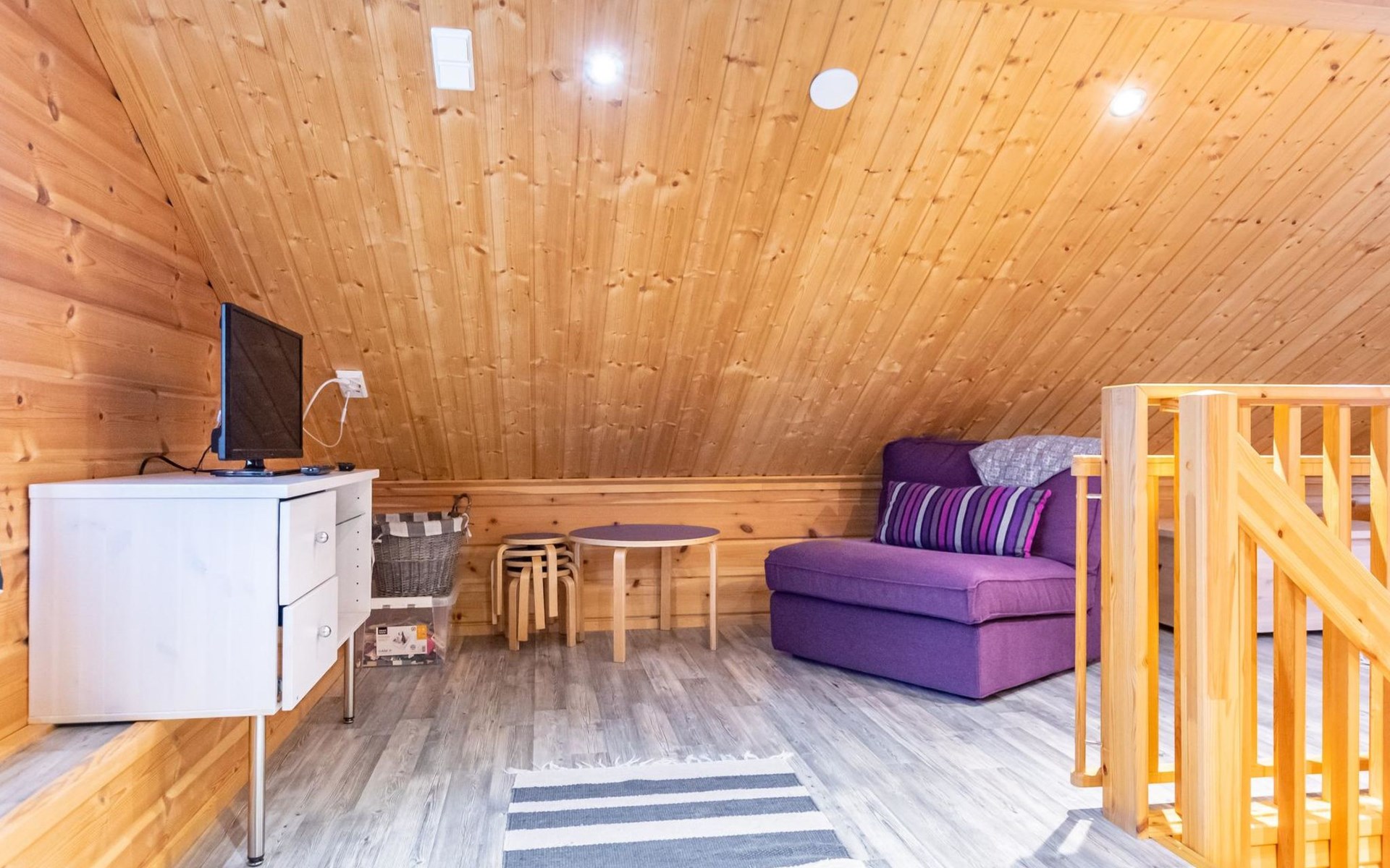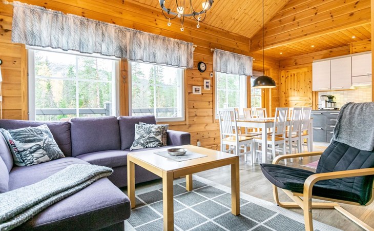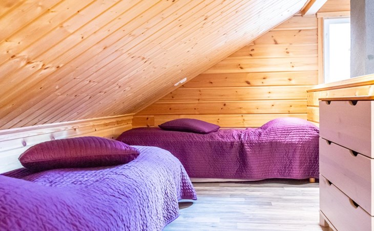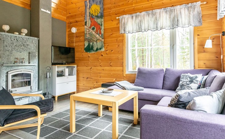 There is a child equipment, 2 pairs of snowshoes, separate service room for skis, 2 sledges and 2 bikes included in this cabin. TV and DVD player in the living room and upstairs.