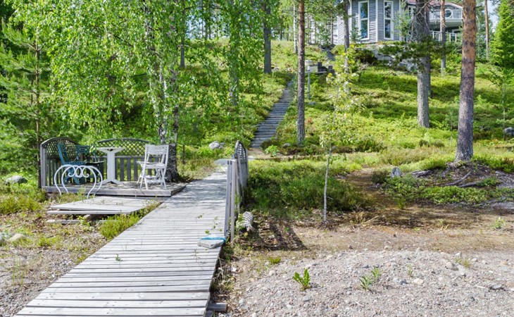 The house, which was built in 2006, is located 77 km north of Joensuu. The house is 80 m from the shore of Lake Pielinen (871.2 km²) and has its own gently sloping beach with small stones. A rowing boat is provided. A staircase leads from the house to the shore.