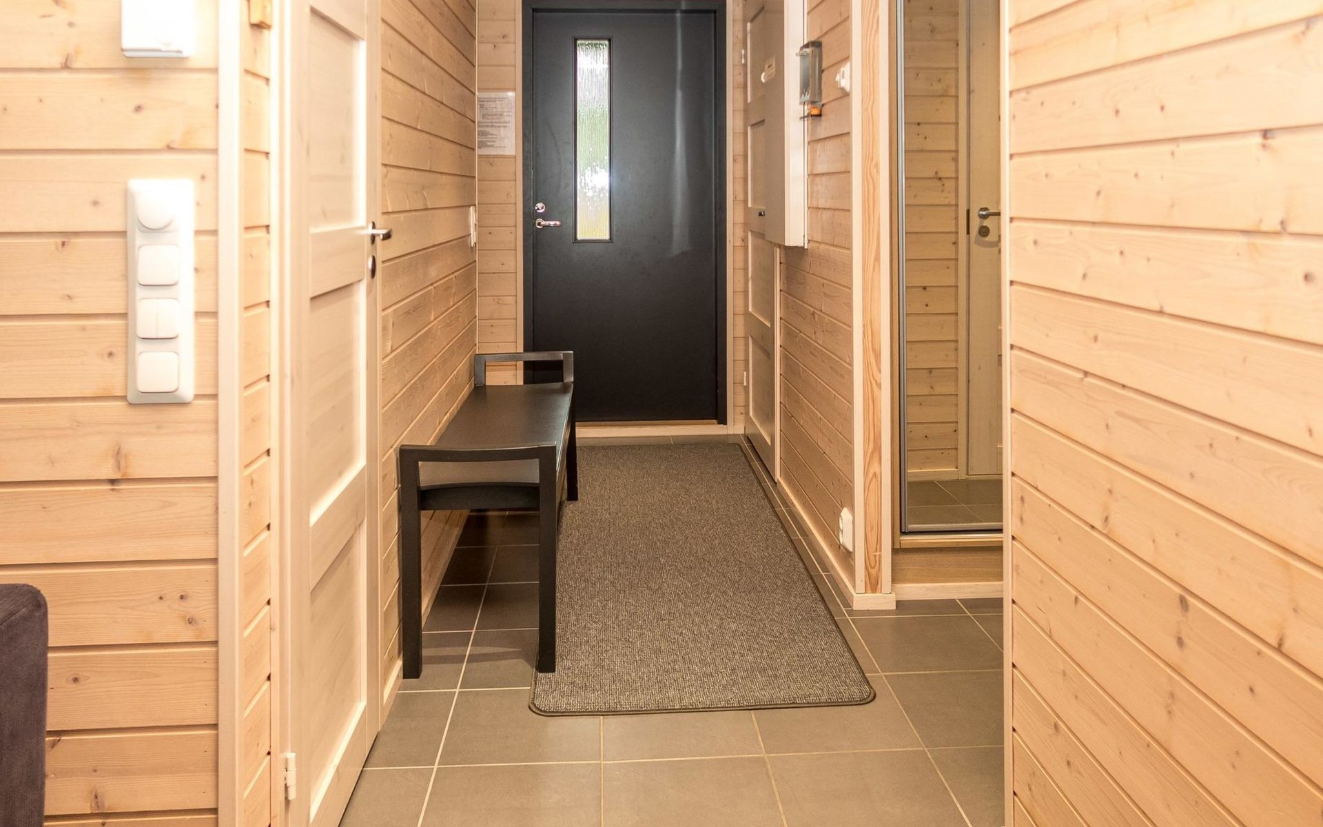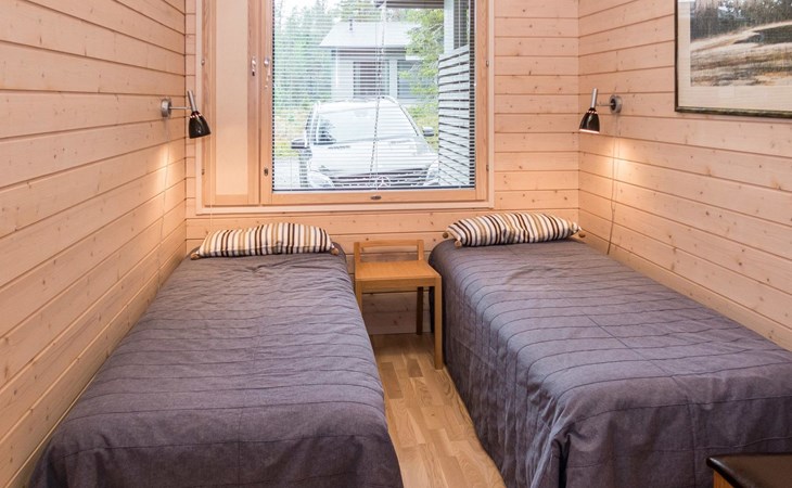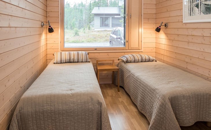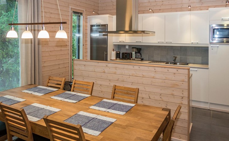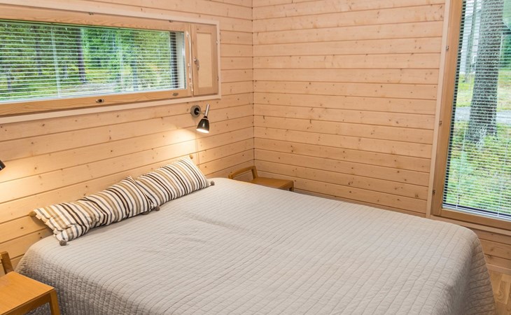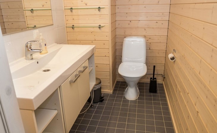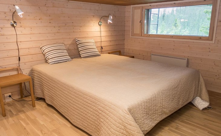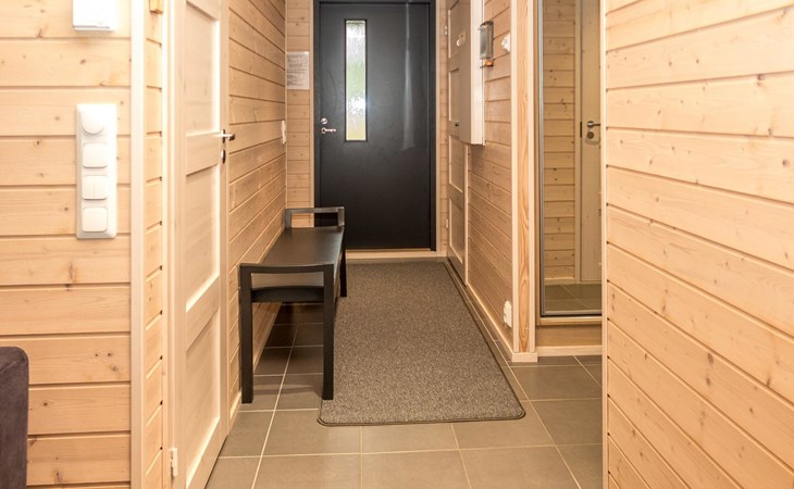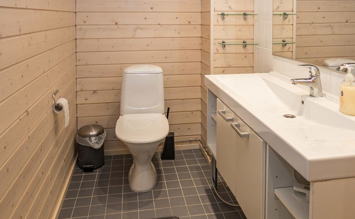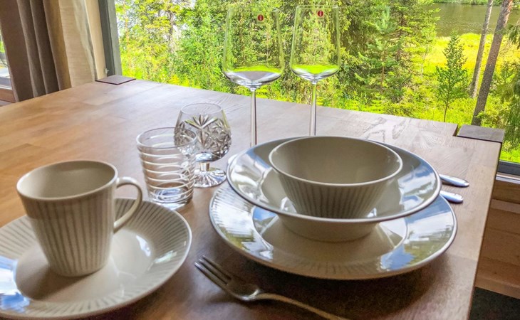Spacious sauna offer view to the pond Salmilampi. The glazed terrace has a gas grill. In addition, there is a new shared cooking hut (within 50 meters) only for the residents staying in the area (key can be found in the apartment). Two bicycles (Kaunotar and Kulkuri) for "shopping trips" are located in a separate storage space. There is also a ski waxing table on the storage. Household waste must be sorted, there are facilities for waste sorting in the apartment and in the area.