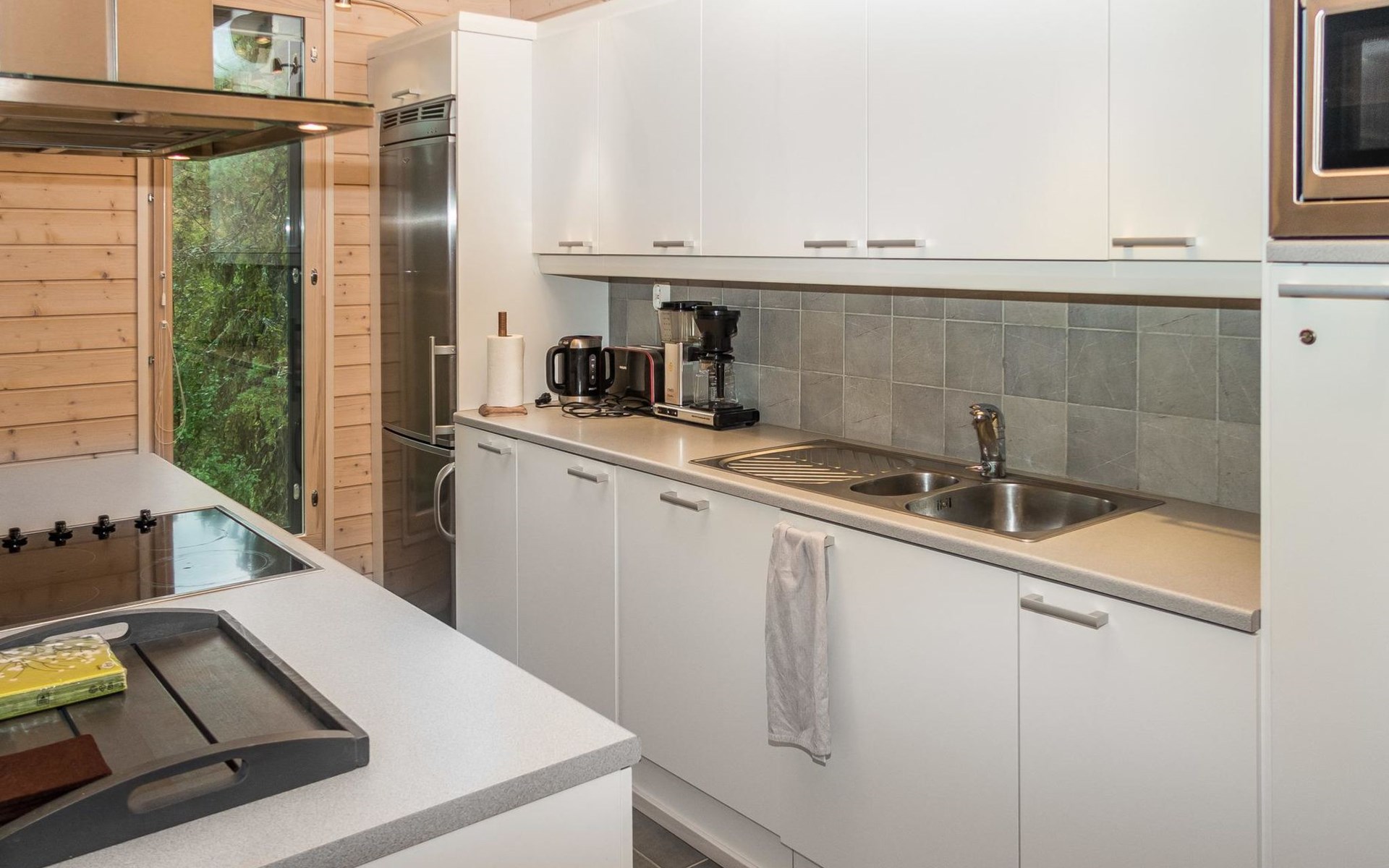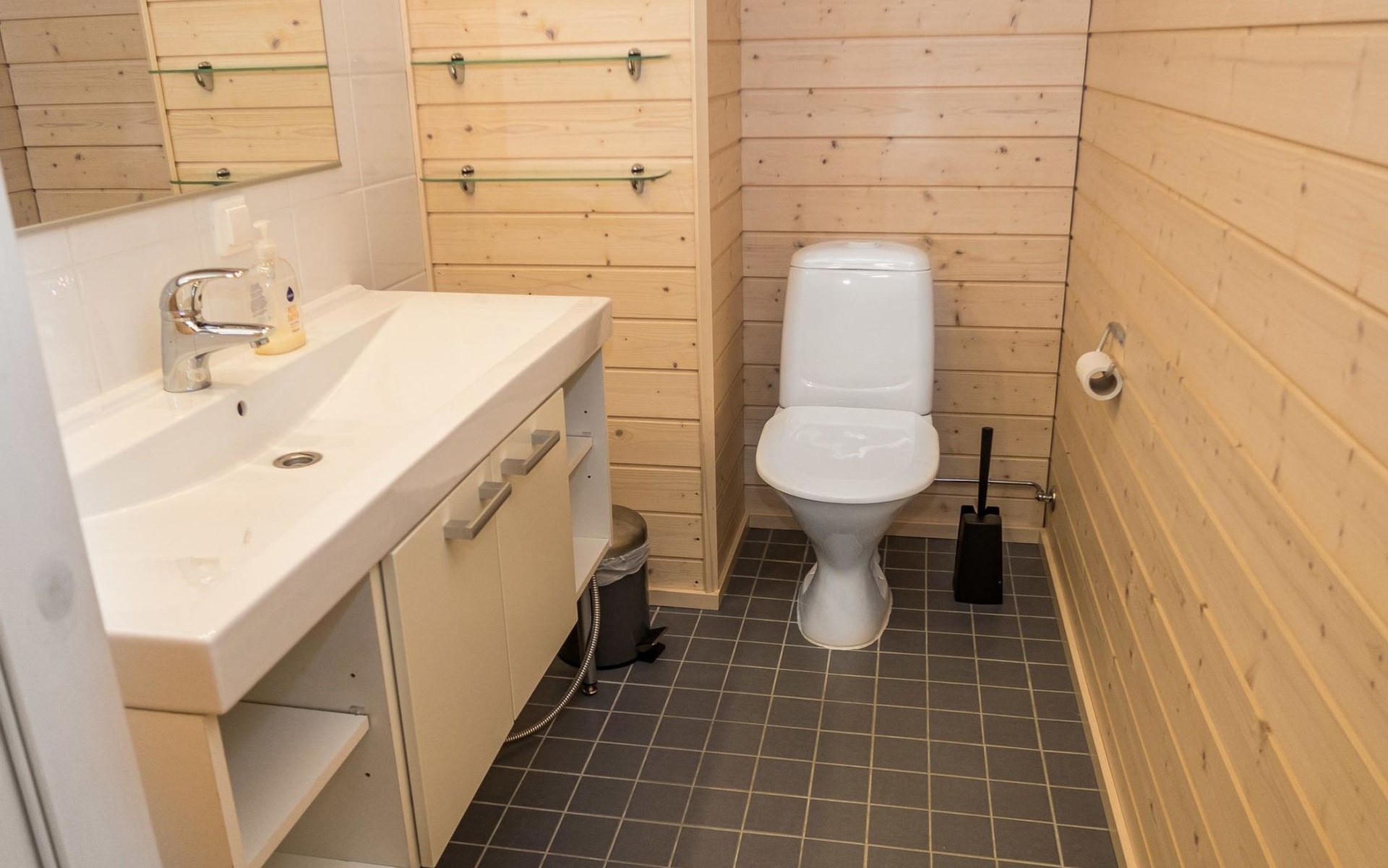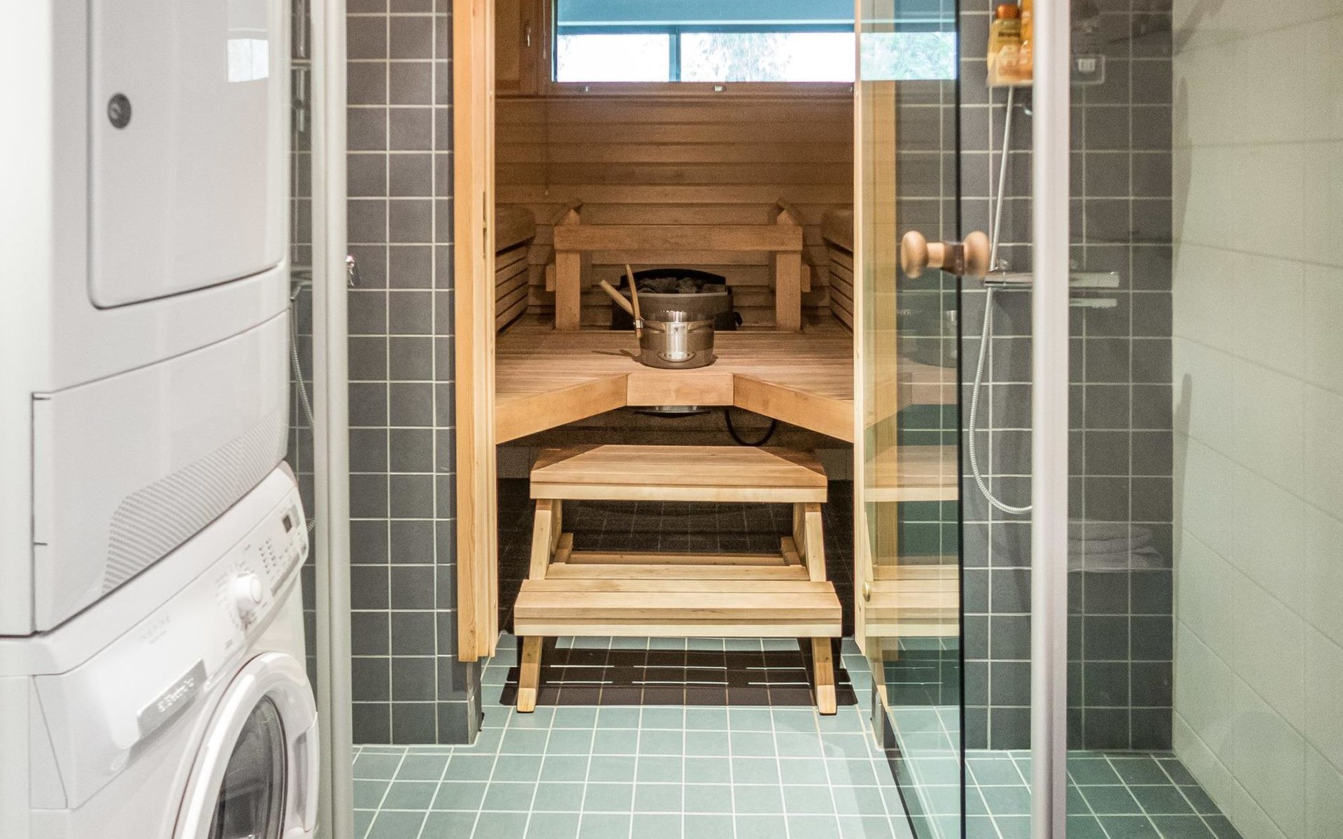 Spacious sauna offer view to the pond Salmilampi. The glazed terrace has a gas grill. In addition, there is a new shared cooking hut (within 50 meters) only for the residents staying in the area (key can be found in the apartment). Two bicycles (Kaunotar and Kulkuri) for "shopping trips" are located in a separate storage space. There is also a ski waxing table on the storage. Household waste must be sorted, there are facilities for waste sorting in the apartment and in the area.