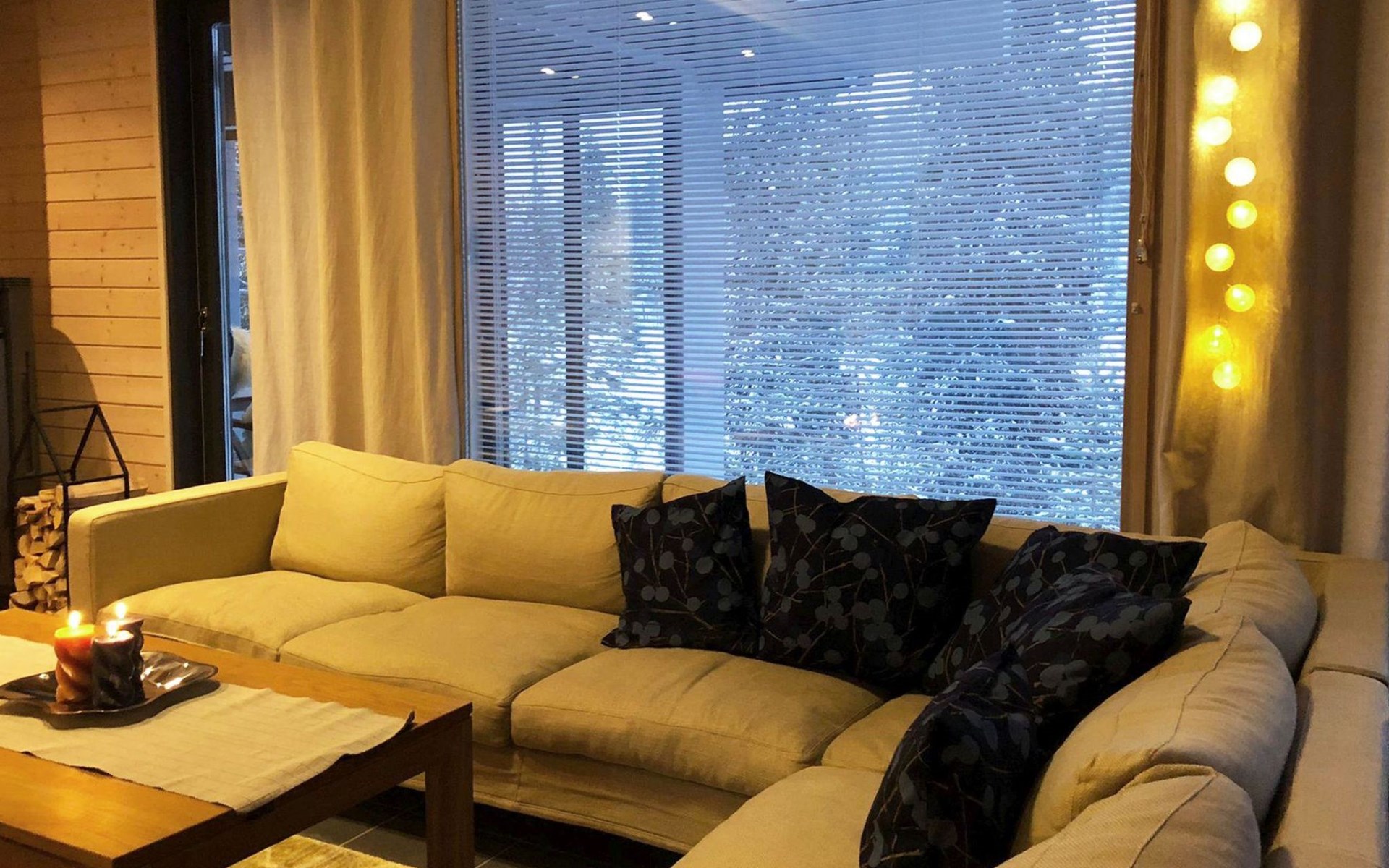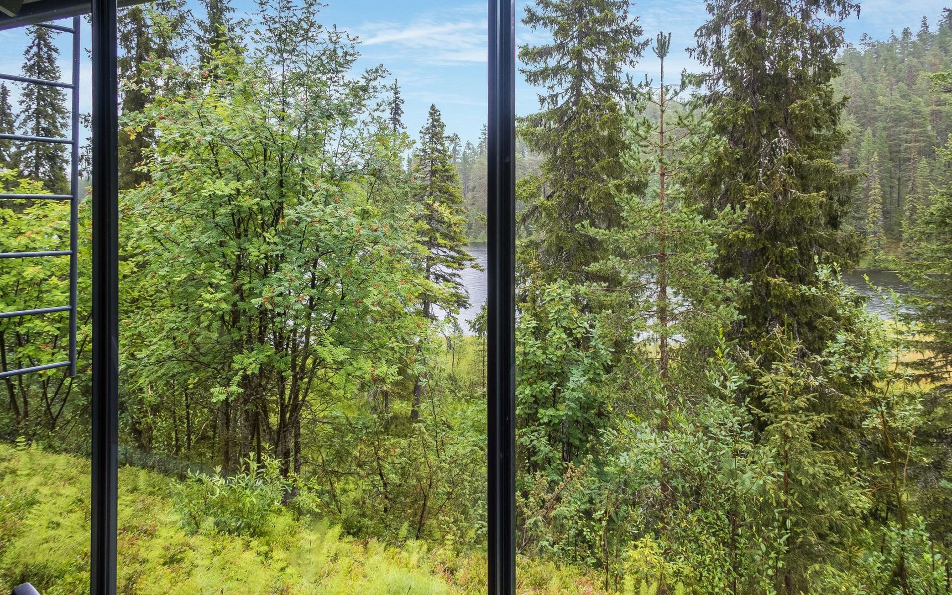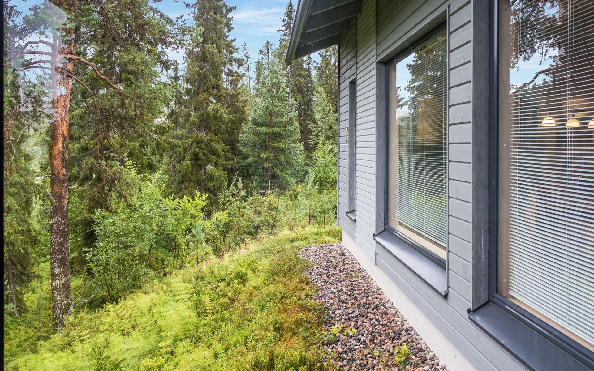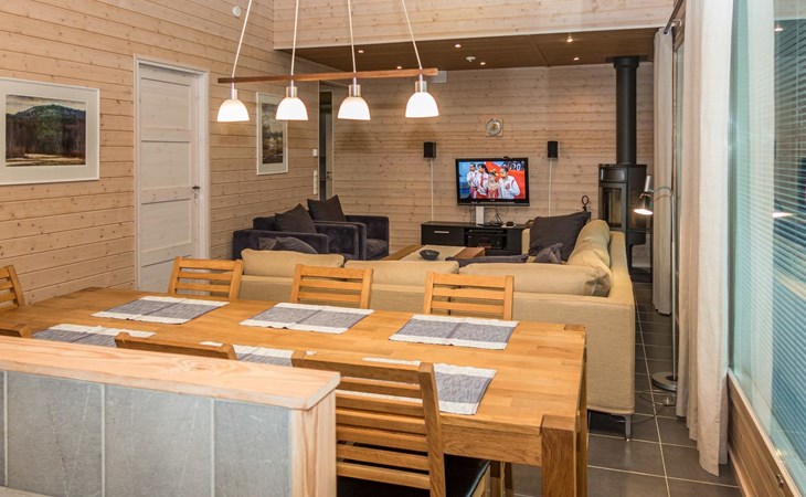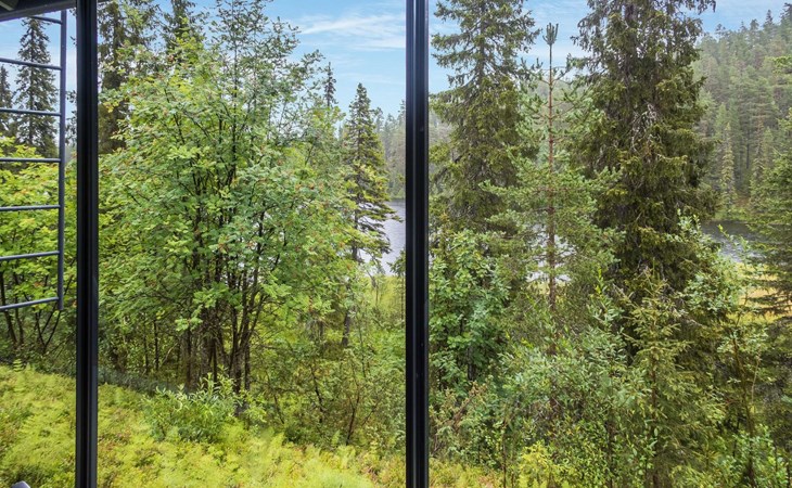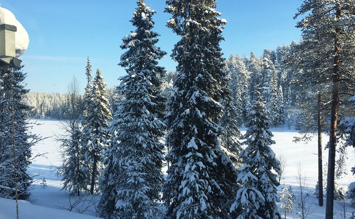 The large windows have great views over the pond Salmilampi and Salmilampi hill. The landscape changes according to the seasons, from summer green to the autumn colors and not forgetting the snow white in winter.