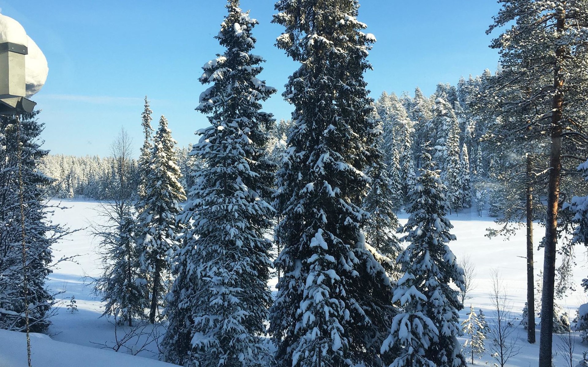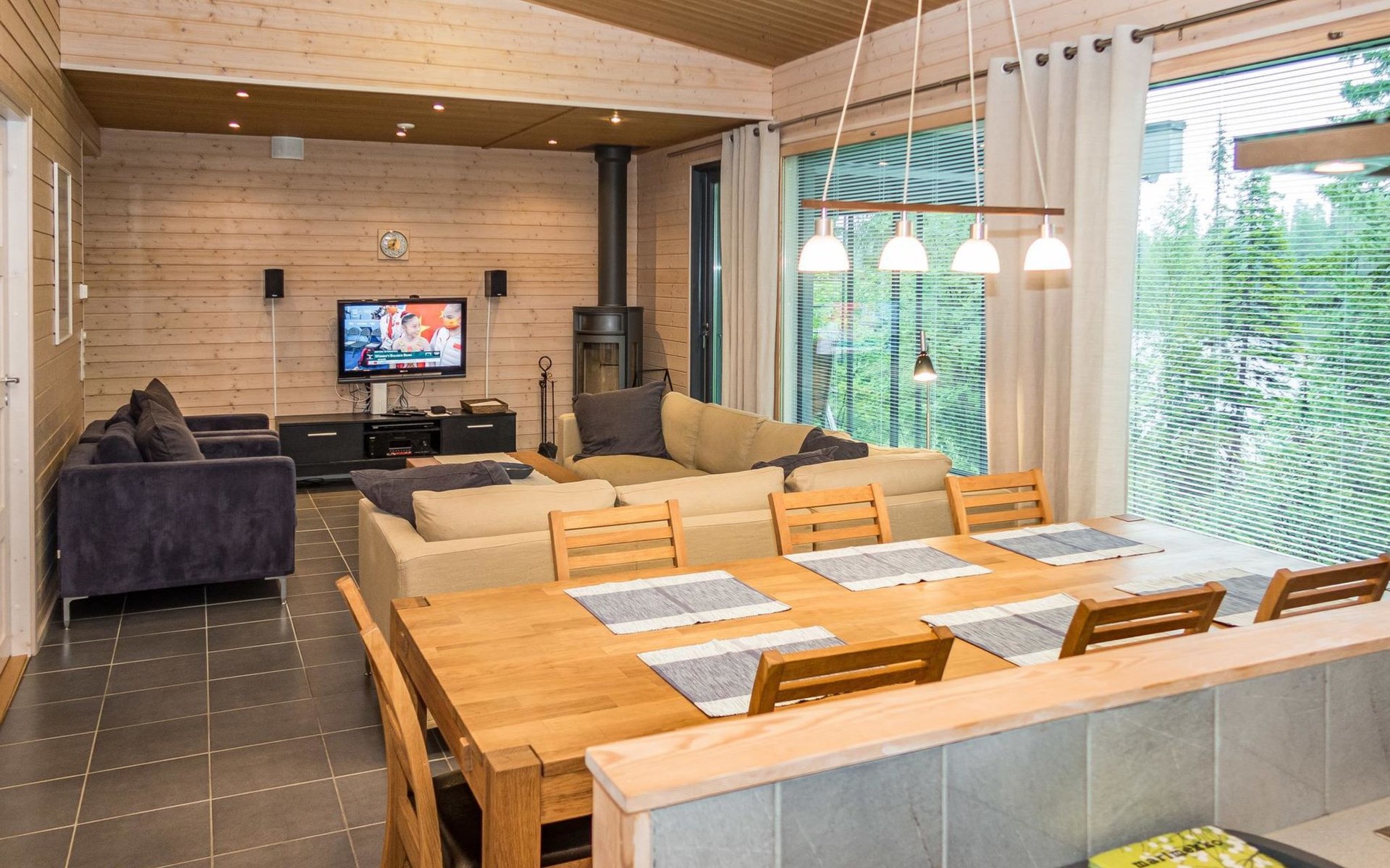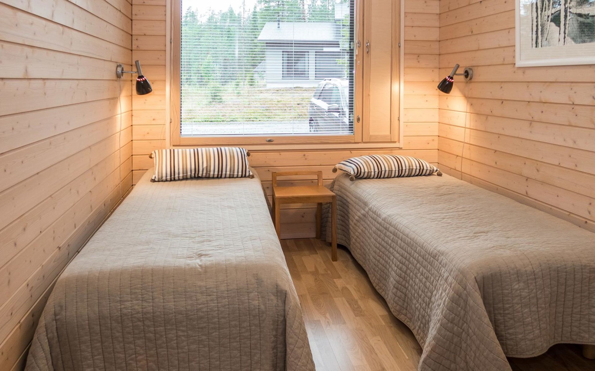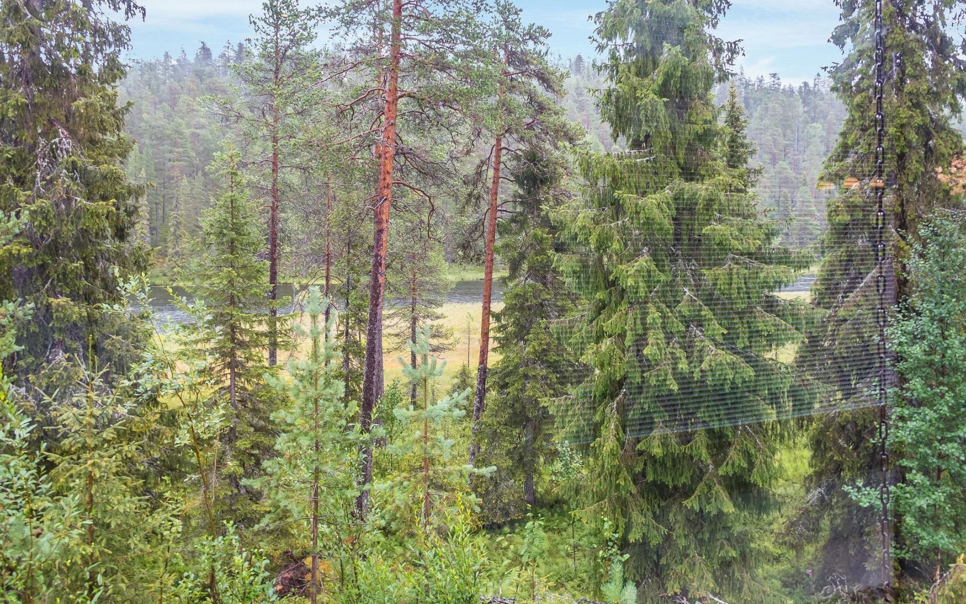 The large windows have great views over the pond Salmilampi and Salmilampi hill. The landscape changes according to the seasons, from summer green to the autumn colors and not forgetting the snow white in winter.