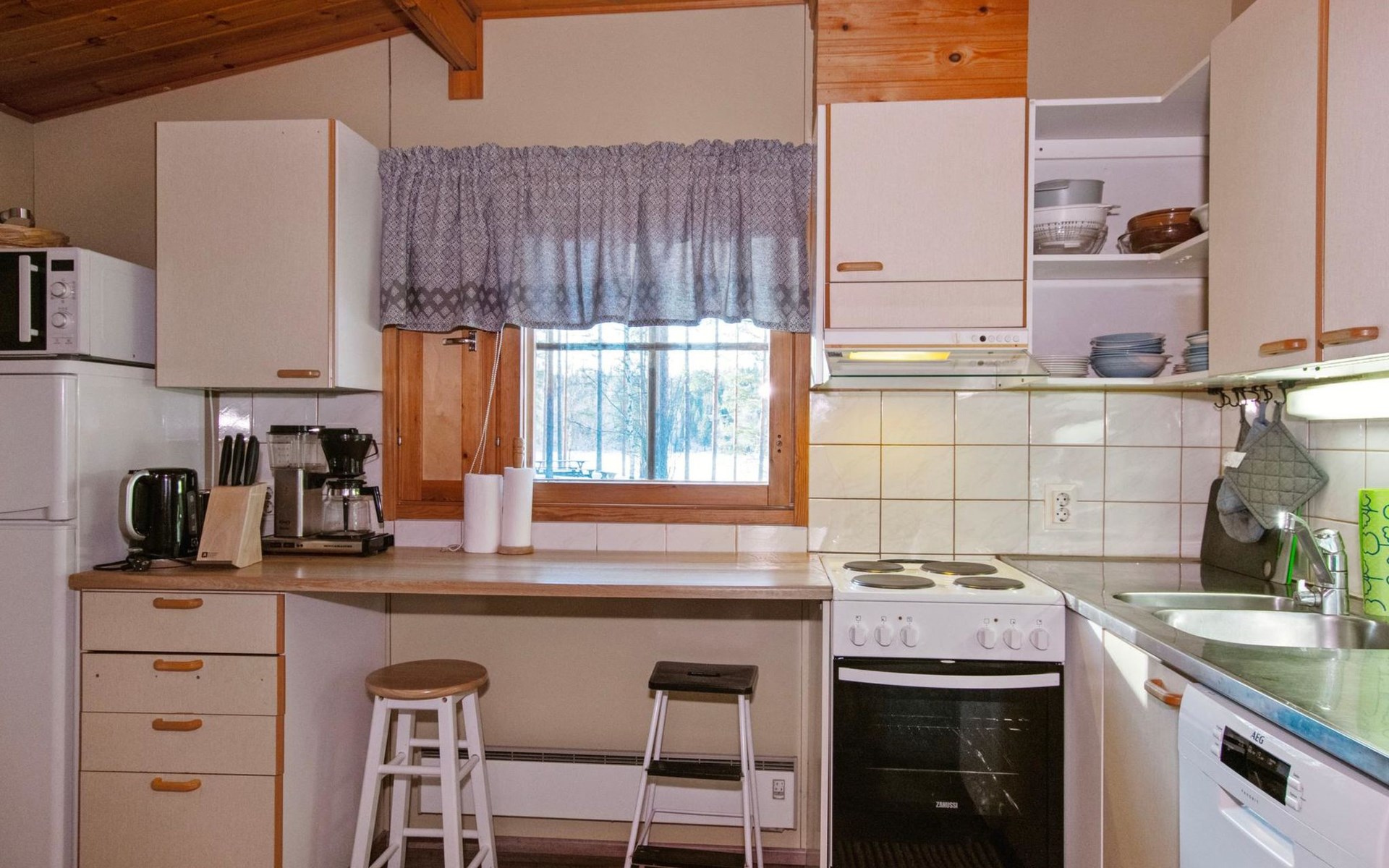Air source heat pump for additional heating and cooling. Location by a lake Kankarisvesi which has family friendly, shallow, sandy bottom. Available cot and high chair. Good outdoor and hiking areas nearby. Mushroom and berry forests nearby. Maintained ski trails in the winter. Outside power point for the car.