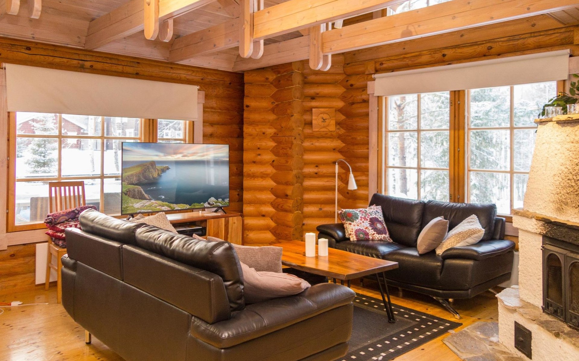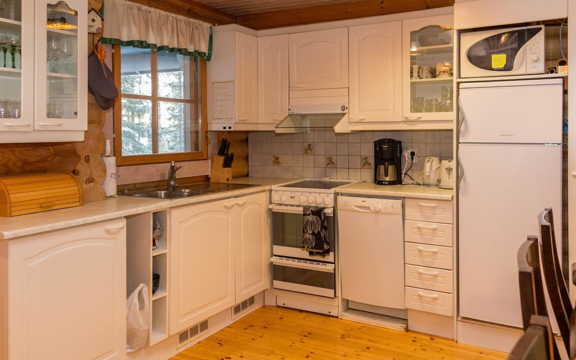 65 km northeast of Kuopio, Lake Syväri 400 m, shallow beach suitable for children, 2 km drive to Tahkonlahti, no boat. Pets are allowed for an additional fee.