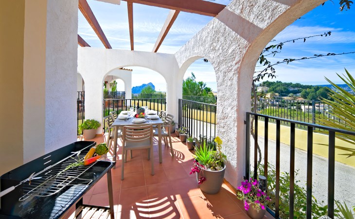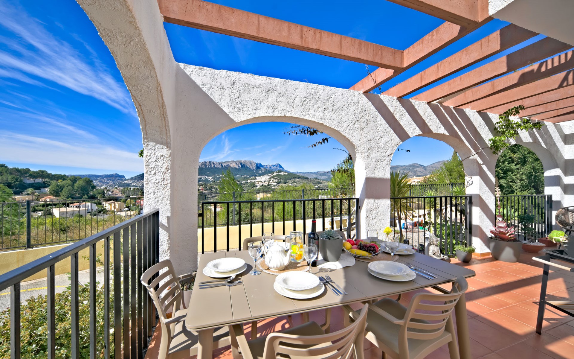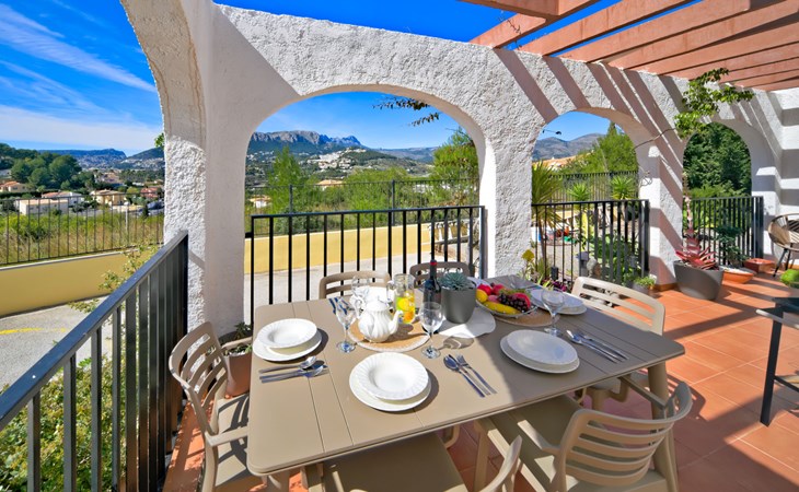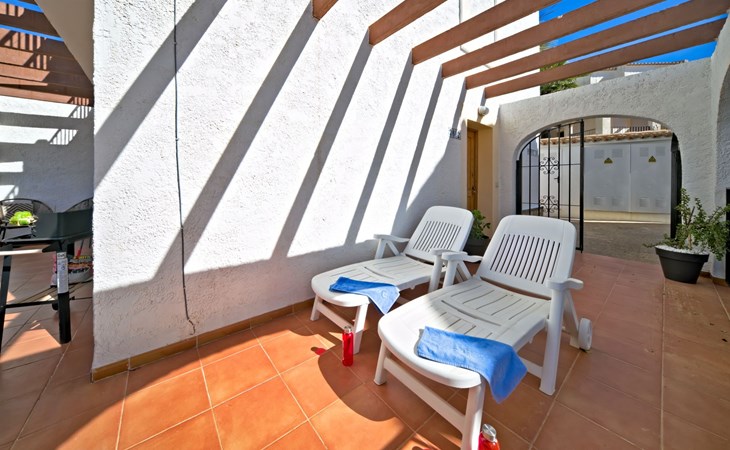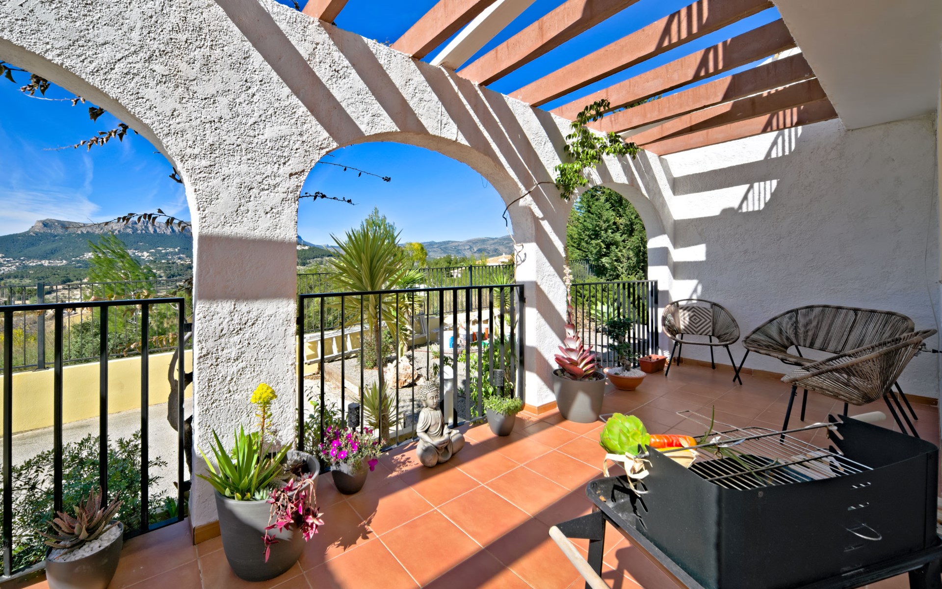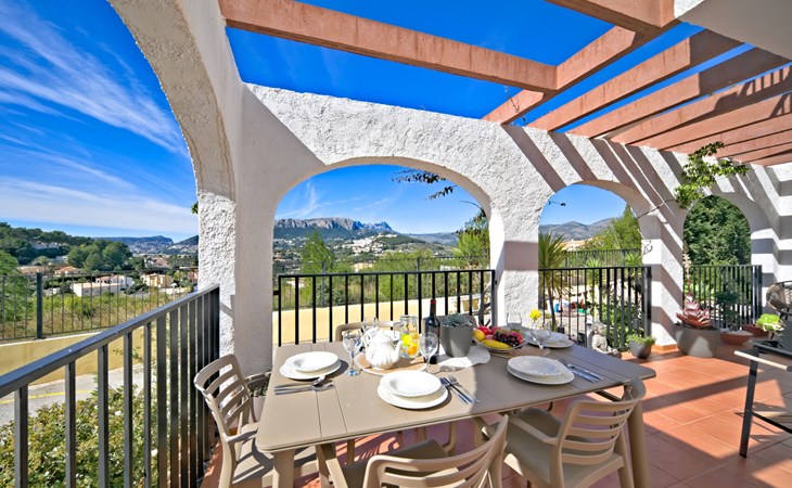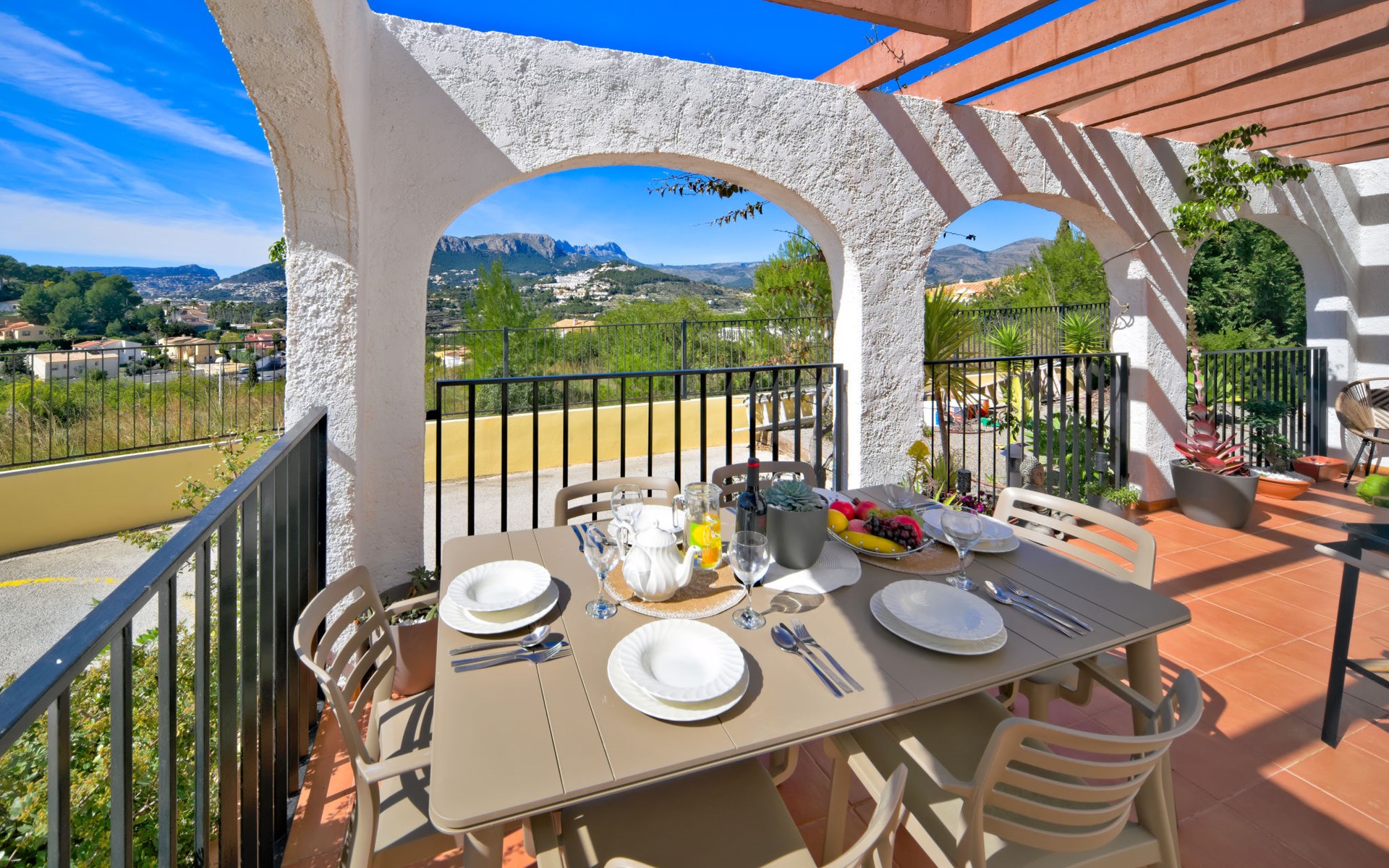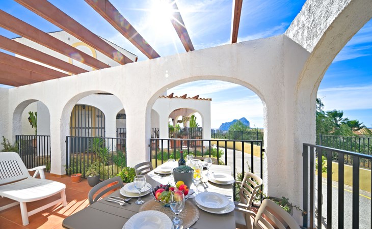 Gran Sol: Modern terraced house "Imperial Park". 3.3 km from the centre of Calpe, in a busy, sunny, elevated position, 2.5 km from the sea, 2.5 km from the beach. For shared use: large, well-kept terraced garden (fenced), natural garden, 3 swimming pools (seasonal availability: 01.Jan. - 31.Dec. pool opening hours: 10:00-20:00) with internal staircase. Unconventional pool shape. Children's pool, outdoor shower, patio, pergola, garden furniture. In the house: reception, lift. Shop 2 km, supermarket 2 km, restaurant 50 m, bar 200 m, café 50 m, bus stop 1.3 km, sandy beach "Playa De La Fosa" 3 km, diving center 1.5 km. Sports harbour 2.5 km, marina 2.5 km, golf course (18 hole) 10 km, surf school 2.5 km, sailing school 2.5 km, tennis 2.8 km, minigolf 3 km. Nearby attractions: Aqualandia, Mundomar, Terra Mítica, Terra Natura, y Benidorm Palace (Benidorm). Please note: car recommended. Reception open 10:00-15:00 hrs. Suitable for families. Please note: guarded residence. Additional accommodations can be booked. All houses/apartments are individually designed/furnished. Neighbourhood highly sensitive to noise. Quietness and good behaviour expected.