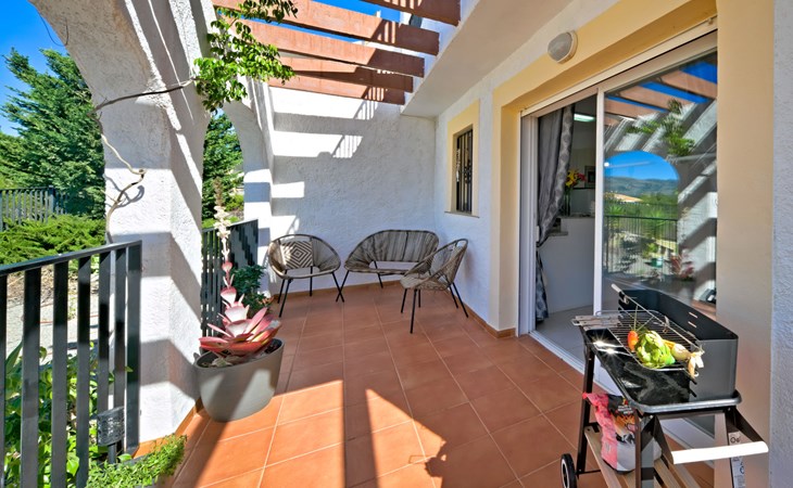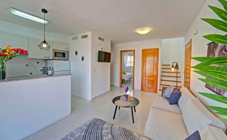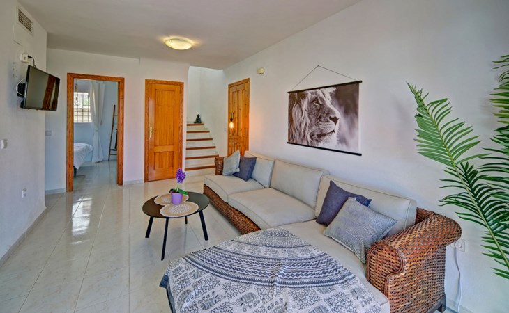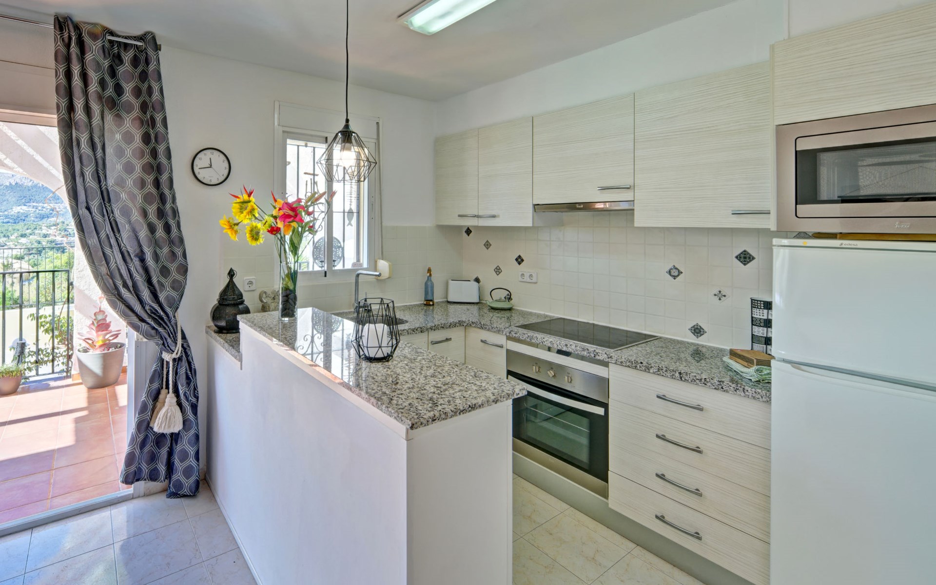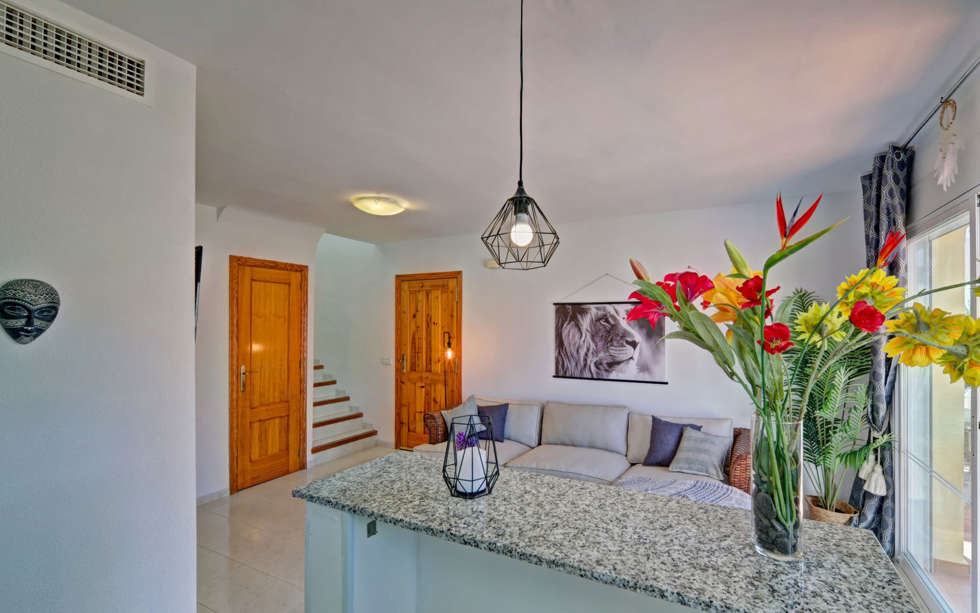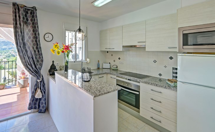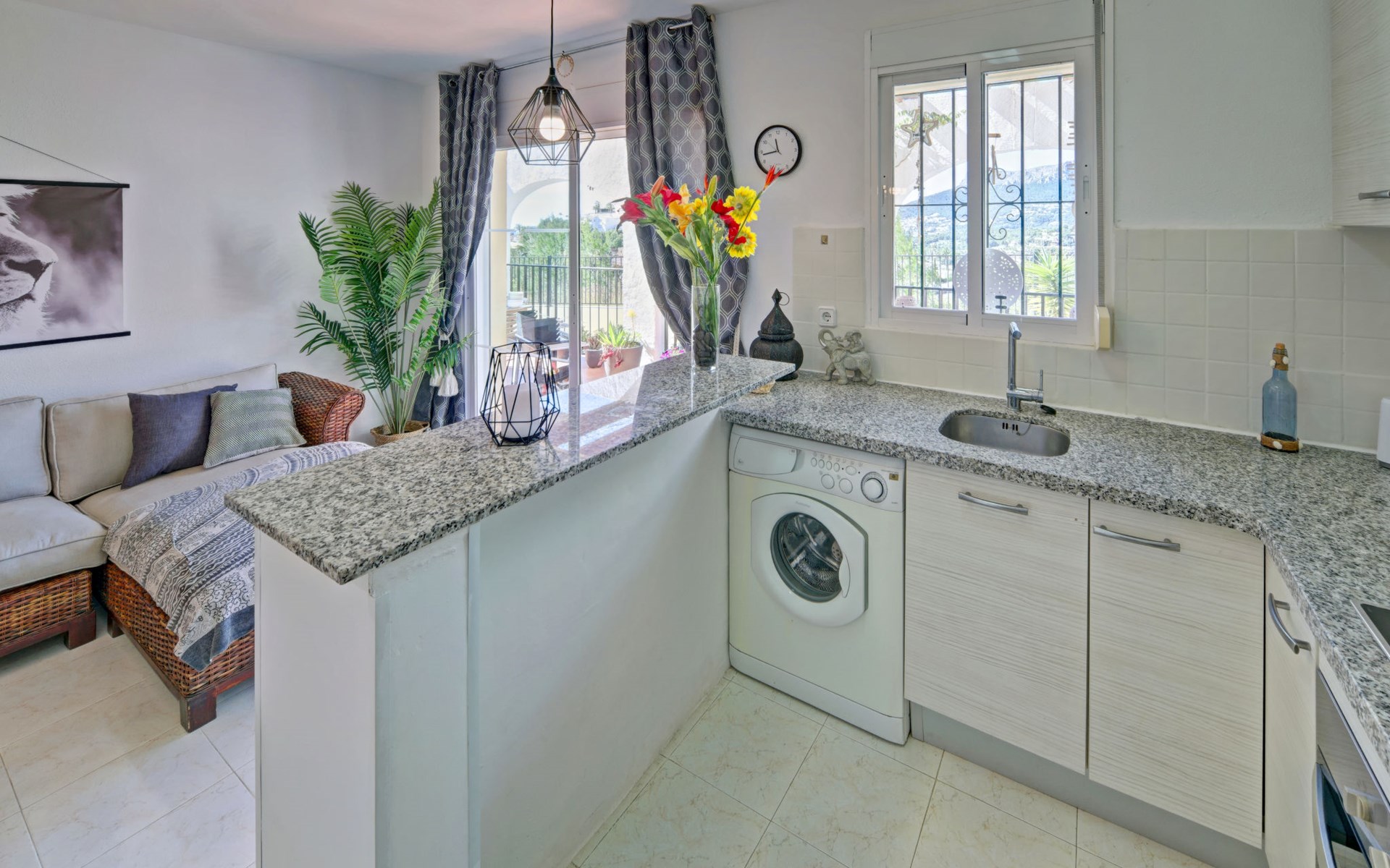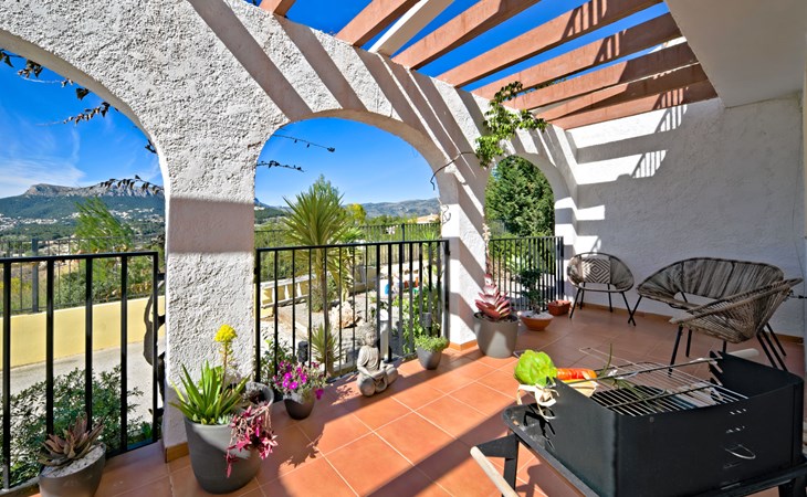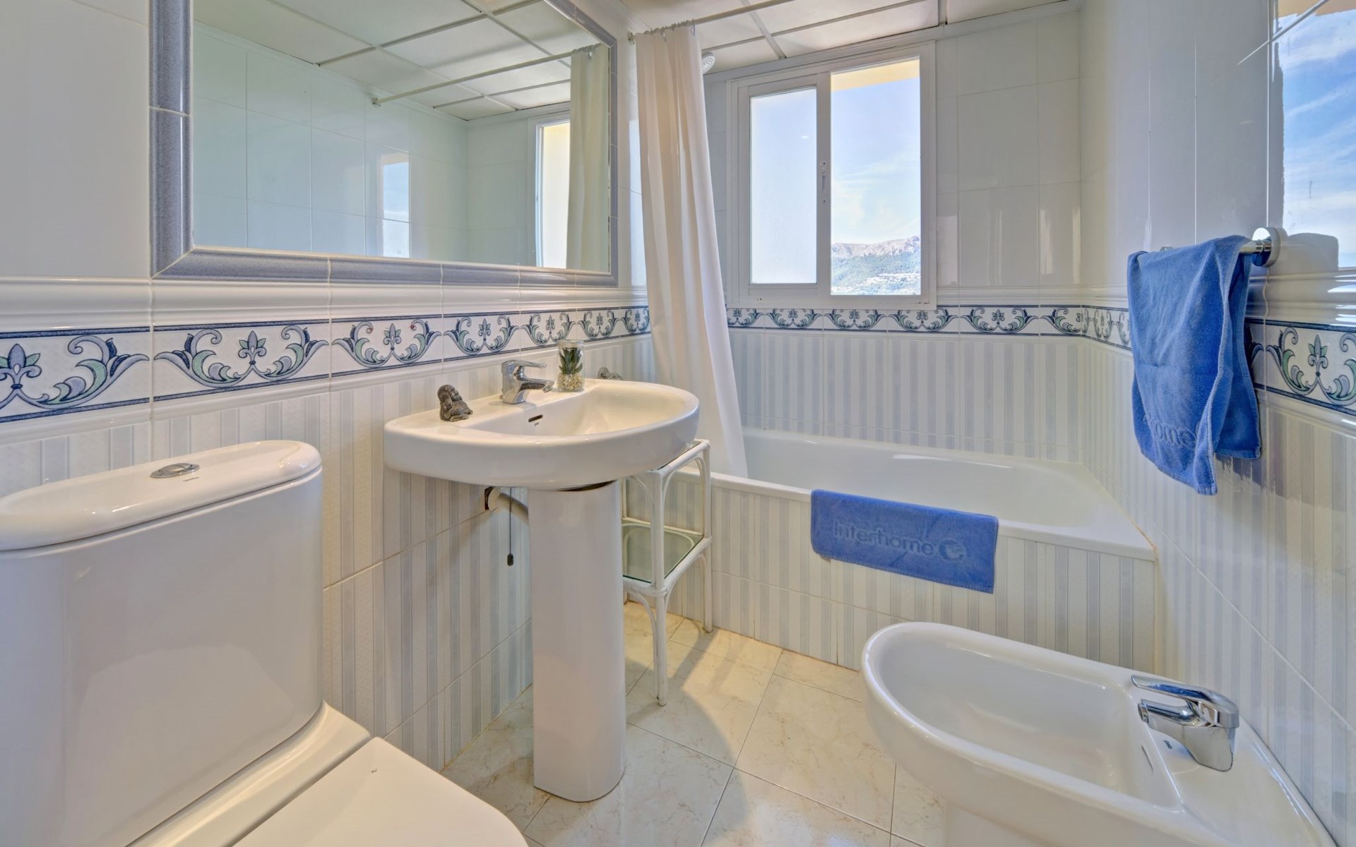 Gran Sol: Modern terraced house "Imperial Park". 3.3 km from the centre of Calpe, in a busy, sunny, elevated position, 2.5 km from the sea, 2.5 km from the beach. For shared use: large, well-kept terraced garden (fenced), natural garden, 3 swimming pools (seasonal availability: 01.Jan. - 31.Dec. pool opening hours: 10:00-20:00) with internal staircase. Unconventional pool shape. Children's pool, outdoor shower, patio, pergola, garden furniture. In the house: reception, lift. Shop 2 km, supermarket 2 km, restaurant 50 m, bar 200 m, café 50 m, bus stop 1.3 km, sandy beach "Playa De La Fosa" 3 km, diving center 1.5 km. Sports harbour 2.5 km, marina 2.5 km, golf course (18 hole) 10 km, surf school 2.5 km, sailing school 2.5 km, tennis 2.8 km, minigolf 3 km. Nearby attractions: Aqualandia, Mundomar, Terra Mítica, Terra Natura, y Benidorm Palace (Benidorm). Please note: car recommended. Reception open 10:00-15:00 hrs. Suitable for families. Please note: guarded residence. Additional accommodations can be booked. All houses/apartments are individually designed/furnished. Neighbourhood highly sensitive to noise. Quietness and good behaviour expected.