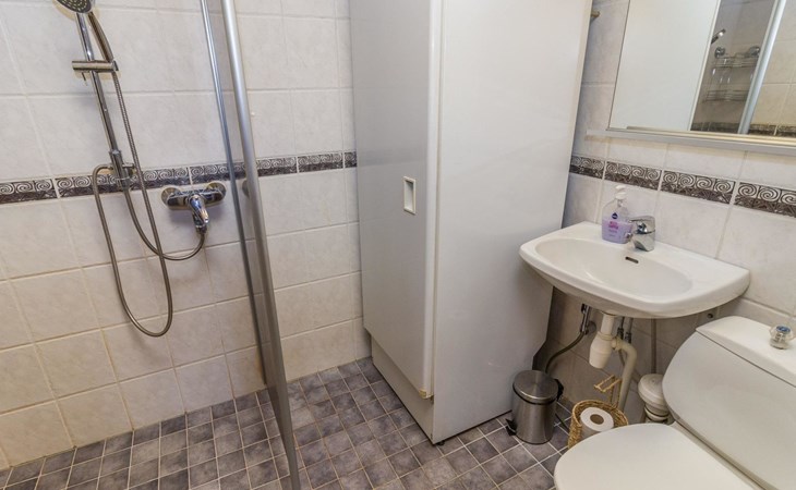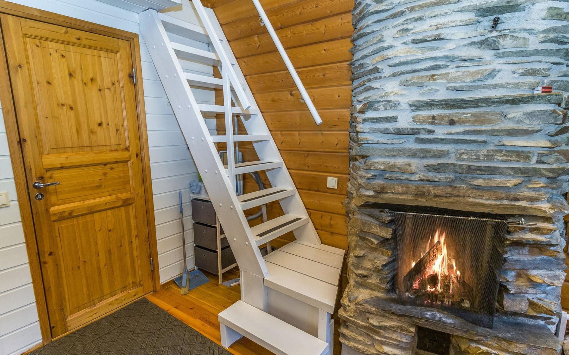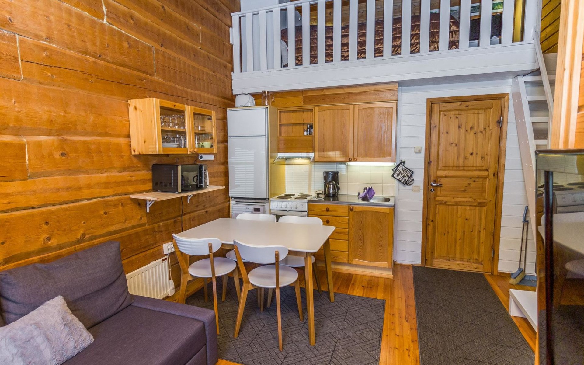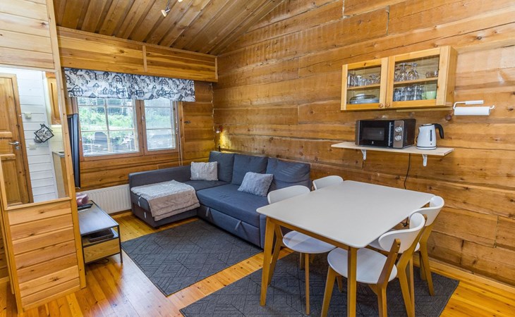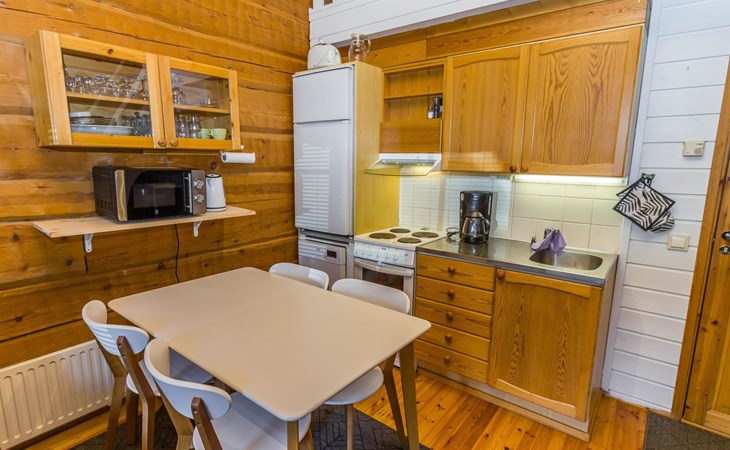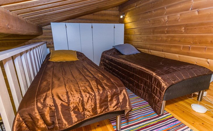 The apartment has a kitchen / livingroom with a fireplace, a low loft of 7 m² with two single beds. Two extra beds from the sofa bed in the living room. Bed places in total 2+2. Toilet/washroom, sauna with electric stove.